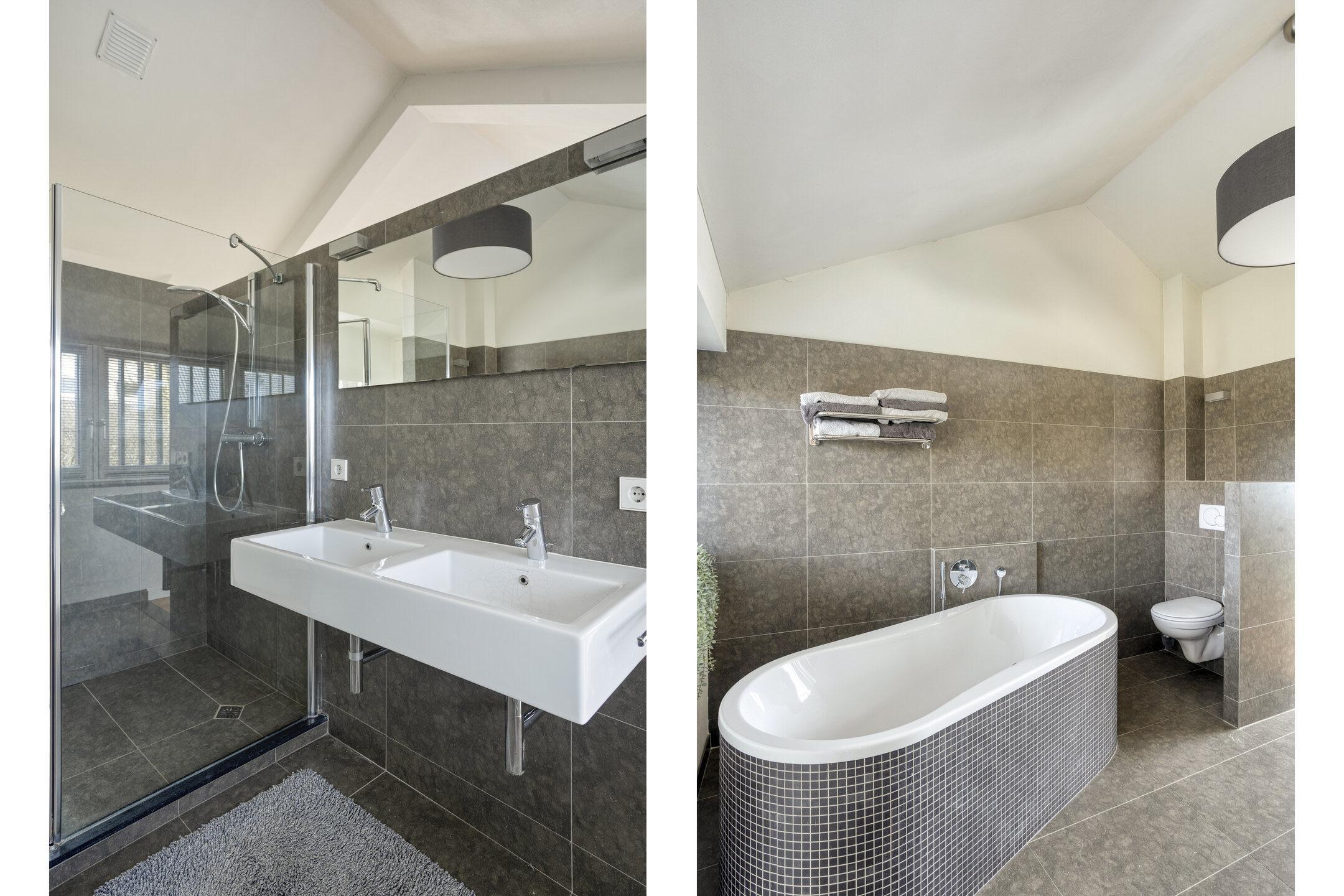 لدى الدخول، يرحب بك ردهة واسعة بأرضيات من البلوط وأبواب زجاجية أنيقة. غرفة المعيشة والمطبخ مفتوحان ويفصل بينهما نظام مدفأة Bellfire مزدوجة الجوانب، مما يثبت للمكان دفئًا هادئًا. المطبخ الفاخر مجهز بأجهزة عالية الجودة وسطح عمل من حجارة البلجيكية الزرقاء، ليجسد الوظيفة والاحتفال بالحياة اليومية. الواجهة الخلفية، بنوافذها الواسعة، تبرز إيقاع الحديقة والمنظر الطبيعي المحمي لـ Egmonderhout في الأفق.