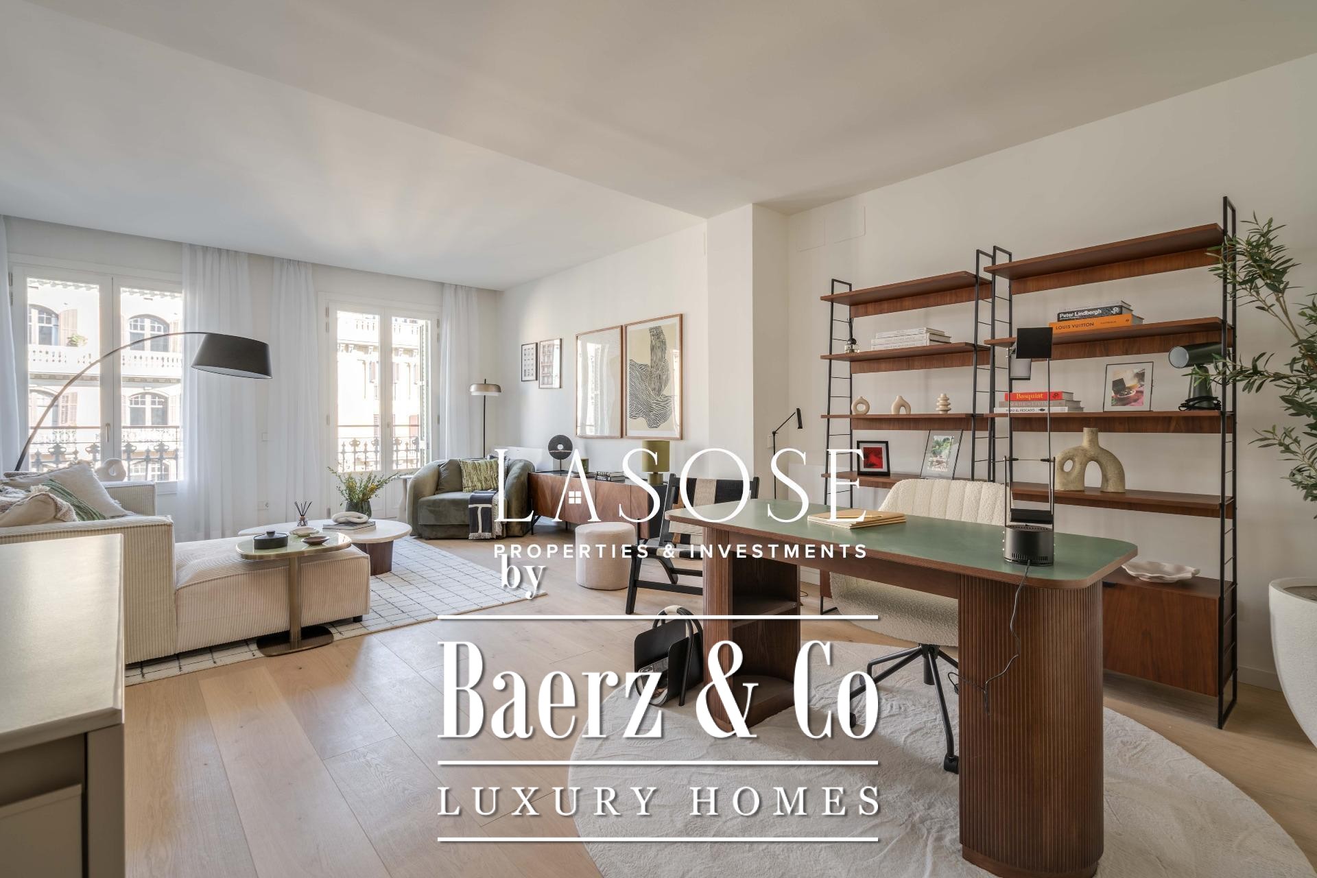 شقة في برشلونة إيكسامبل تعرض إقامة بمساحة 139 متر مربع في أحد أكثر العناوين شهرة في المدينة. هنا، تتجلى روعة العيش المترف على طول شارع رامبلا كاتالونيا المظلل بالأشجار، حيث تلتقط الشرفات الكلاسيكية أجواء العمارة البارسلونية الشهيرة. يضم هذا المشروع باقة من الوحدات الفسيحة، تشمل غرفتي نوم وثلاثة حمامات، جميعها من تصميم استوديو فيلابلانش بعناية فائقة، مع انتقاء المواد والتشطيبات بعناية لضمان الجودة الدائمة، وتكامل الأجهزة الحديثة والتفاصيل التقنية المدروسة مثل نظام الاتصال بالفيديو وأنظمة التدفئة والتكييف المدمجة.