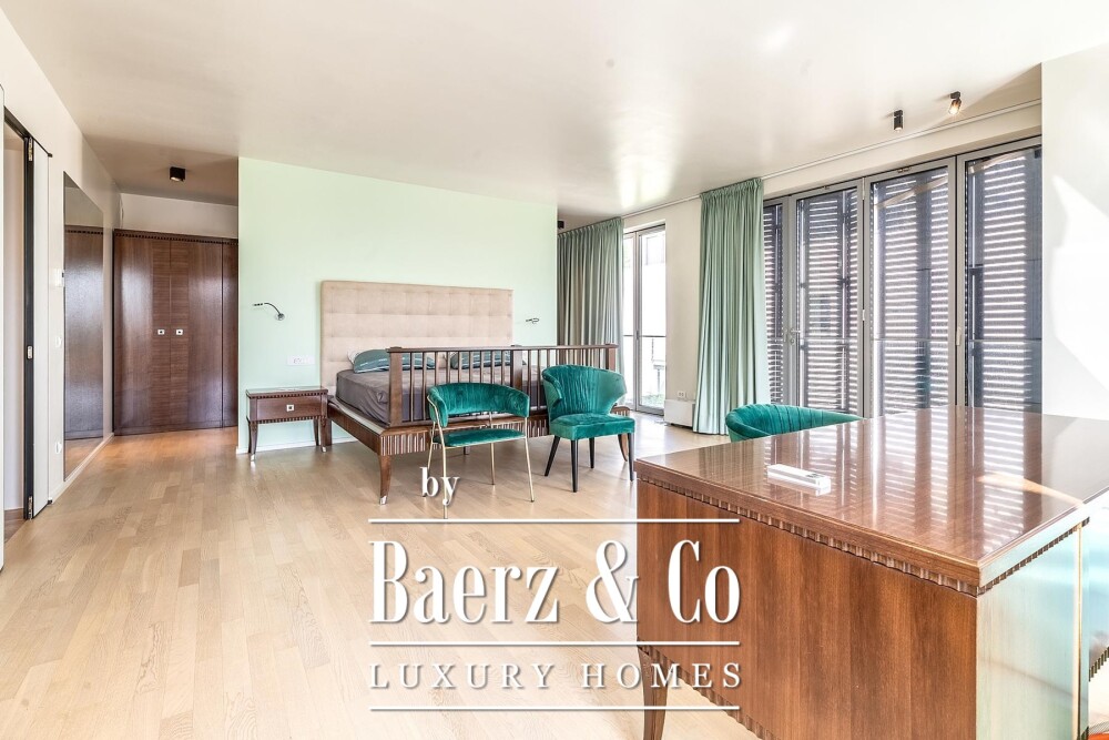 يحتوي الطابق السفلي على جراج آمن يتسع لثلاث سيارات، ومنطقة مخصصة لغسيل الملابس والتخزين، وصالة رياضية مجهزة بجاكوزي وساونا، دعماً لإيقاع حياة يومية هادئة وعملية. في الأعلى، يتدفق الطابق الأرضي بين بهو مدخل مع مساحة عمل، ومطبخ يتوسطه جزيرة، وغرفة معيشة وطعام تتميز بمدفأة. الأبواب المنزلقة تدعو إلى الانتقال نحو التراس، موفرة أجواءً في الهواء الطلق وخصوصية هادئة. يتكون الطابق العلوي من جناح رئيسي بغرفة ملابس وحمام فسيح، وجناحين للأطفال، وغرفة ضيوف مرنة مع مدخل خاص بها.