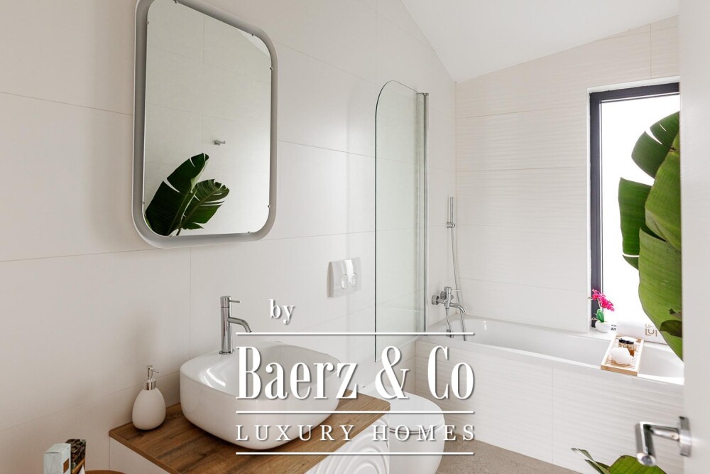 عند صعود السلم الرخامي إلى الطابق العلوي، تظهر غرفتان نوم بسرير مزدوج وشرفات خاصة تطل على الامتداد الأزرق لخليج كفارّنر، بالإضافة إلى غرفة رابعة بأسرّة منفصلة وحمام إضافي. في الخارج، حديقة منسقة بعناية بمساحة 700 م²، وشرفة للتشمس، وتراس مزود بمنطقة شواء تدعو للاسترخاء تحت أشعة الشمس.