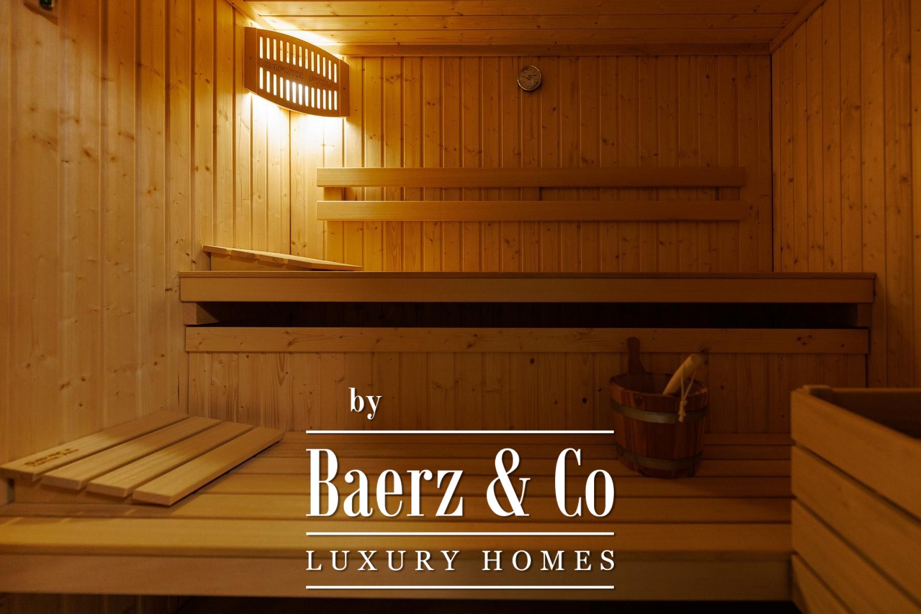 تنتظم الإقامة على ثلاثة طوابق مدروسة بعناية. يضم الطابق السفلي محل نبيذ، وصالة رياضية، وغرفة ألعاب للأطفال، ومنطقة سبا مع ساونا فنلندية، مما يوفر مساحة خاصة للعافية والتجمعات. يكشف الطابق الأرضي عن مطبخ مفتوح ومنطقة طعام تندمج مع غرفة جلوس زجاجية، مما يمنح إطلالات مباشرة على التراس والمسبح. في هذا المستوى، تفتح غرفة نوم مع حمام خاص على تراسها الخاص.