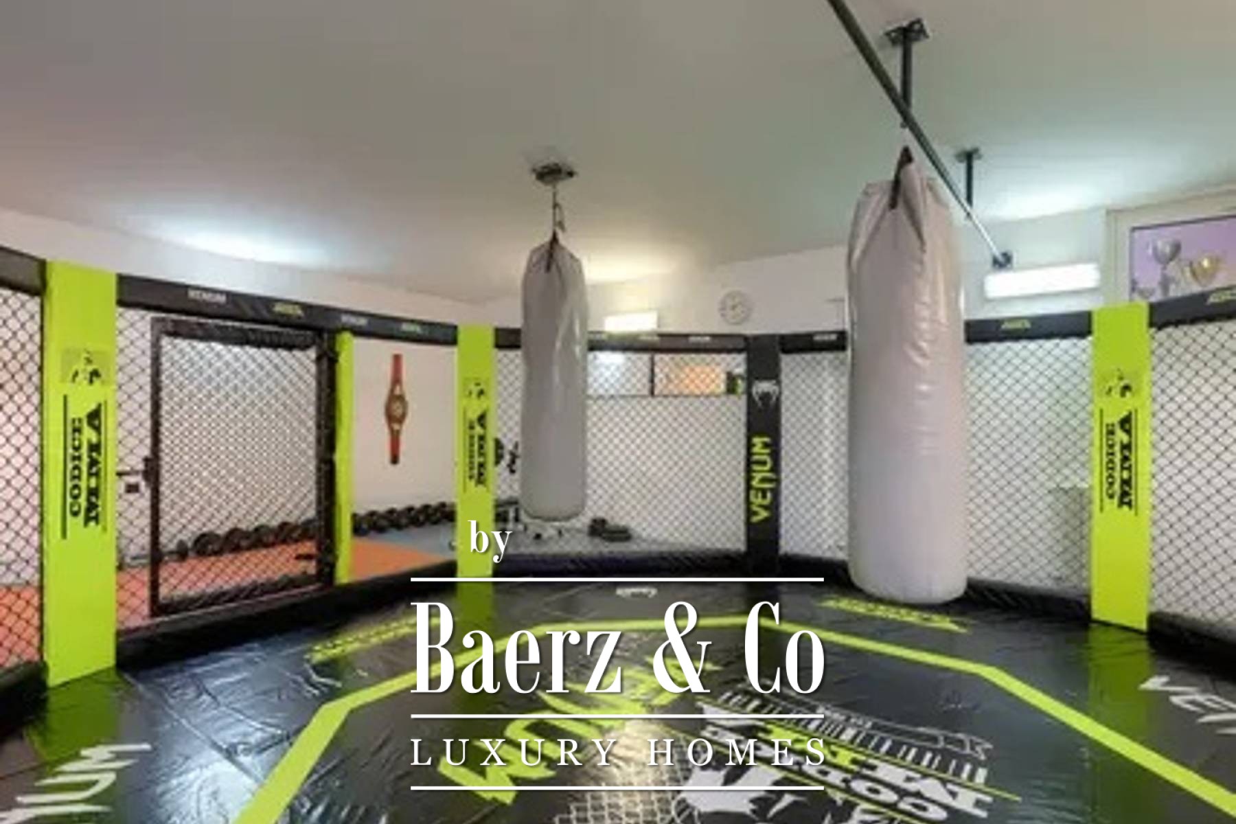 في الطابق العلوي، توفر ثلاث غرف نوم إضافية وحمامين ملاذات هادئة ومشرقة. كل غرفة مكيفة الهواء، فيما يبرز الأرضيات الباركيه عالية الجودة والحواجز الزجاجية جمالية الديكور الداخلي وتدفق الرؤية. لعشاق العافية، يوفر صالة رياضية خاصة بعداً شخصياً إضافياً، بينما تدعو الشواية الخارجية إلى جلسات حميمة في الحديقة.