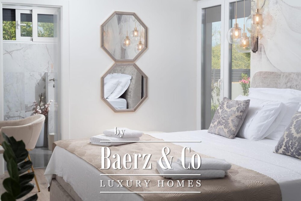 في الطابق العلوي، ثلاث غرف نوم إضافية، لكل منها حمامها الخاص مع إمكانية الوصول إلى شرفات مفتوحة، مما يخلق تواصلاً سلساً بين الراحة الداخلية والفضاء الخارجي. تعكس النوافذ الواسعة الضوء الكرواتي المميز، بينما يضم الحديقة، المزودة بنظام ري أوتوماتيكي، مسبحاً مدفأً وتراساً للتشميس ومنطقة طعام خارجية، مثالية للصباحات الهادئة والأمسيات الاجتماعية.