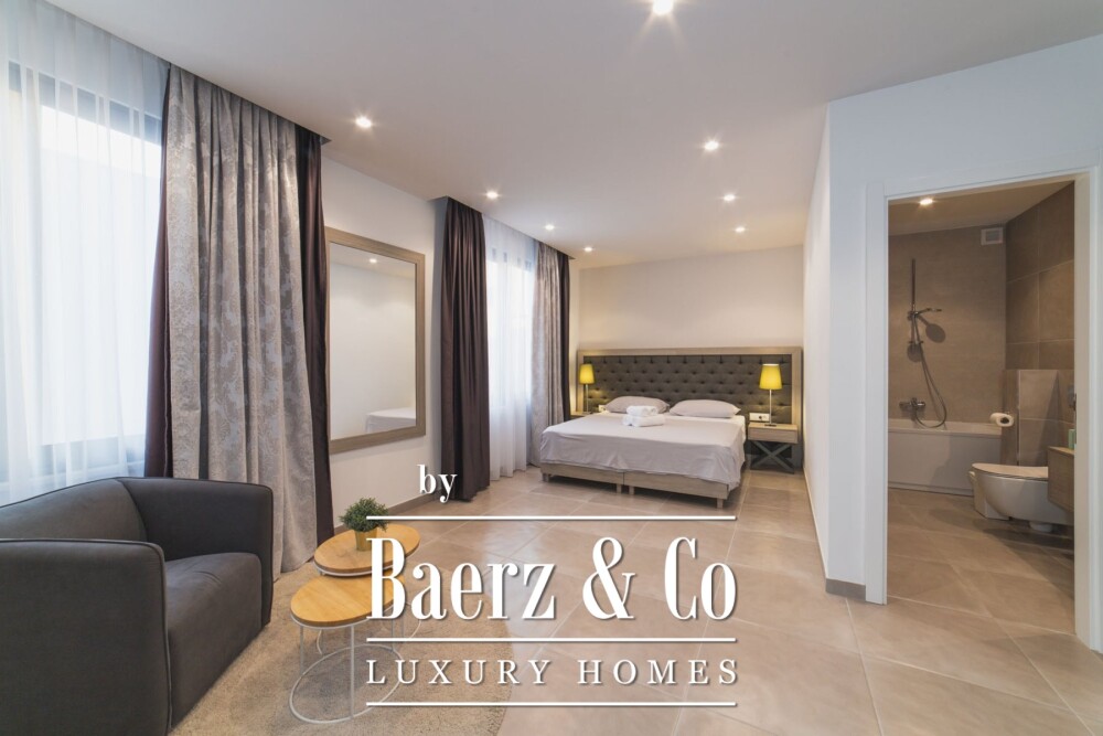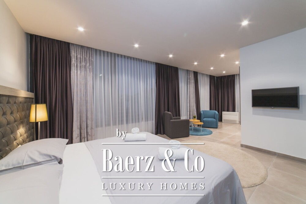 تقع فيلا Okrug Croatia على أرض مساحتها 600 م²، وتوفر 363 م² من المساحات المعيشية الراقية على ساحل البحر الأدرياتيكي. تمتد الفيلا على ثلاثة مستويات، وتشعرك منذ الوهلة الأولى بالخصوصية والفخامة المدروسة. الطابق الأرضي مخصص للعناية بالصحة ويضم صالة رياضية وساونا وجاكوزي. في الأعلى، يشكل الطابقان الأول والثاني قلب المنزل حيث تتوزع المطبخ ومساحة تناول الطعام وغرفة المعيشة الفسيحة وسبع غرف نوم وثمانية حمامات بشكل يحقق أقصى درجات الراحة والسهولة. تدعو العديد من التراسات الضوء الطبيعي والهواء البحري إلى الداخل بمناظر متنوعة وزوايا متعددة.