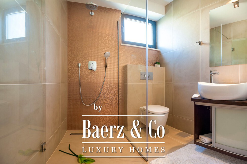 الدور الأرضي والأول متصلان بانسيابية بين مطبخ عصري، وغرفة طعام، ومساحة معيشة واسعة. ستة غرف نوم وسبعة حمامات توفر إقامة فاخرة، وكل مساحة مصممة لتأطير الإطلالات البانورامية على البحر، وأفق تروغير التاريخي، والجبال البعيدة. تراس مشمس يدعوك لقضاء أوقات في الهواء الطلق، بينما يضم الفناء الخاص مسبحًا خارجيًا ومنطقة تشمس ومساحة أنيقة للشواء.