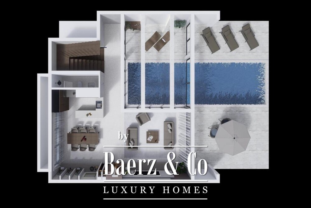 تكشف الطابق السفلي الواسع عن حجرة جلوس مفروشة مع مطبخ بمساحة 43,45 م²، إلى جانب صالة رياضية مخصصة، ساونا، غرفة ملابس، حمام وغرفة غسيل. أما الطابق الأرضي فهو مصمم بانسيابية تامة، ويضم بهو مدخل، وغرفة معيشة وطعام فسيحة بمساحة 52 م²، إضافة إلى مطبخ مساحته 14,68 م² وتراس مغطى. يزيد الشعور بالترفيه مع مسبح خارجي بمساحة 13 م² وآخر داخلي بمساحة 35,25 م²، ليبقى الاسترخاء متاحًا في جميع المواسم.