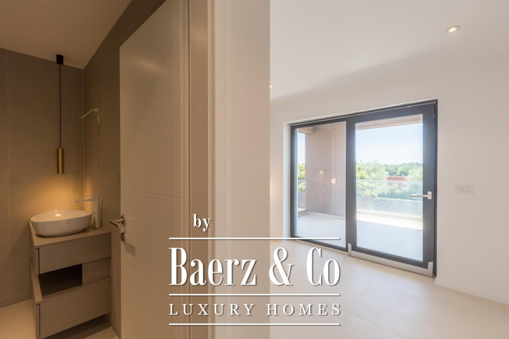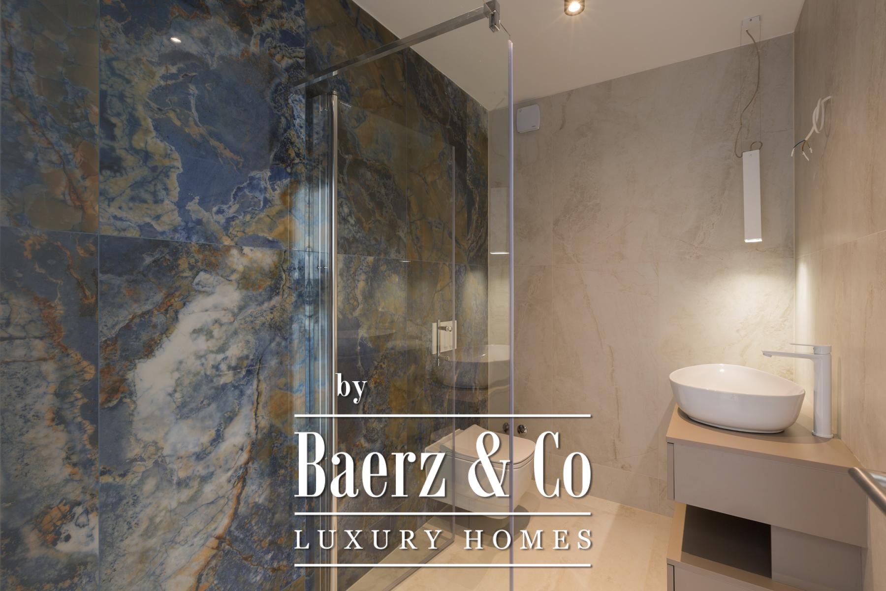 في الخارج، يمتد المسبح اللامتناهي إلى سطح تشمس محاط بأشجار الزيتون الناضجة، مع مطبخ صيفي مناسب للتجمعات في الهواء الطلق. وتوجد شقة استوديو منفصلة بحمام خاص داخل بناء المرآب، ما يوفر إمكانيات إضافية لاستضافة الضيوف أو كمنتجع خاص.