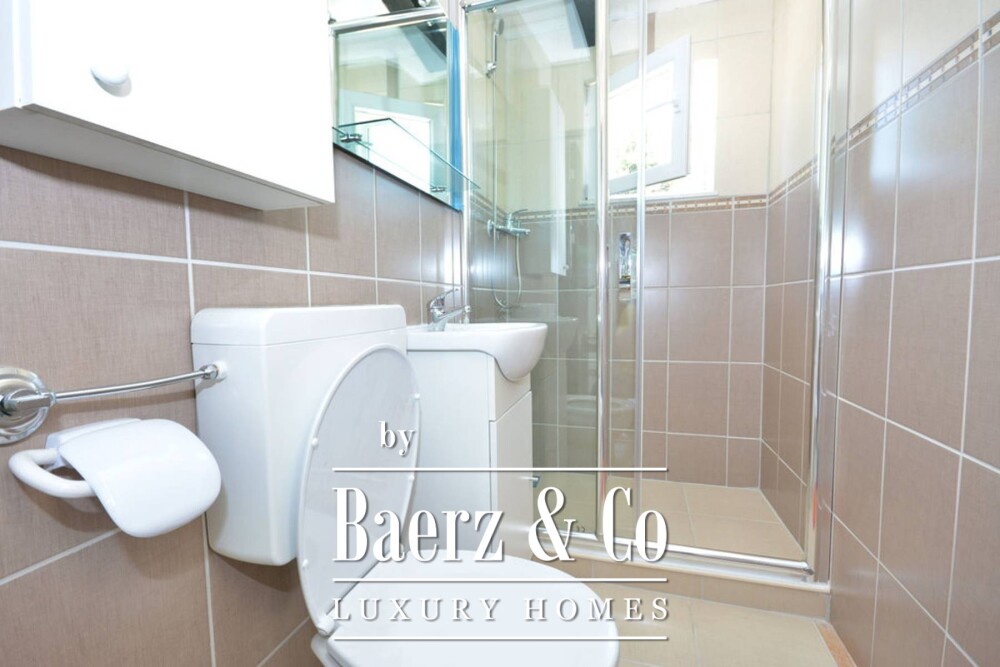 تتوزع الفيلا الرئيسية على طابقين متصلين بسلم داخلي، وتضم أربع غرف نوم هادئة. في الطابق الأرضي المرتفع، تجد تراساً مشمساً، مطبخاً وغرفة طعام، غرفة معيشة واسعة، غرفتين أصغر، وحماماً مشتركاً. في الأعلى، توفر غرفتا نوم كبيرتان حمامات داخلية وتفتحان مباشرة على تراس واسع يطل على البحر. يضيف الطابق السفلي ملاذاً يضم ساونا، ركن نبيذ، ومستودع، ليعزز الإحساس بالعزلة والراحة.