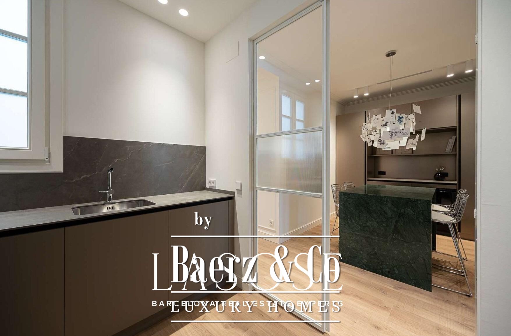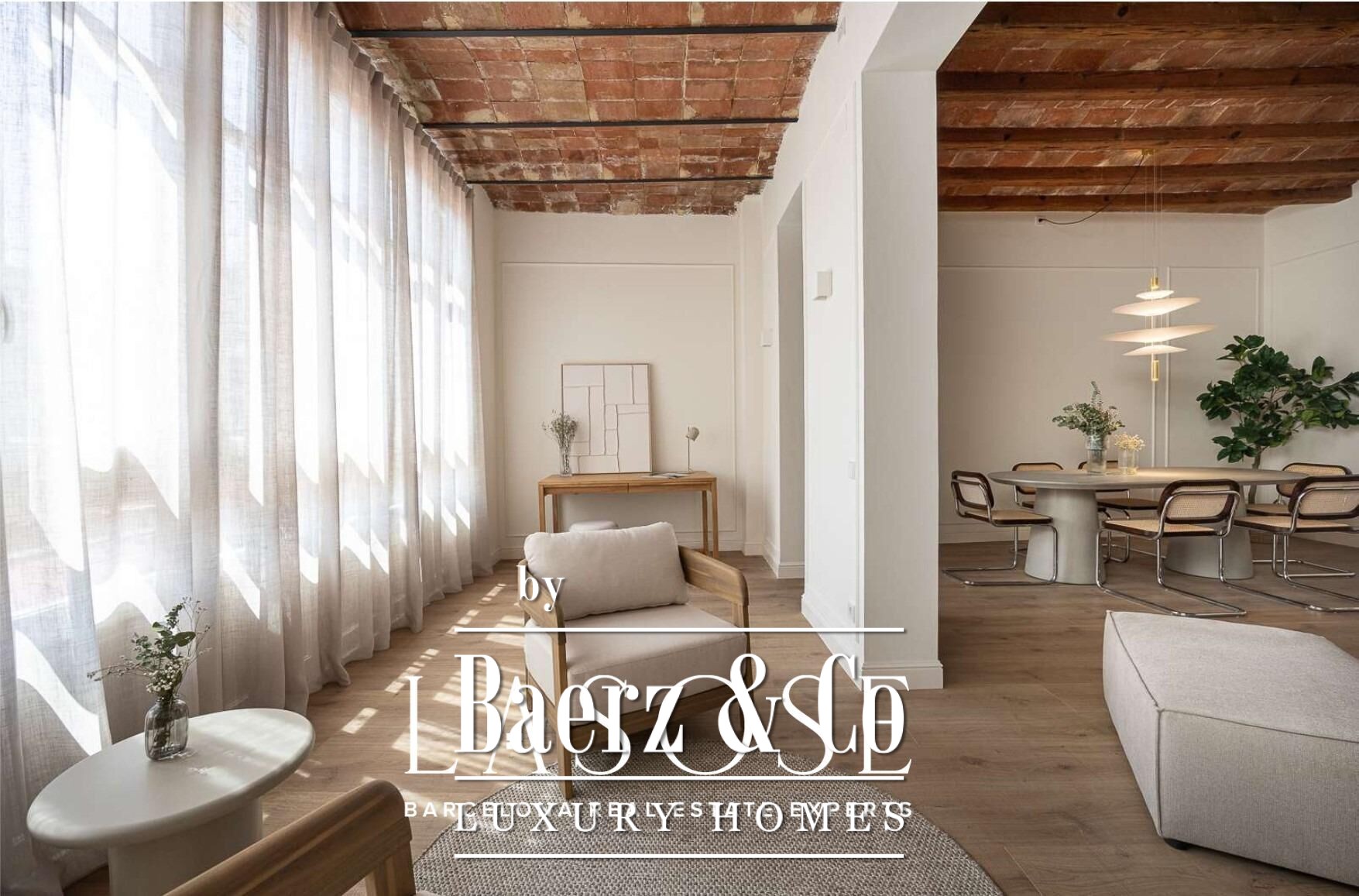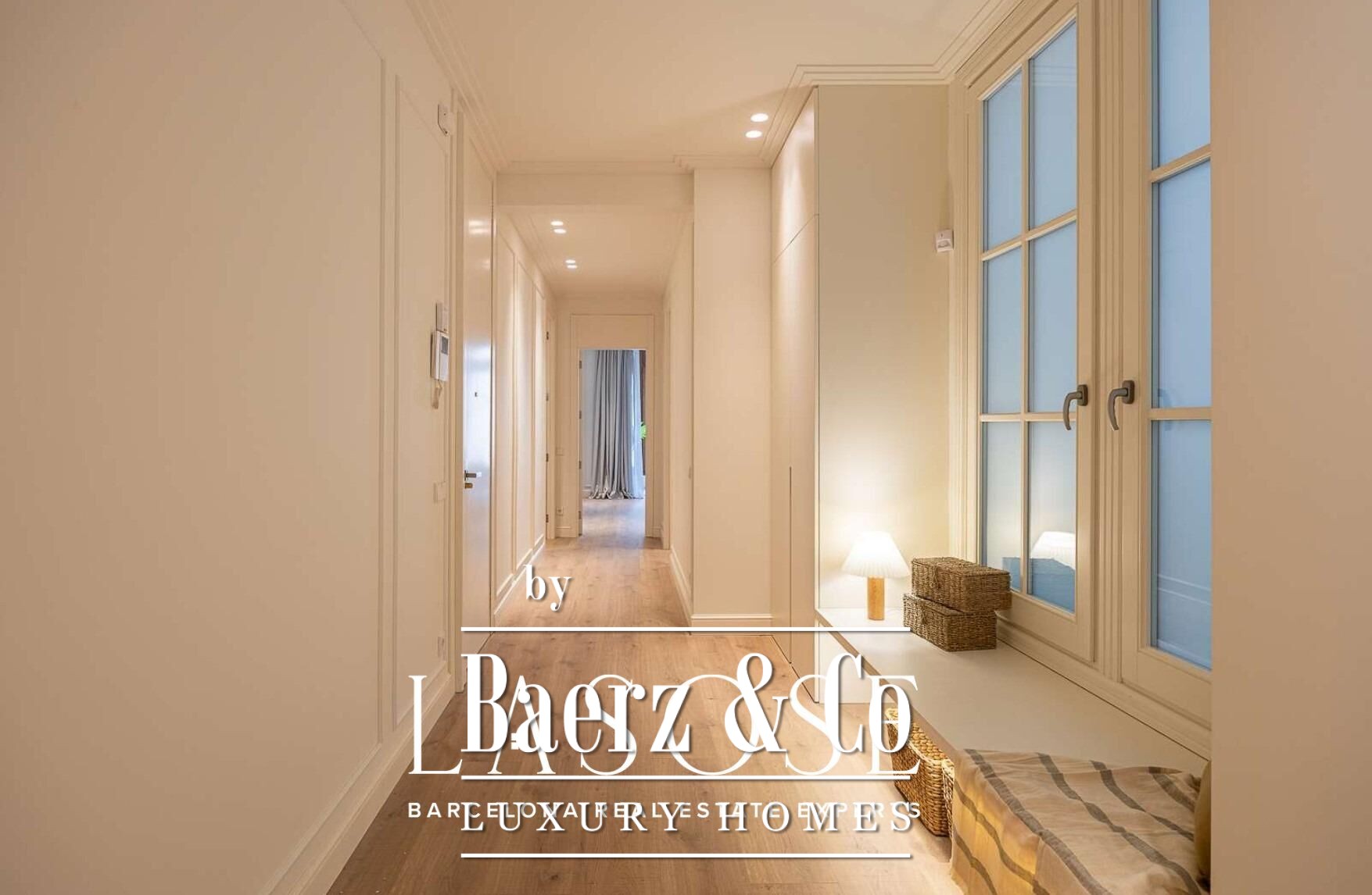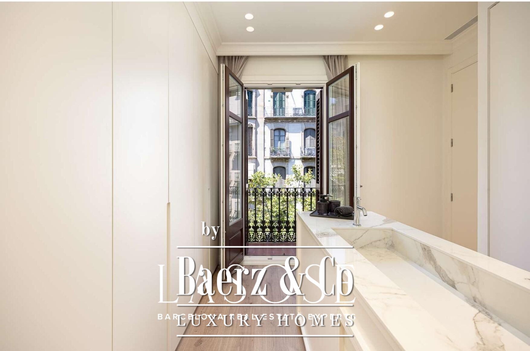 Drei Doppelschlafzimmer und zwei Bäder bieten anpassungsfähigen Wohnraum. Eine modernistische Rotunde und der Außenbalkon verbinden mit dem pulsierenden Stadtleben, während Stauraum, gepanzerte Eingangstür und sorgfältig abgestimmte Beleuchtung für ein Gefühl von Sicherheit und Komfort sorgen. Hier wird das dynamische Stadtleben durch exklusive Wohnatmosphäre ausgeglichen—eine seltene Gelegenheit, ein bedeutendes Stück Barcelonas Geschichte zu bewohnen.