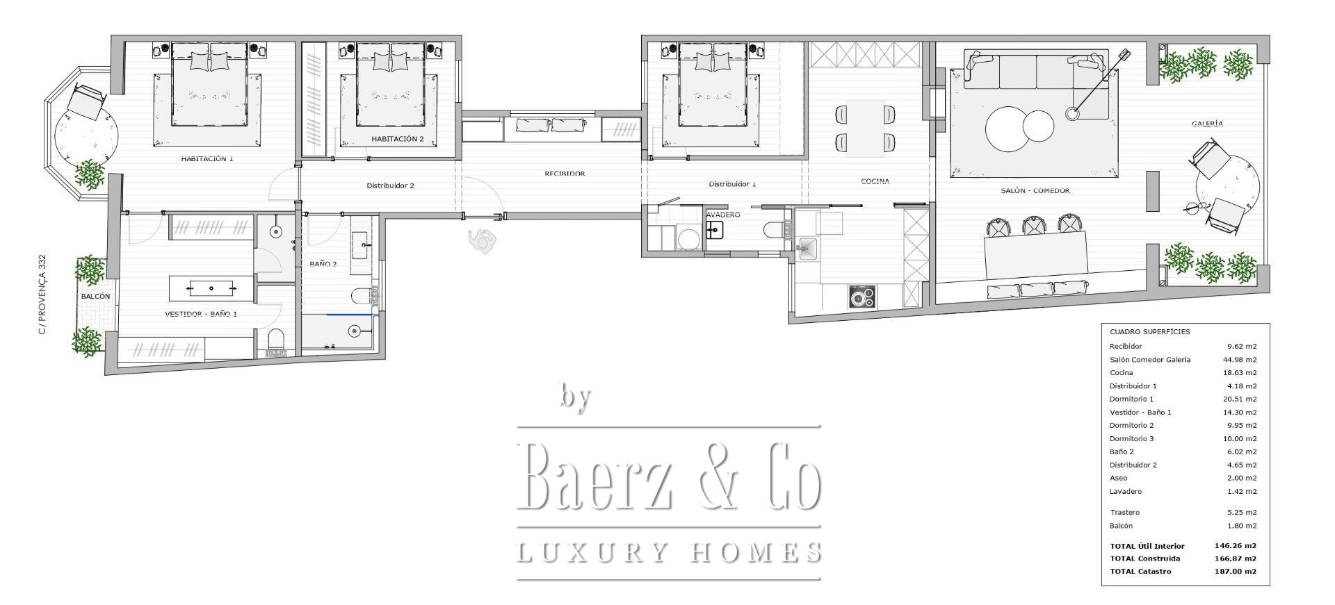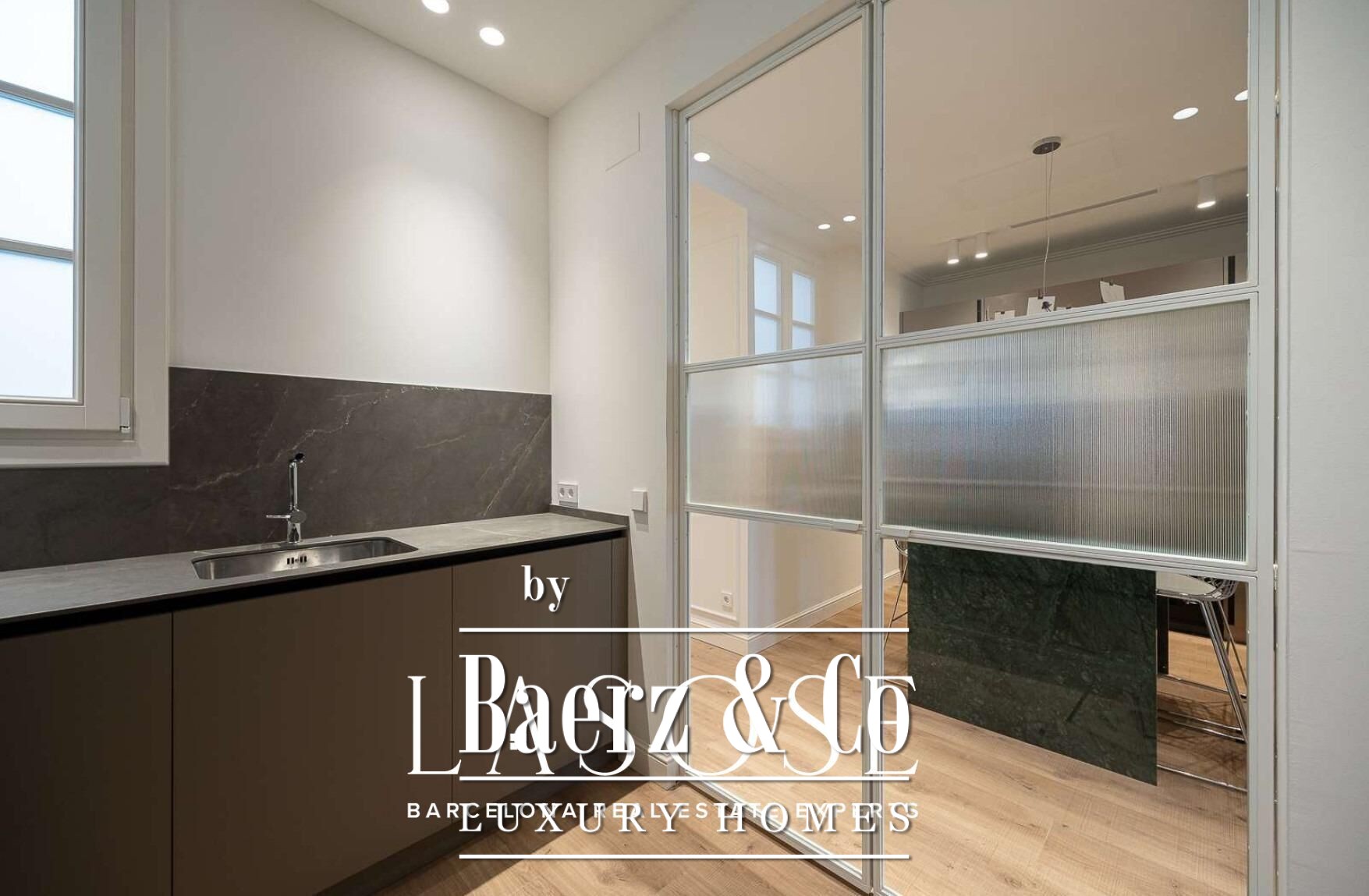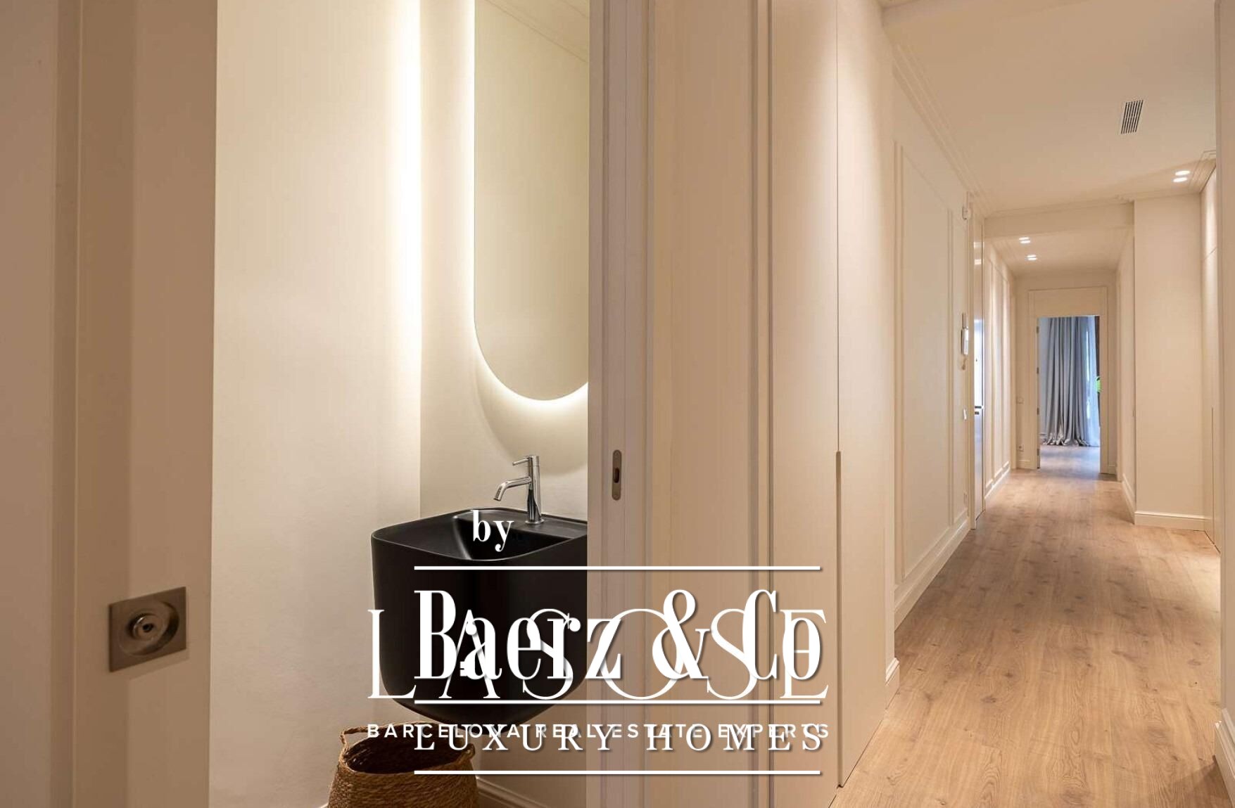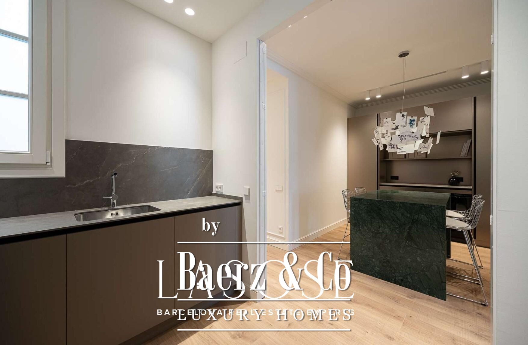 Drei Doppelschlafzimmer und zwei Bäder bieten anpassungsfähigen Wohnraum. Eine modernistische Rotunde und der Außenbalkon verbinden mit dem pulsierenden Stadtleben, während Stauraum, gepanzerte Eingangstür und sorgfältig abgestimmte Beleuchtung für ein Gefühl von Sicherheit und Komfort sorgen. Hier wird das dynamische Stadtleben durch exklusive Wohnatmosphäre ausgeglichen—eine seltene Gelegenheit, ein bedeutendes Stück Barcelonas Geschichte zu bewohnen.
