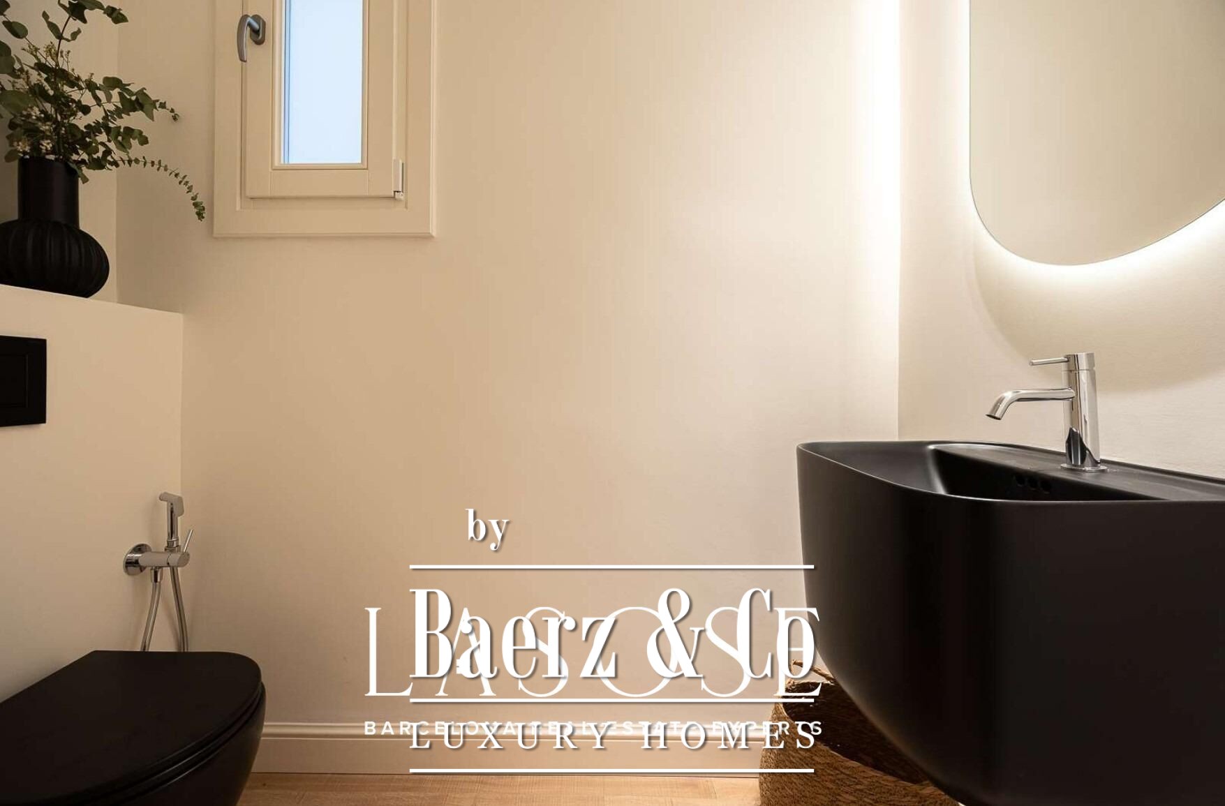Die auf der dritten Etage gelegene Wohnung, bequem mit dem Aufzug erreichbar, wird in ihren großzügigen Wohnräumen von natürlichem Licht durchflutet. Die südwestlich ausgerichtete Galerie und originale katalanische Gewölbedecken schaffen ein Ambiente von Privatsphäre und Raffinesse. Jedes Detail der kürzlich erfolgten hochwertigen Renovierung respektiert die historische Architektur und verbindet sie harmonisch mit modernen Komfortmerkmalen. Parador-AC-5-Parkett in Eichenoptik, maßgefertigte Einbauten von ARMONY, MIELE-Geräte, intelligente Klimasteuerung und eine Master-Suite mit begehbarer Garderobe werten den Alltag auf.