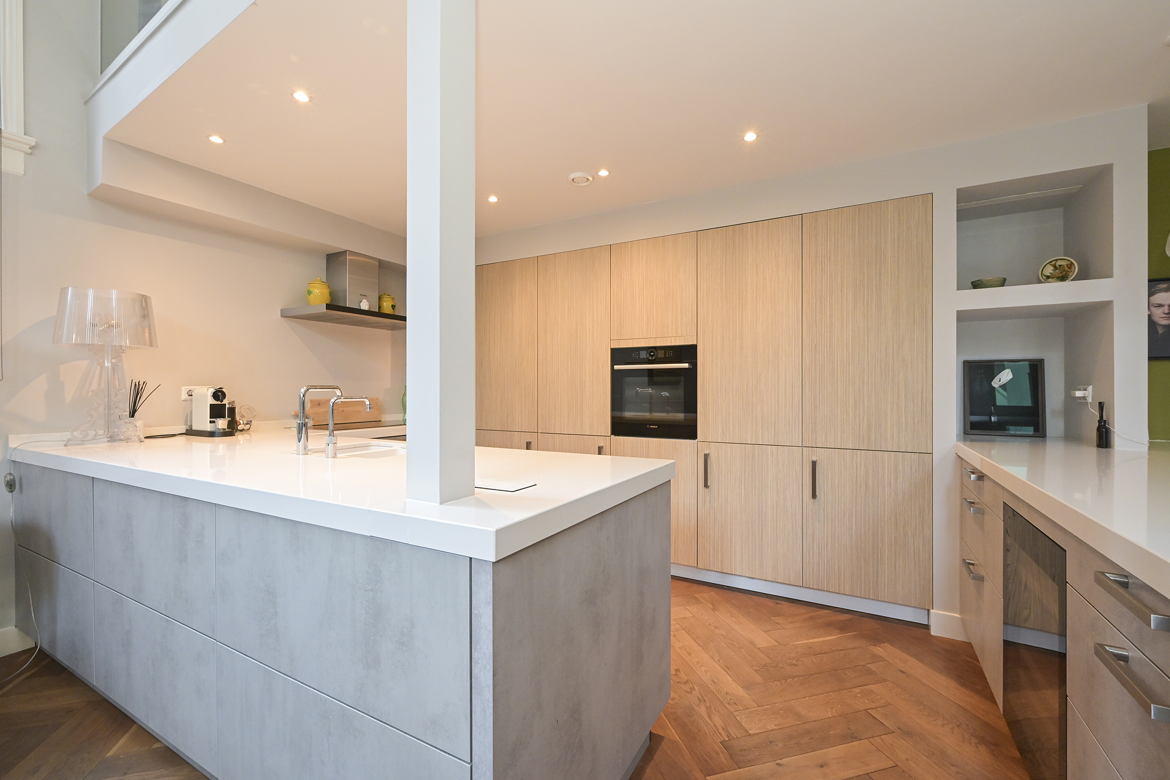 The modern kitchen is equipped with every conceivable appliance and forms the heart of the home. Underneath the beautiful wooden floor is comfortable underfloor heating, which, together with an A energy label, ensures a pleasant and energy-efficient living environment.