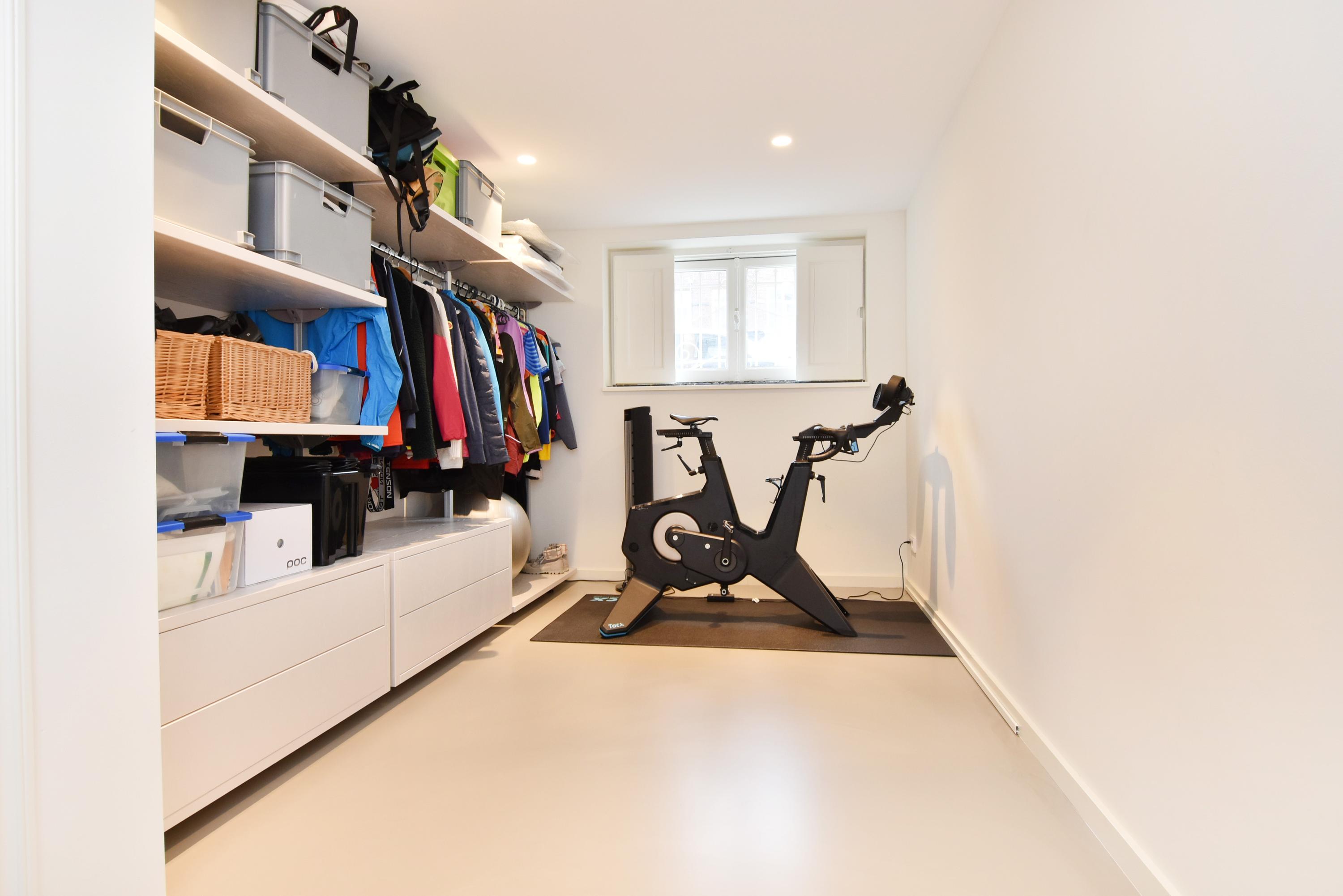 The elevated ground floor hosts the inviting living and dining space, marked by an oak herringbone parquet with underfloor heating and ceilings close to four metres. An open-plan kitchen is equipped with integrated appliances, including an induction cooktop, Quooker, and design lighting. The flow leads out to a balcony and sunlit south-facing garden with storeroom and private exterior entrance.