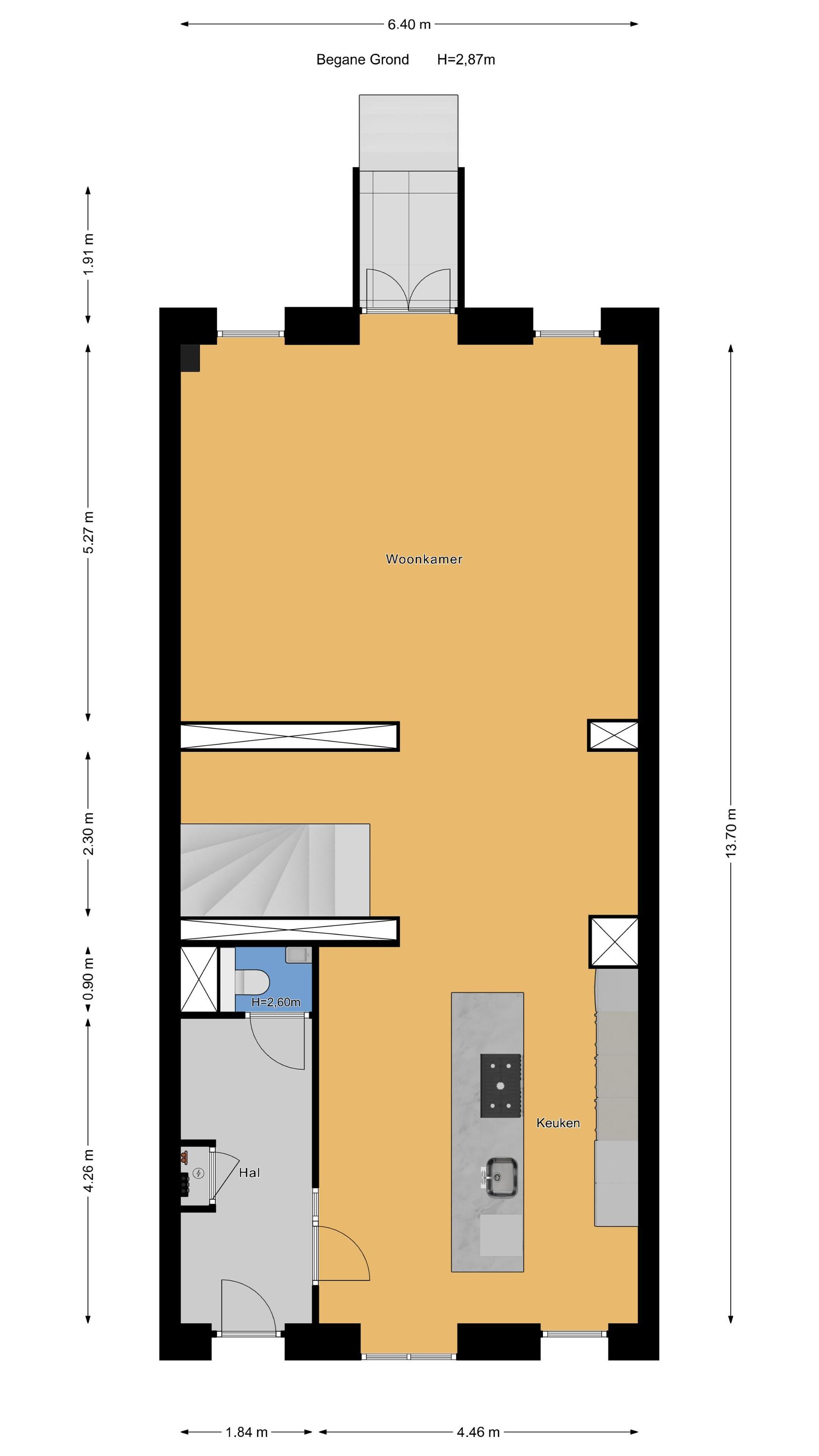 Upon entering the bright hallway, you are welcomed by a spacious, high-end designer kitchen featuring a central cooking island, premium Miele appliances, and every conceivable luxury – including a built-in climate cabinet for your wine. From the kitchen, you reach the sunny living room, where high ceilings and large windows flood the space with natural light. Elegant double doors open onto the spacious, sunny garden, perfect for relaxation and outdoor living.