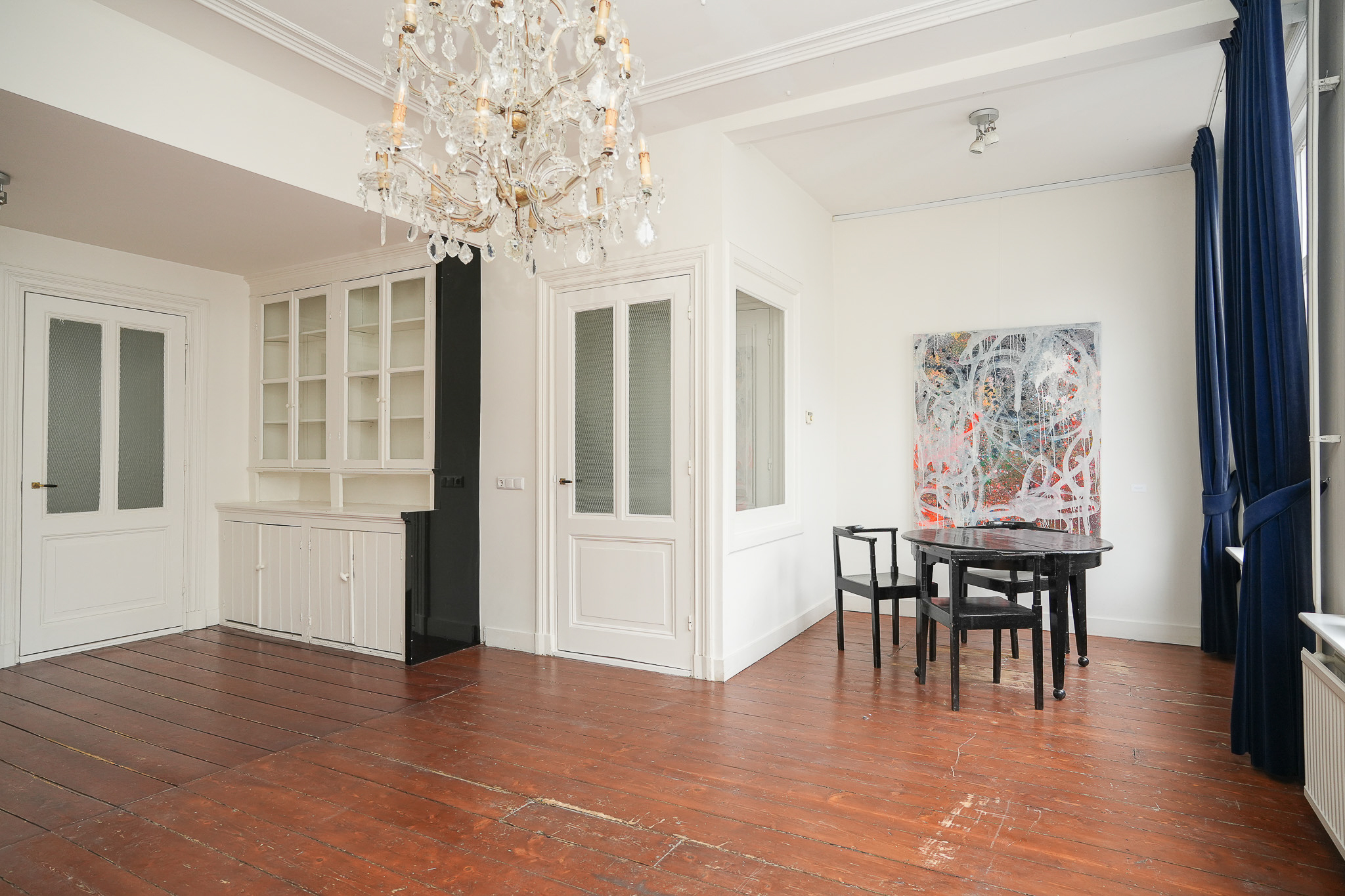 Upstairs, you'll find three bedrooms, including a particularly spacious master bedroom of exceptional size. The bathroom is practically laid out and equipped with a bathtub, shower, second toilet, and double sink. The sheltered roof terrace has recently been renovated and offers plenty of afternoon and evening sun. Additional storage space is available in the spacious attic. A characterful city apartment in a prime location between the train station and the 's-Hertogenbosch Market.