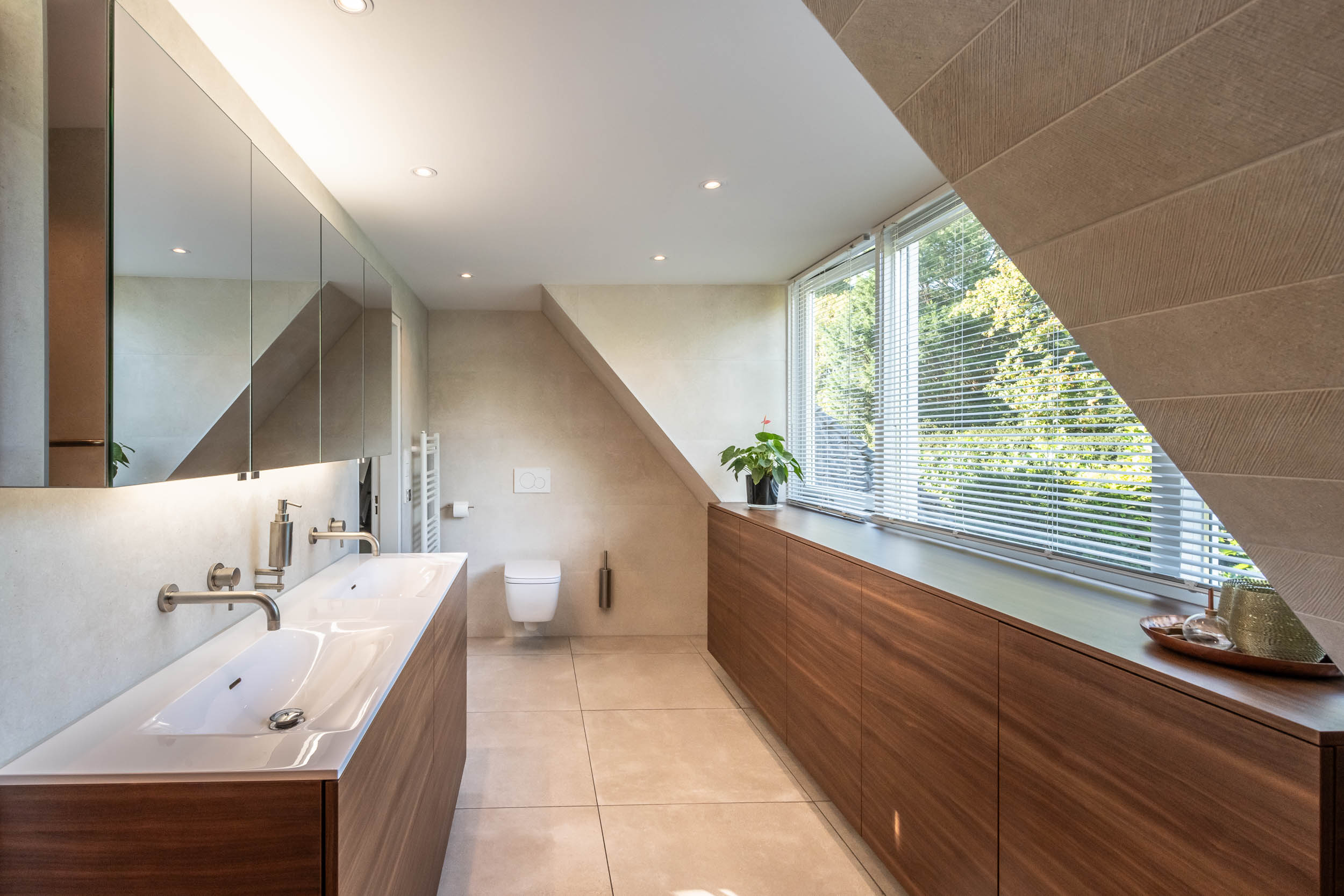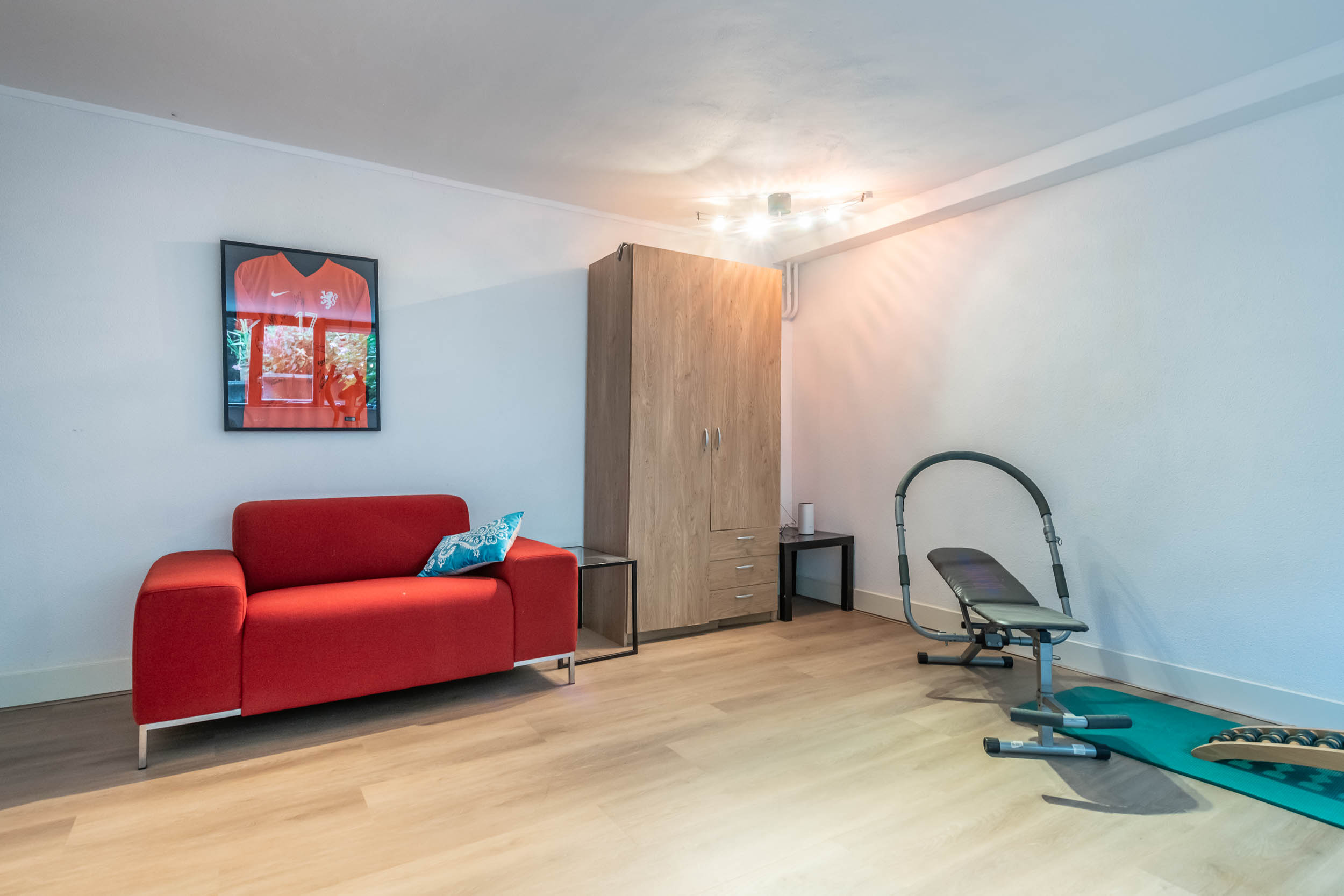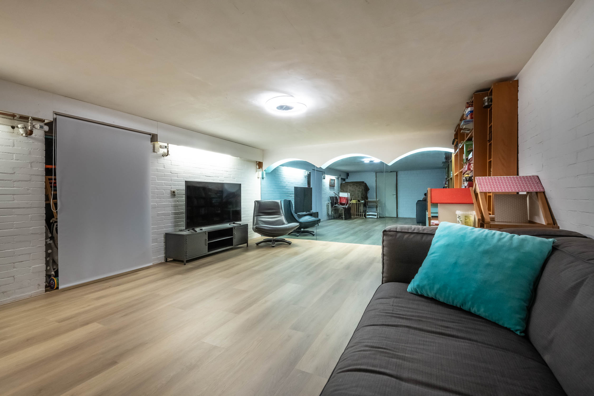 The ground floor is particularly comfortable for families thanks to the multiple living areas and the spacious kitchen (from 2022). The numerous windows and glass doors make the rooms light and sunny. Both the living room and kitchen have French doors leading to the garden/terraces. The basement features an indoor garage, laundry room, gym, two spacious (bed)rooms and a bathroom.