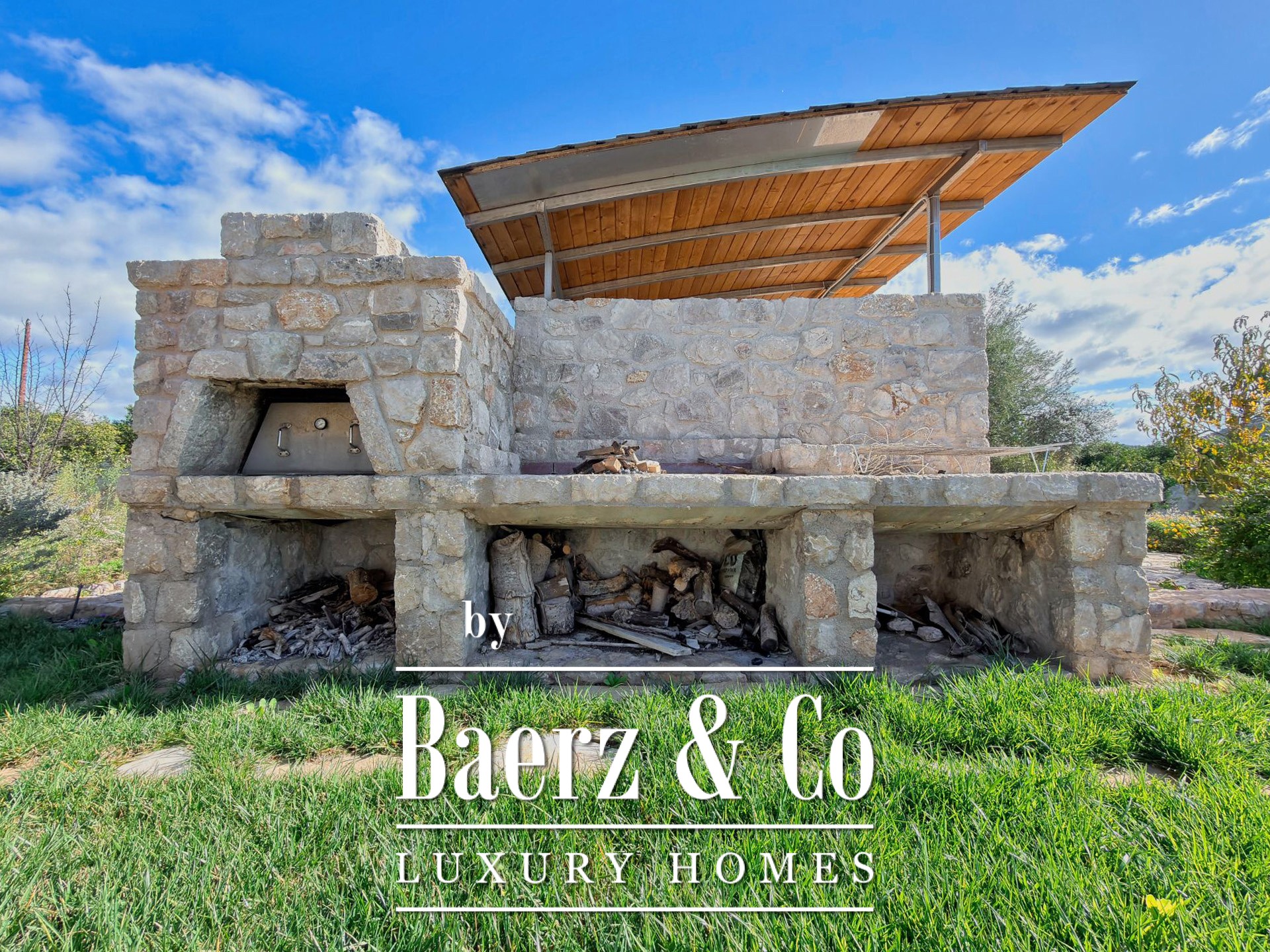 Life here is anchored by the garden, where fruit and olive trees, seasonal flowers, and thoughtfully placed stone corners create a rare sanctuary. A brasero, barbecue with traditional wood oven, and fully equipped outdoor bathroom offer invitation for gatherings. The property also provides parking for four vehicles and a 15 m² storage container, blending practicality with considered design.