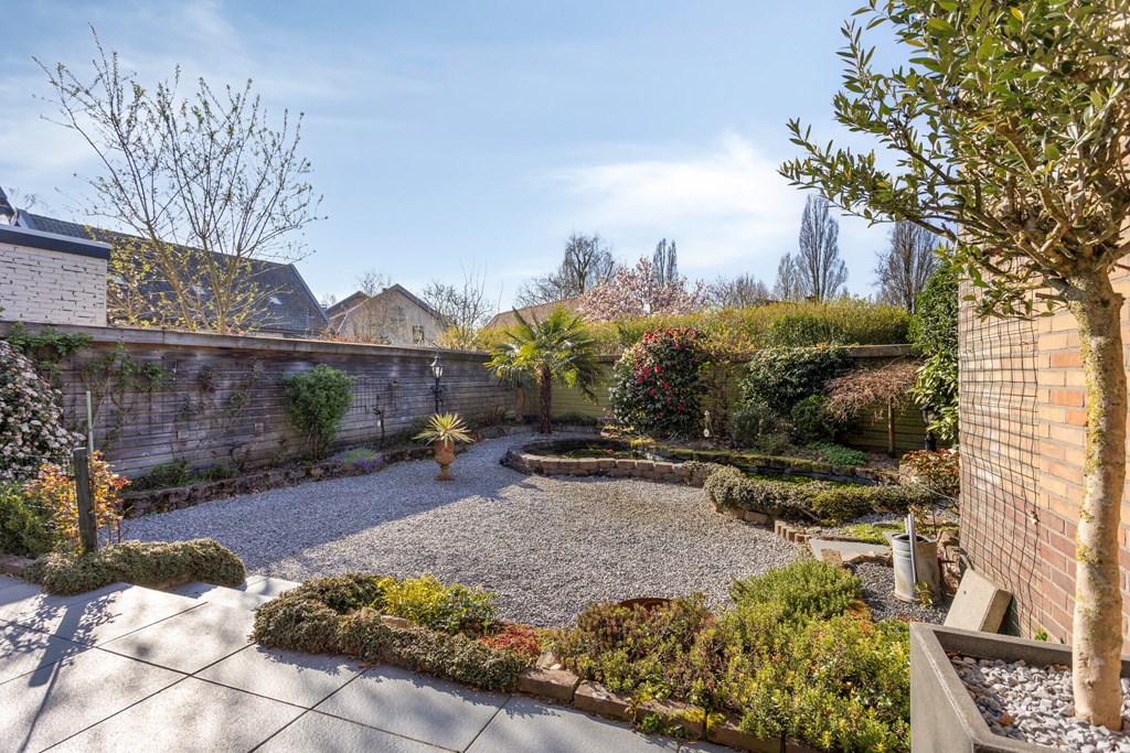 A highlight of the home is the spacious and sunny rear garden. Partly paved yet filled with greenery, it’s a vibrant space perfect for relaxation. The garden offers plenty of room for a lounge set or outdoor dining area, making it an ideal place to enjoy the sunshine. From the garden, you have direct access to the storage area.