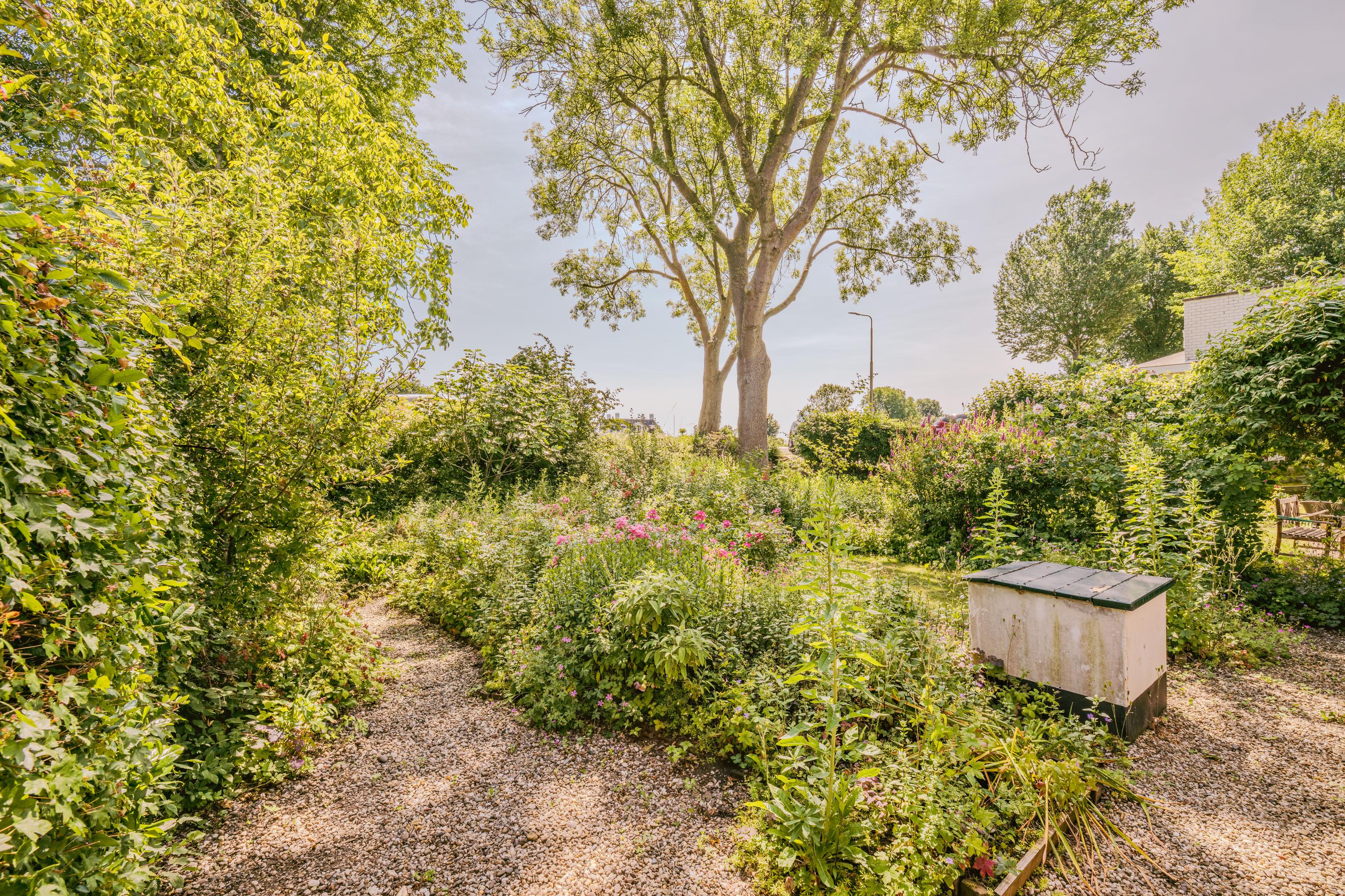 This authentic property offers a unique opportunity for those seeking a characteristic home in a special location, ready to be renovated entirely to one’s own taste. Situated along the Amsteldijk, the house lies slightly below road level and is partly hidden among the greenery. From the dike, a staircase descends to the front garden – a green space offering peace and privacy. On the right-hand side of the house, a narrow path runs along the façade to the front door, subtly set into the exterior wall.