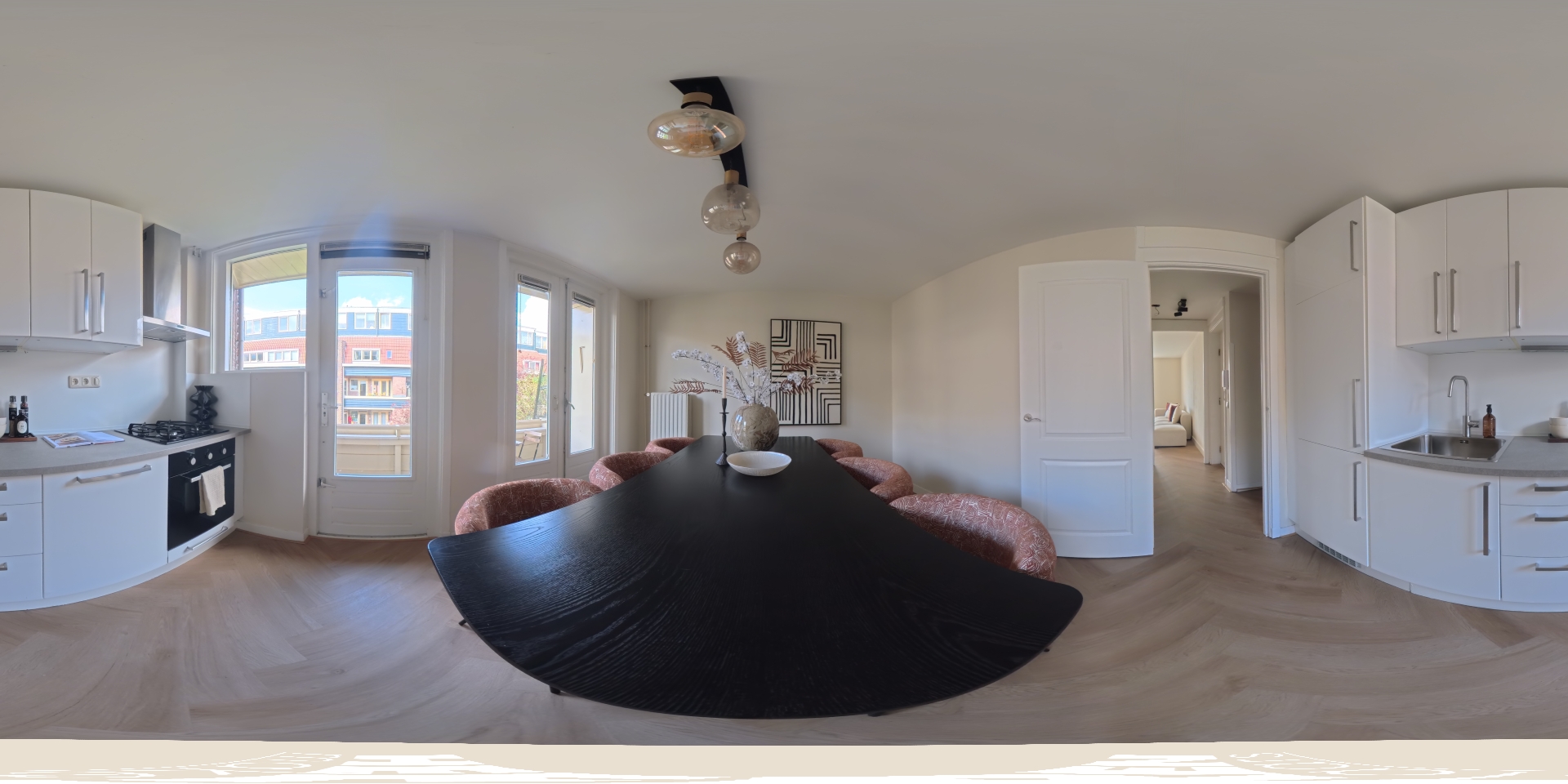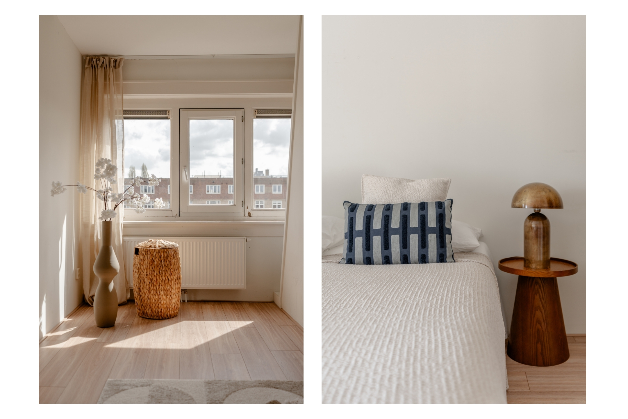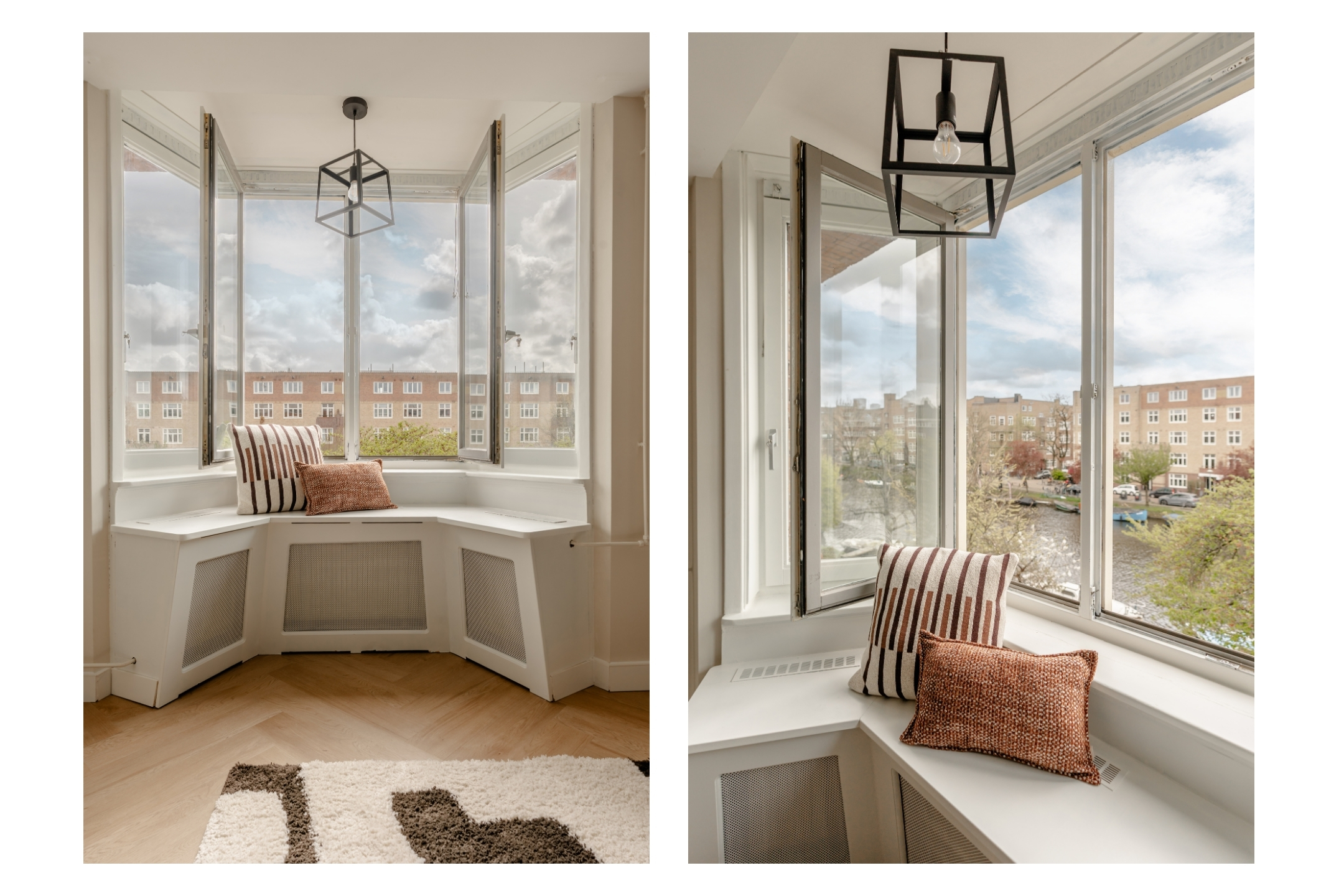 The living room at the front offers ample space to create a comfortable seating area. The charming bay window with opening windows allows for plenty of natural light and offers pleasant views over Jozef Israelskade and the water. At the rear, you will find the kitchen, situated in a pleasant open space yet separate from the living room. This makes it an ideal place to cook in peace and enjoy dining. Thanks to the three sets of French doors opening onto the balcony, this area is exceptionally bright. The kitchen is fully equipped, including a refrigerator, freezer, dishwasher, and a four-burner gas stove. The wide balcony, facing northwest, overlooks the quiet inner courtyard and provides a lovely place to relax. Adjacent to the kitchen is a bedroom that also has access to the balcony. This room can be flexibly arranged, for example as a home office, study, or children's room. The bathroom is also located on this level and features a bathtub, toilet, walk-in shower, and washbasin.