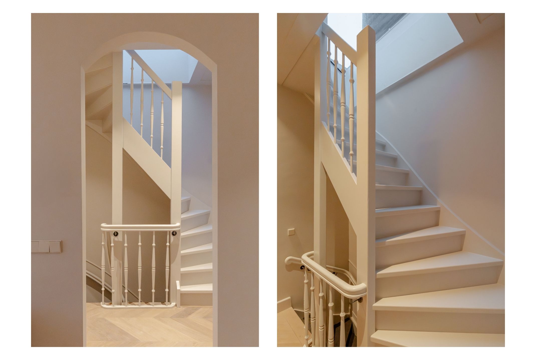 Via the well-maintained, shared staircase you reach the entrance of this stylish penthouse on the second floor. A staircase then leads you further to the living level on the third floor. Upon entering, you step directly from the hallway into the open-plan living area. The apartment has been fully renovated and finished to a high standard. The exceptionally high ceilings enhance the sense of space and give the property an impressive, airy feel.