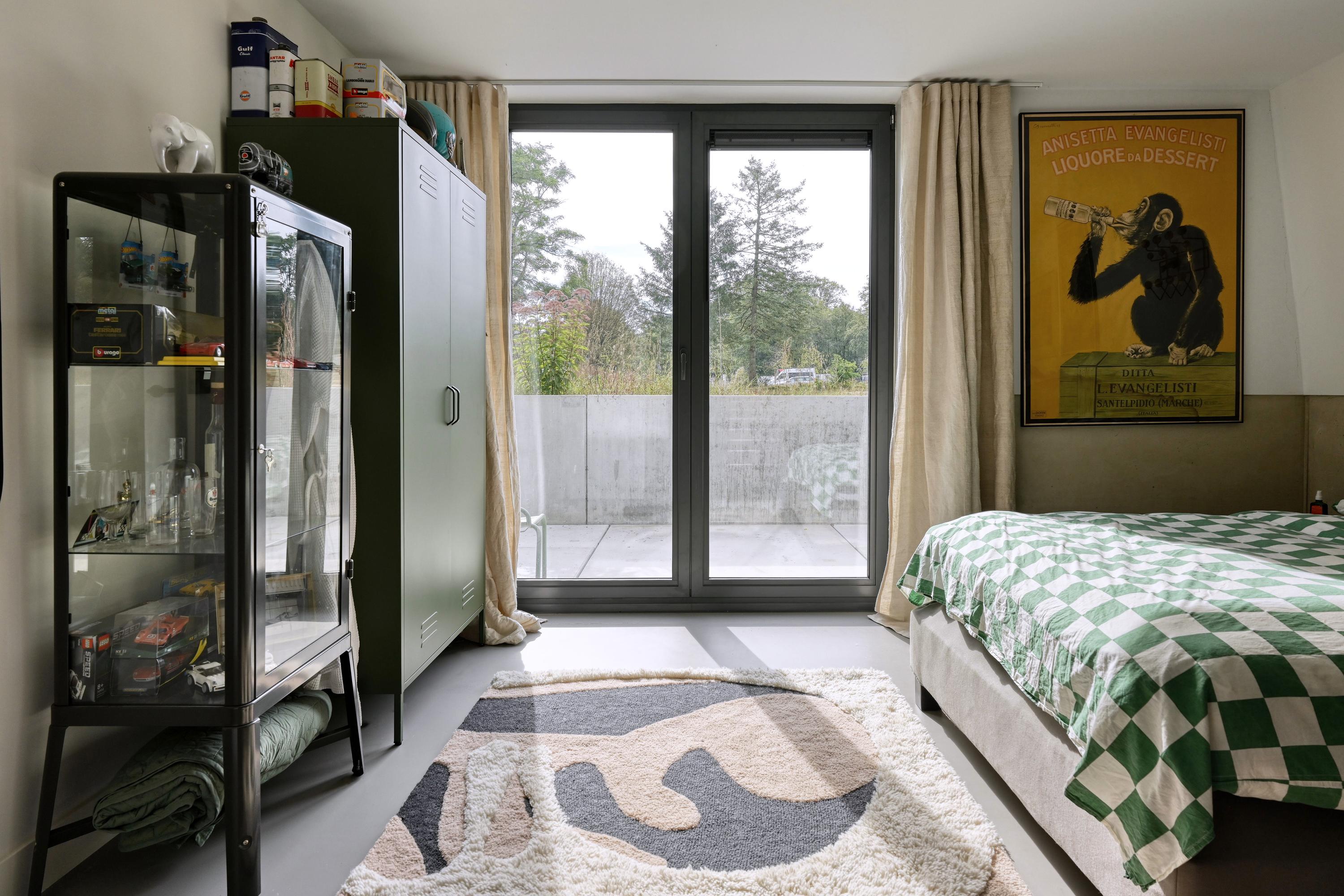 De vloeren zijn grotendeels uitgevoerd in gevlinderd beton die een knipoog zijn naar het industriële karakter van de voormalige hangar. De vloeren zijn voorzien van vloerverwarming.
