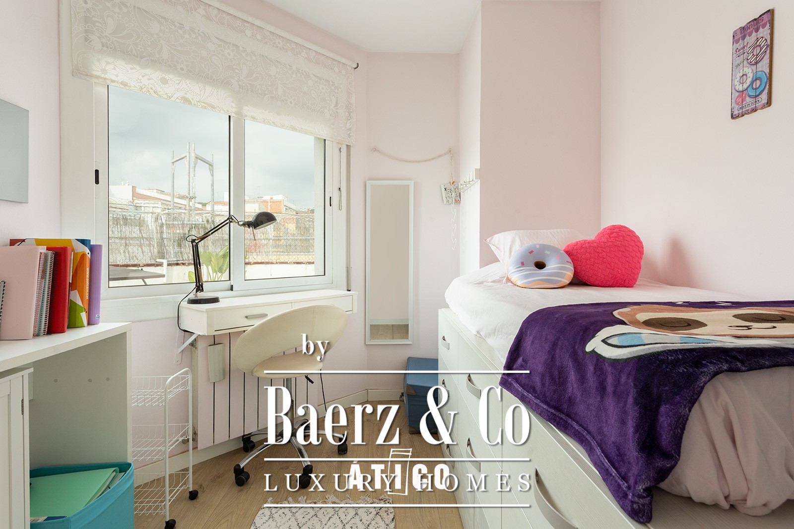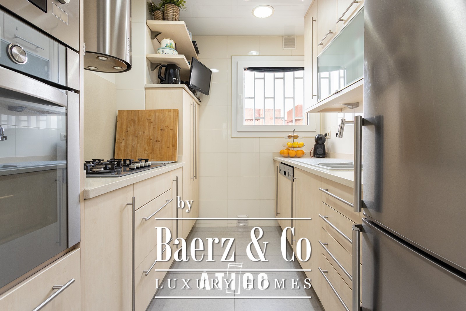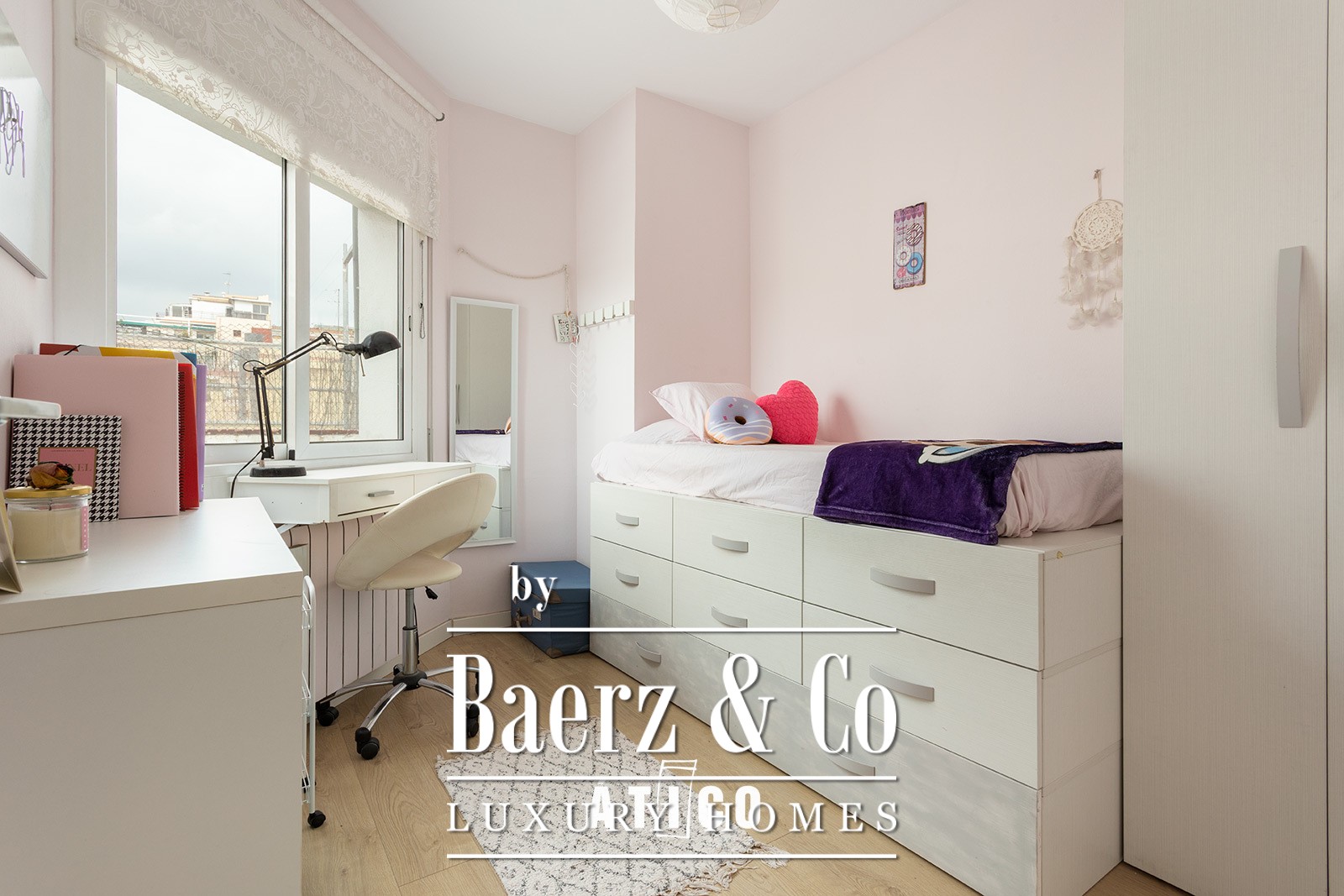 Materials are thoughtfully selected and spaces immaculately maintained, supported by air conditioning and heating for year-round comfort. On a quiet residential street in Guinardó, the penthouse stands shielded from city noise, yet remains deeply connected: swift access to public transport, thoroughfares, universities, cultural venues, and parks.