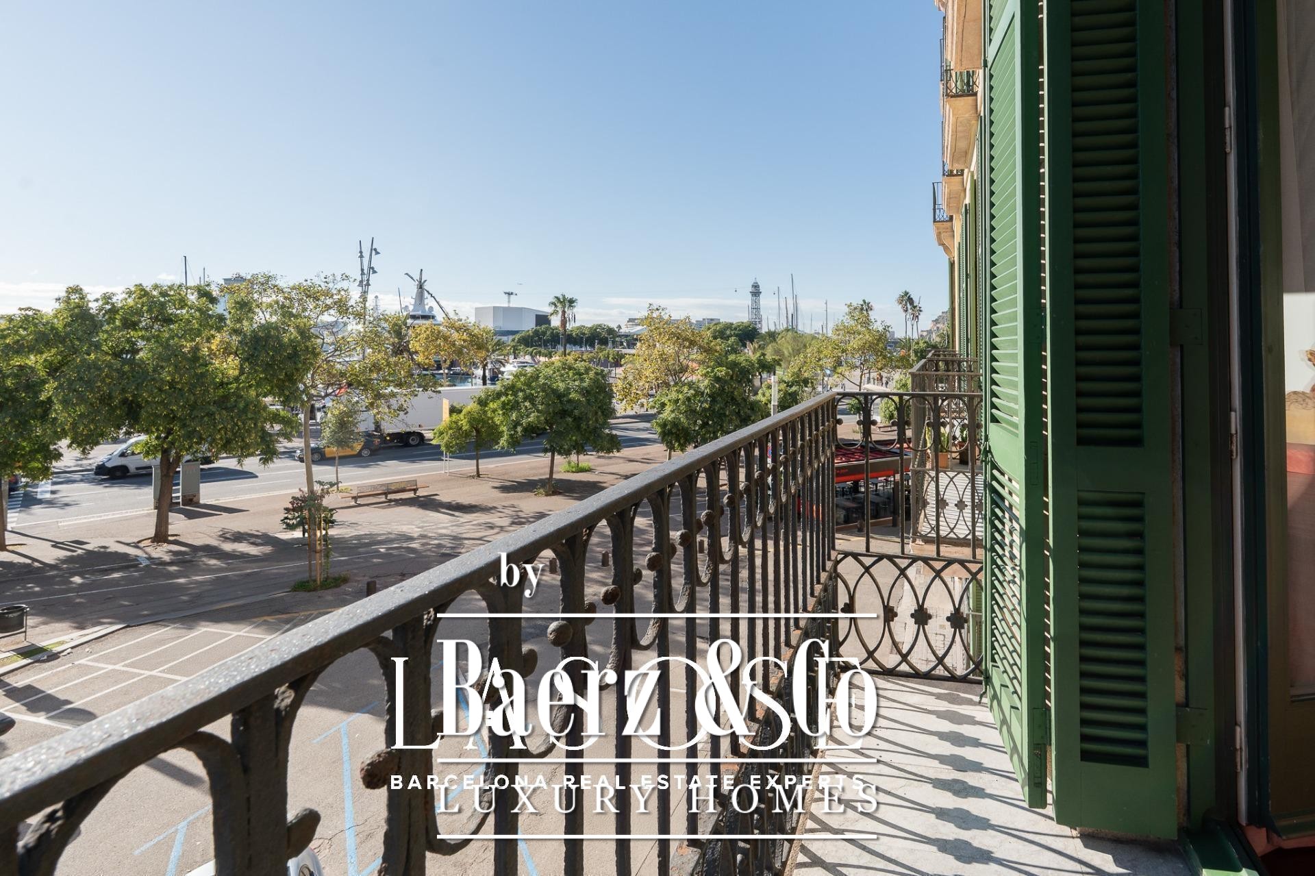 Apartment Barcelona sets its stage within a historic building overlooking the city’s marina. This apartment, spanning 122 m², occupies a distinguished address on Carrer Llauder and presents a rare interplay of heritage and contemporary living. Step inside to a volume defined by 3.8-meter ceilings, exposed wooden beams, and Catalan vaulted ceilings with hand-painted details. Wrought-iron balconies frame the open sea and the greenery of Las Ramblas de Mar, filling each room with Mediterranean light.