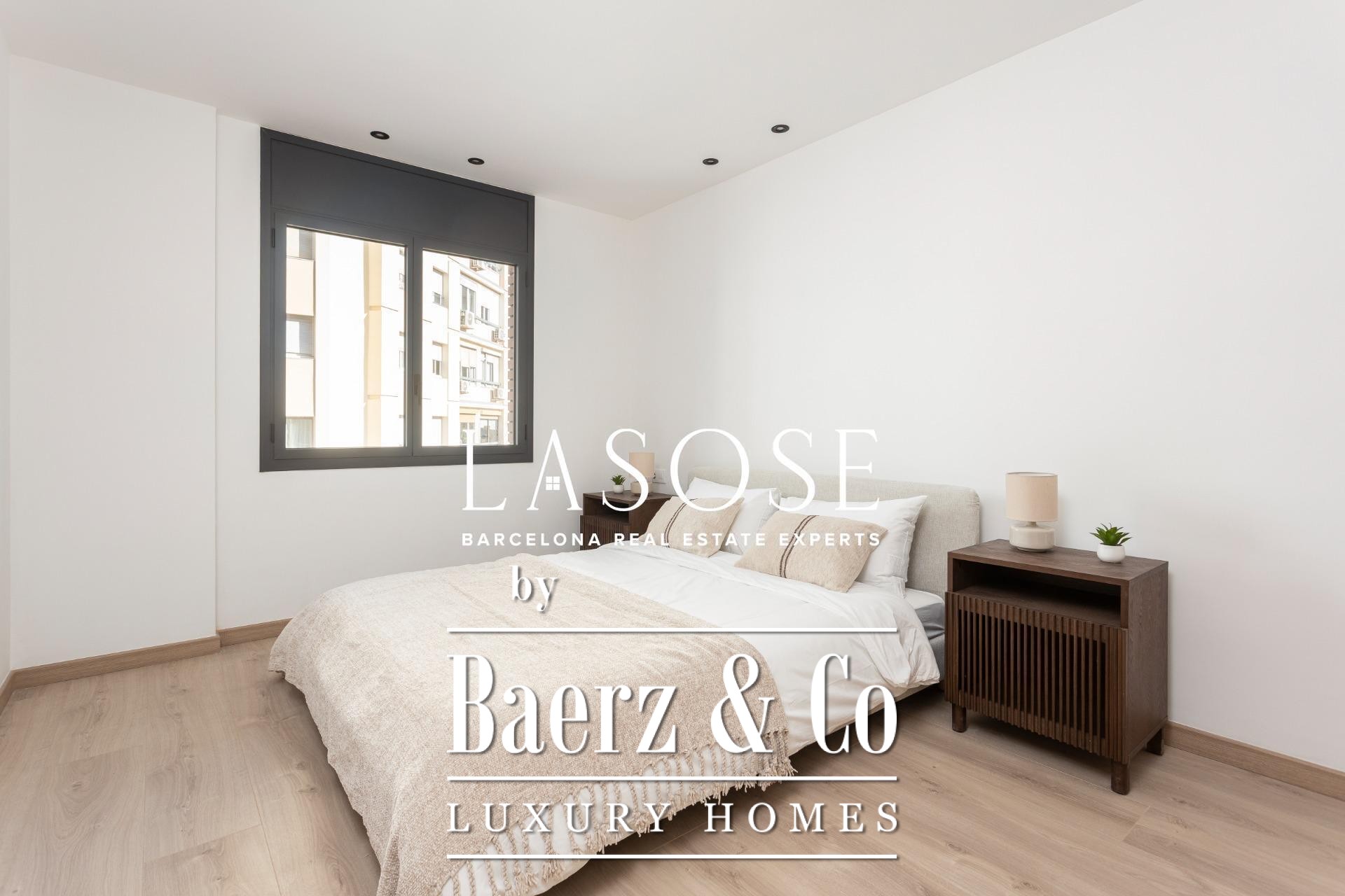 Apartment Barcelona Third Floor With Terrace welcomes you to 108 m² of refined living, set within a corner building offering concierge service and a sense of urban calm. Positioned just steps from Passeig de Sant Joan and Plaça Tetuan, this fully refurbished residence is enveloped by Barcelona’s vibrant cultural and culinary amenities, with effortless public transport just outside the door.