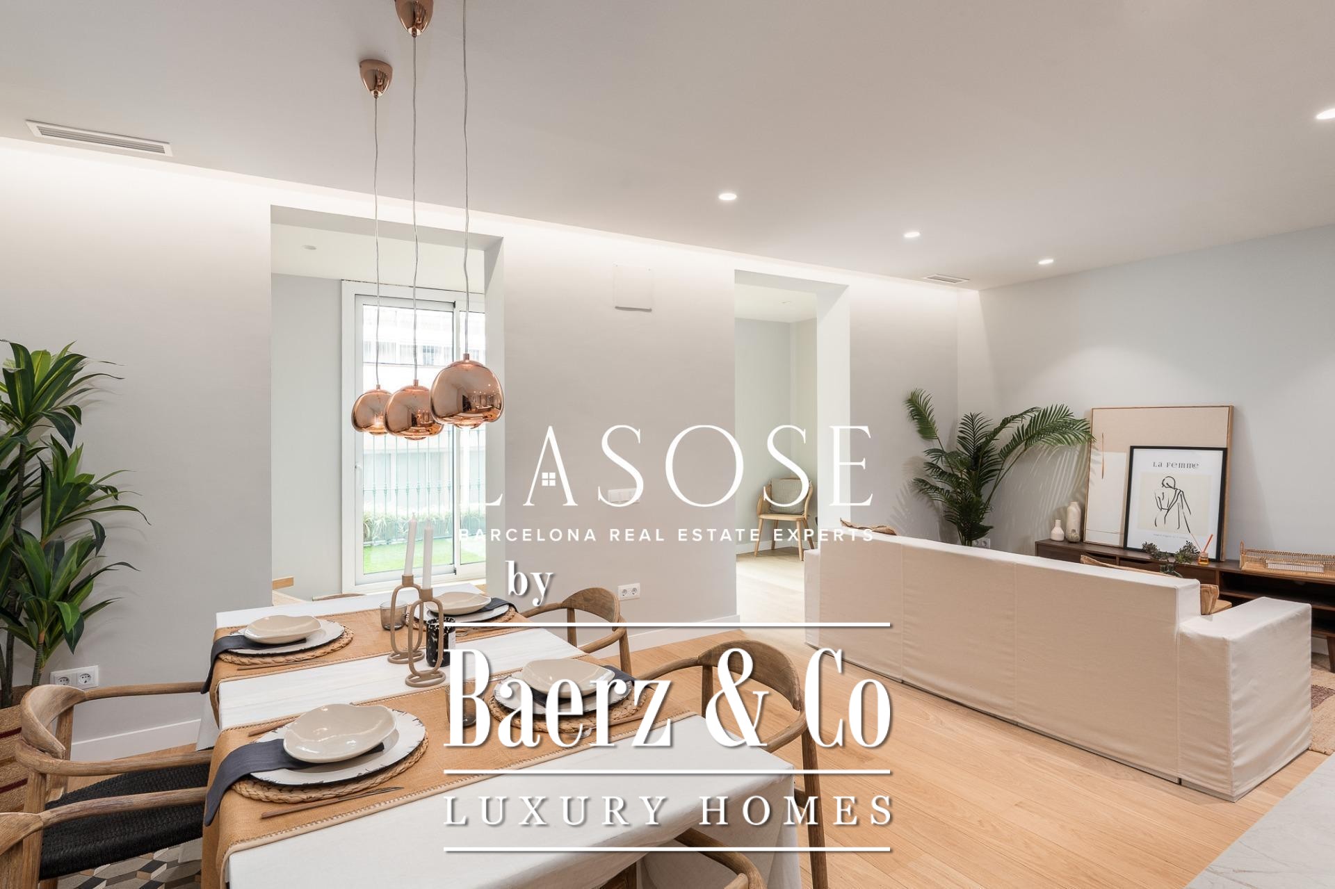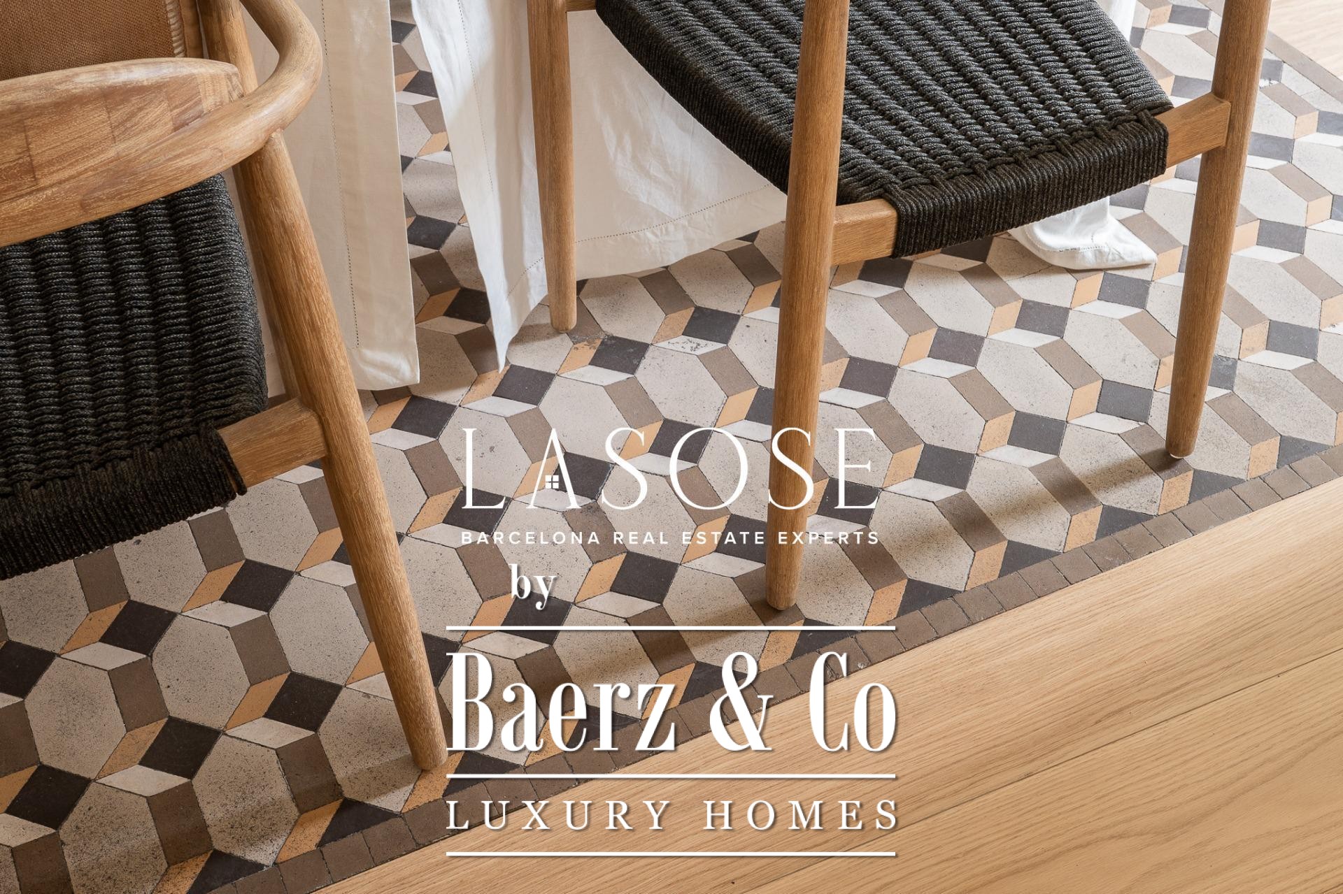 Apartment Barcelona stands at the intersection of Plaça Catalunya and Dreta de l'Eixample, occupying a notable position on Bergara Street. This 162 m² residence blends early 20th-century architecture with contemporary comfort. Natural light moves through soaring coffered ceilings and restored Nolla hydraulic mosaic floors, while original woodwork and refined moldings add a sense of provenance.