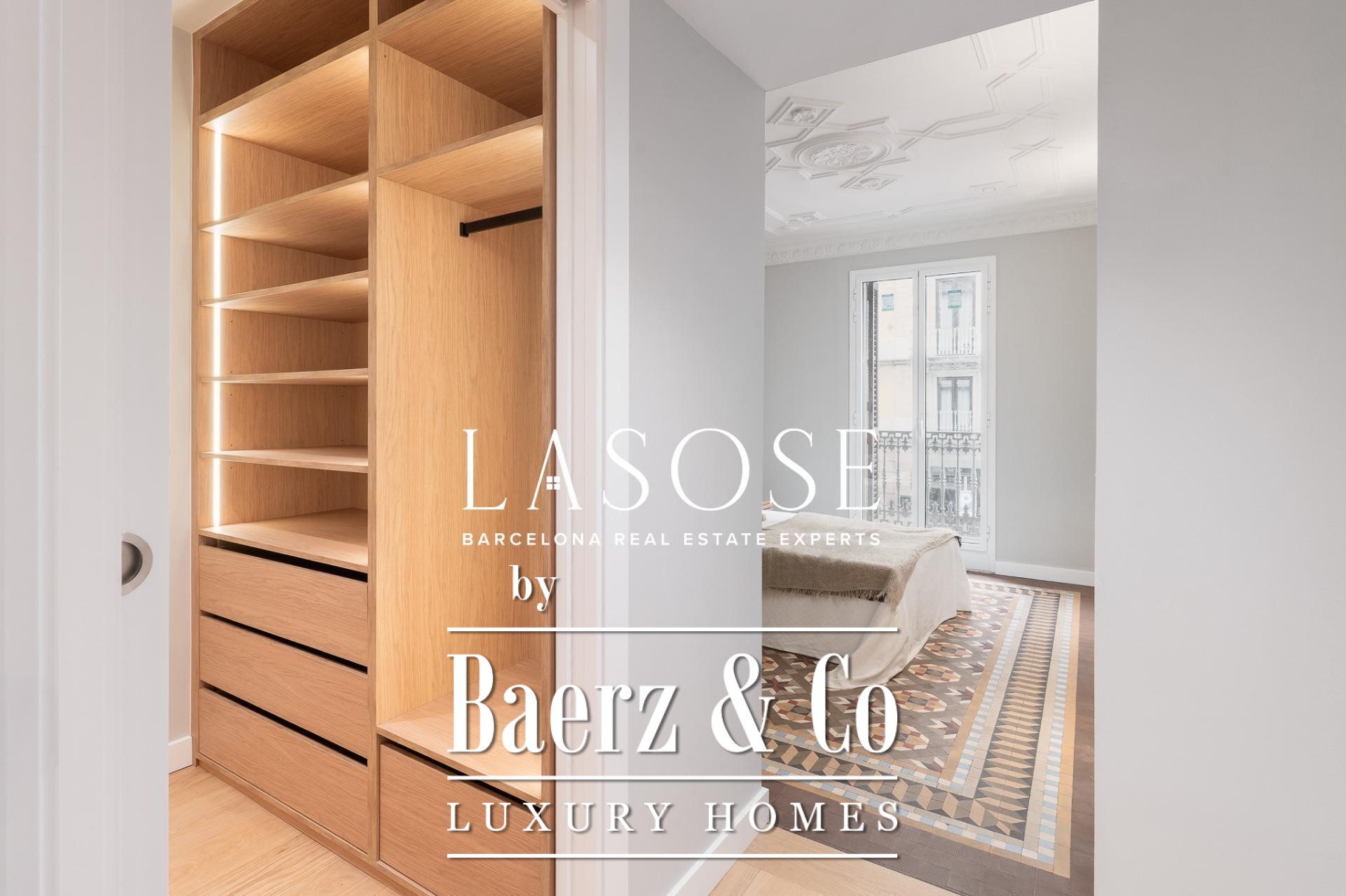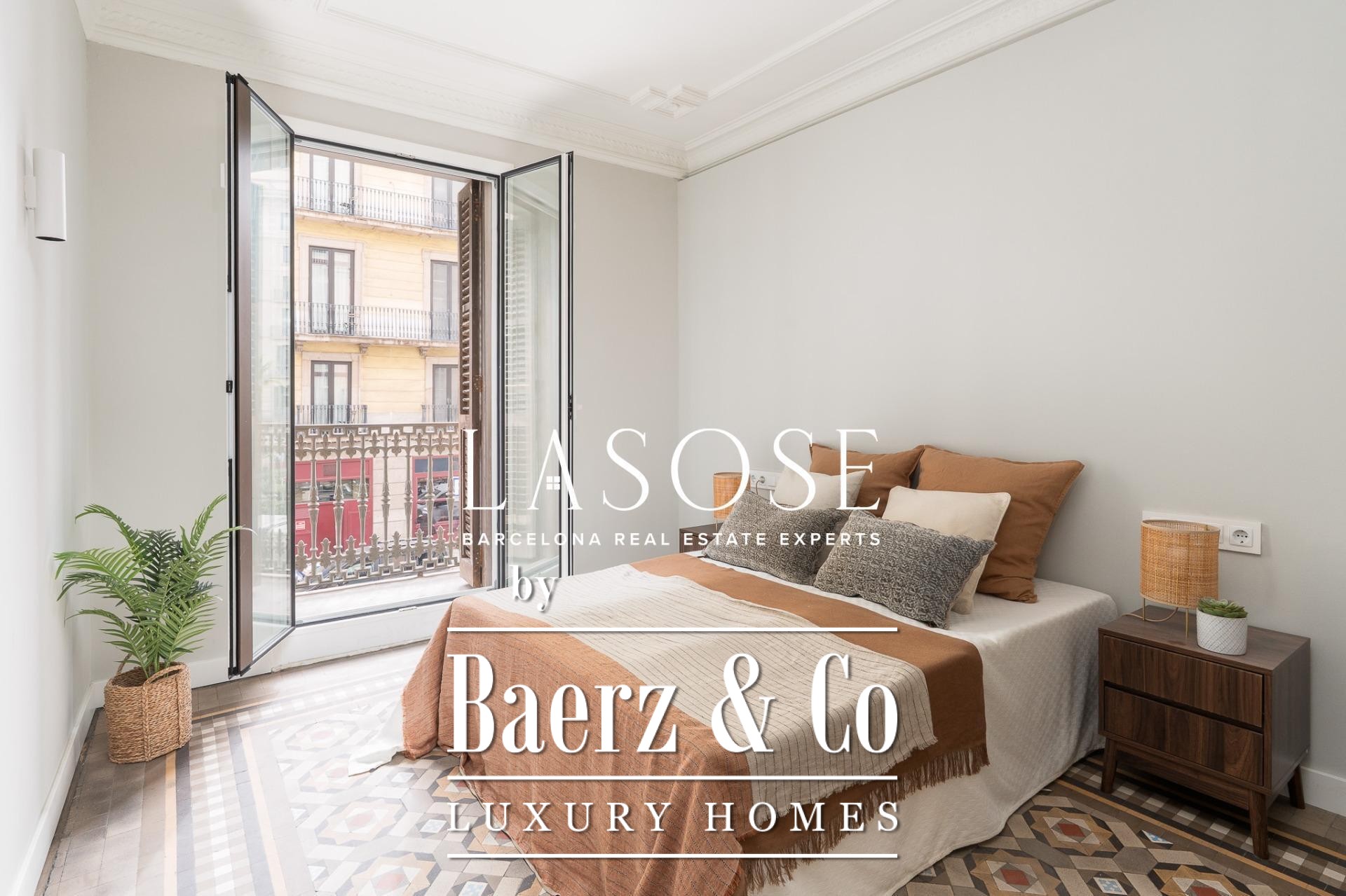 The restored building is equipped with an elevator, alarm system, and modern amenities including a terrace and balcony. Living here, Passeig de Gràcia and Las Ramblas are at your doorstep, alongside the city’s finest boutiques, gastronomy, and transport links. This apartment is a singular opportunity for those seeking both heritage and elevated city living in Barcelona.