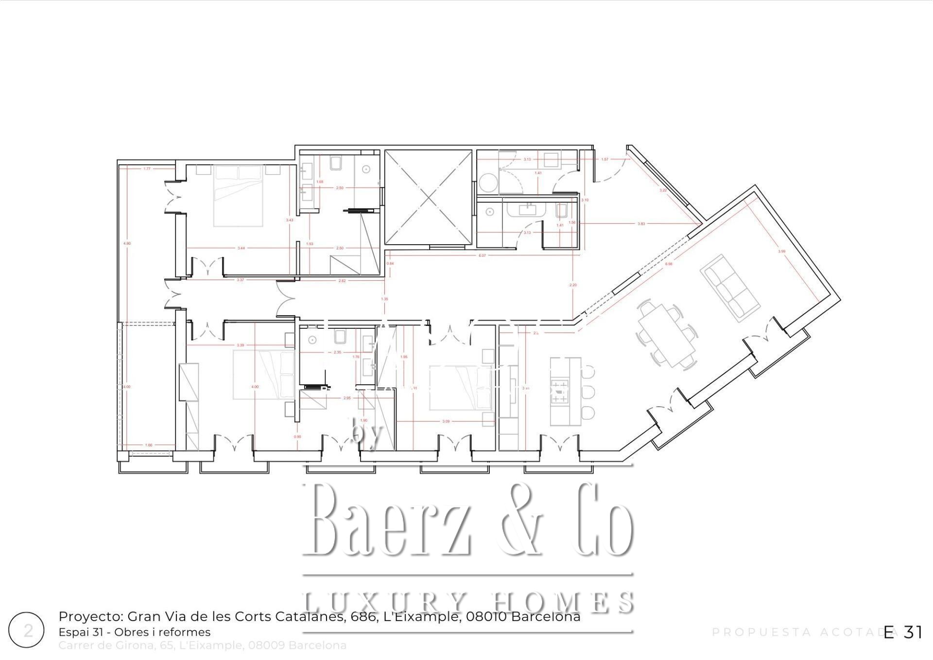 Penthouse Barcelona Quadrat d'Or stands at the coveted crossroads of Calle Girona and Gran Via de les Corts Catalanes, offering 201 m² of refined living space complemented by a 20 m² terrace. This residence blends history and contemporary design, just moments from Passeig de Gràcia and Plaça Catalunya. Surrounded by hotels, theatres, restaurants, schools, exclusive shops, and fully connected by public transport, it situates you in the heart of Barcelona’s iconic Quadrat d'Or.