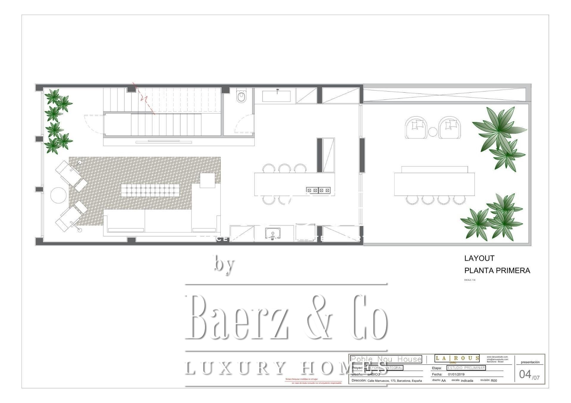 Townhouse Poblenou Barcelona presents 249 m² of refined urban living in one of the city’s most sought after neighborhoods. This meticulously renovated home embraces Catalan vault ceilings and parquet flooring, blending traditional character with understated modernity.