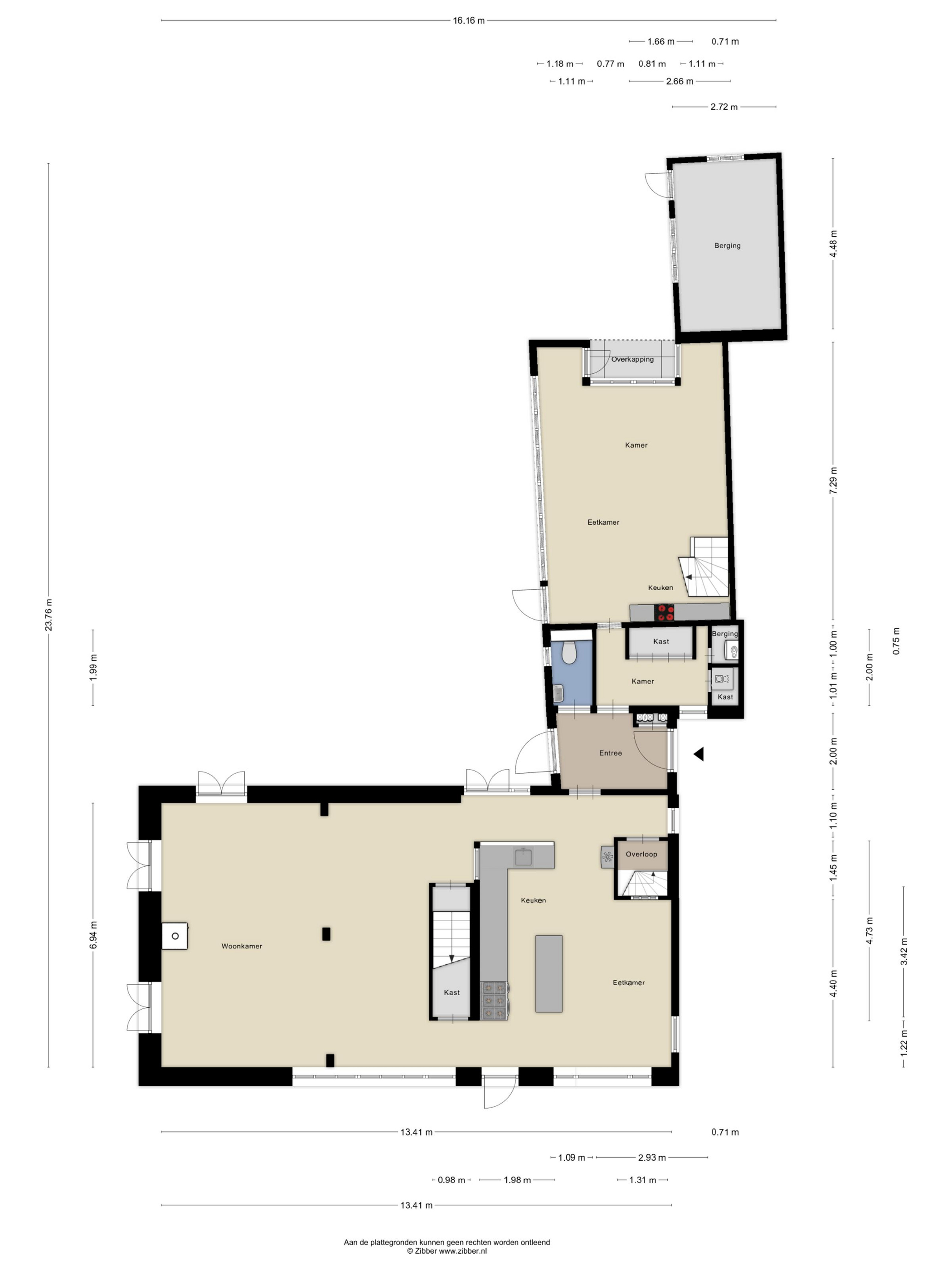 Upon entering from Dorpsstraat, you step directly into the spacious kitchen-diner. This open kitchen is equipped with modern built-in appliances and a cooking island, seamlessly connected to the dining area. Large windows make this a wonderfully bright and inviting space. From here, you also have access to the basement, which provides additional storage.
