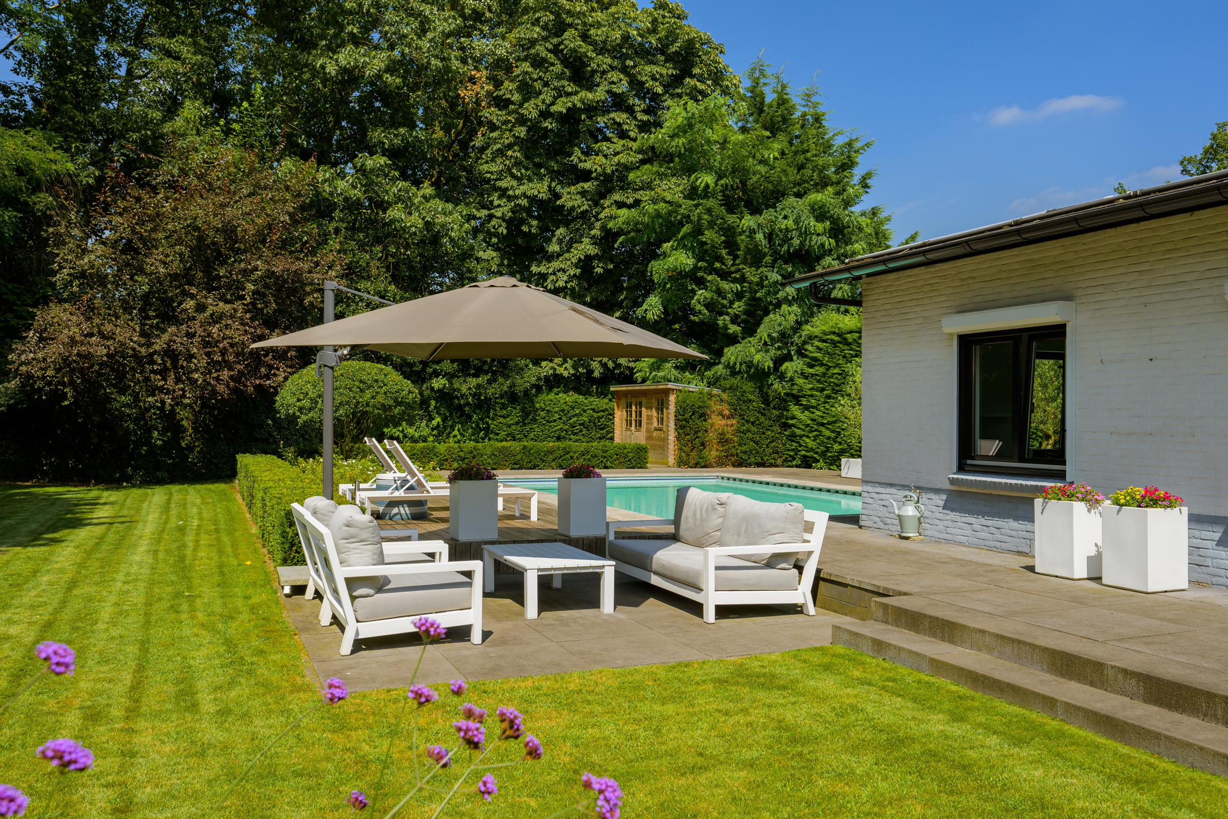 The generous, landscaped garden is a private retreat with broad lawns, multiple terraces, mature trees, varied plantings, and a heated swimming pool measuring 6 by 9.5 metres. A spacious garage, secure storage, and discreet technology such as alarm, blinds, pool heating, and irrigation reflect thoughtful attention to both comfort and privacy.