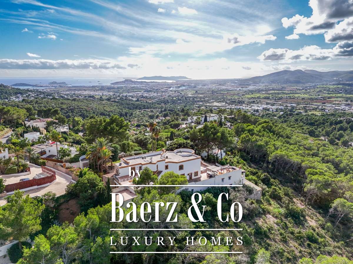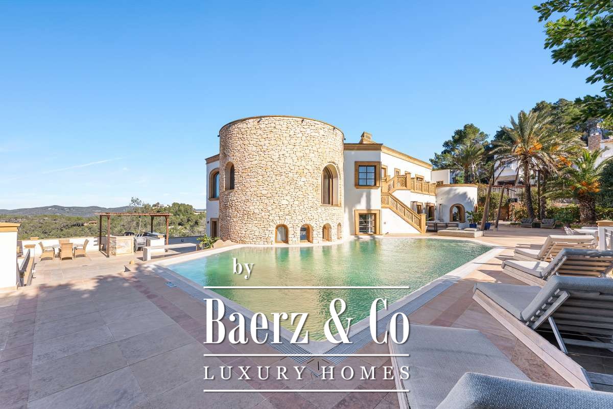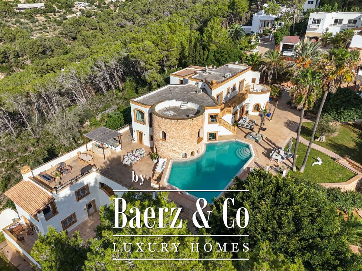 Villa Can Furnet with Panoramic Sea and City Views commands a privileged position within one of Ibiza’s most discreet and guarded residential enclaves. This villa articulates a rare sense of privacy, space and calm, yet Ibiza Town and Marina Botafoch remain within a ten-minute drive. The villa offers 992 m² of interior living over a 2,504 m² plot, with eight bedrooms and nine bathrooms, including two separate guest apartments with private entrances, thoughtfully designed for guests or staff who value privacy.