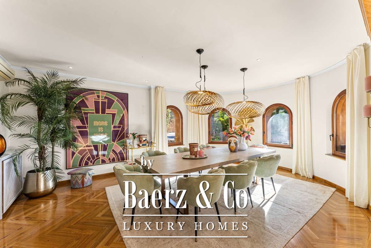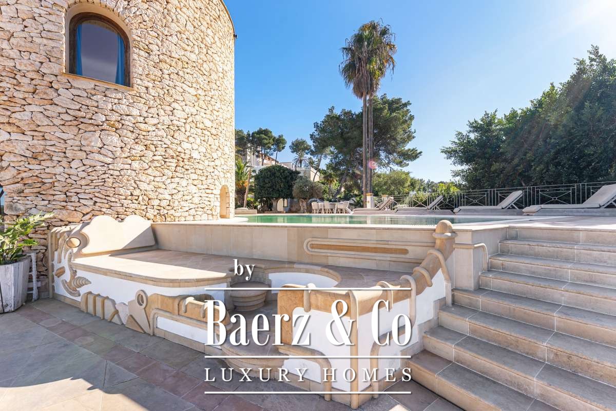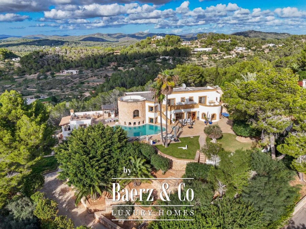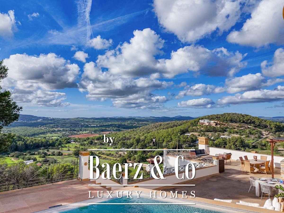 Villa Can Furnet with Panoramic Sea and City Views commands a privileged position within one of Ibiza’s most discreet and guarded residential enclaves. This villa articulates a rare sense of privacy, space and calm, yet Ibiza Town and Marina Botafoch remain within a ten-minute drive. The villa offers 992 m² of interior living over a 2,504 m² plot, with eight bedrooms and nine bathrooms, including two separate guest apartments with private entrances, thoughtfully designed for guests or staff who value privacy.