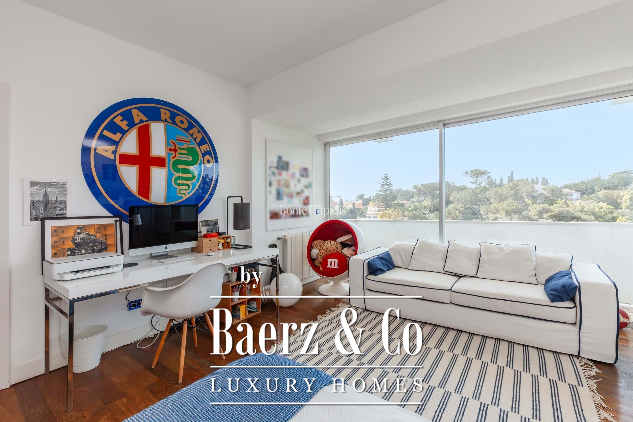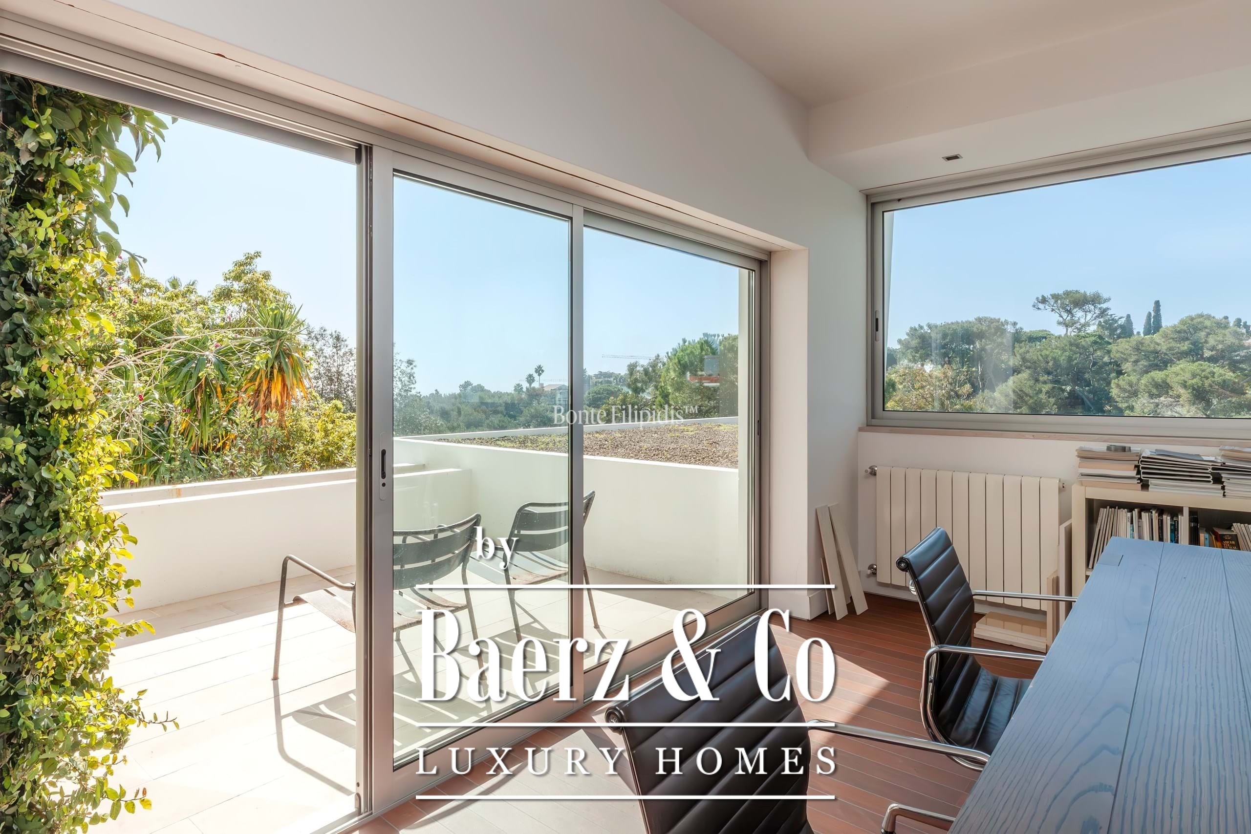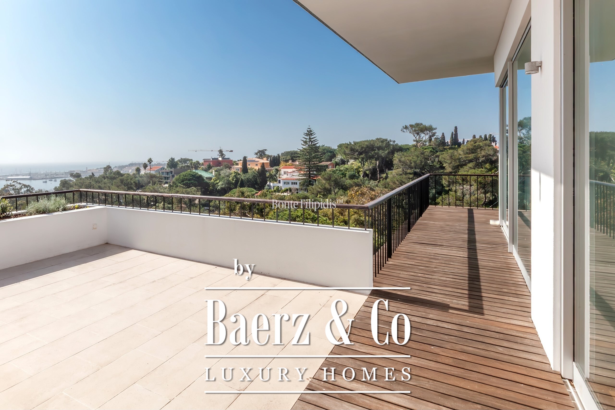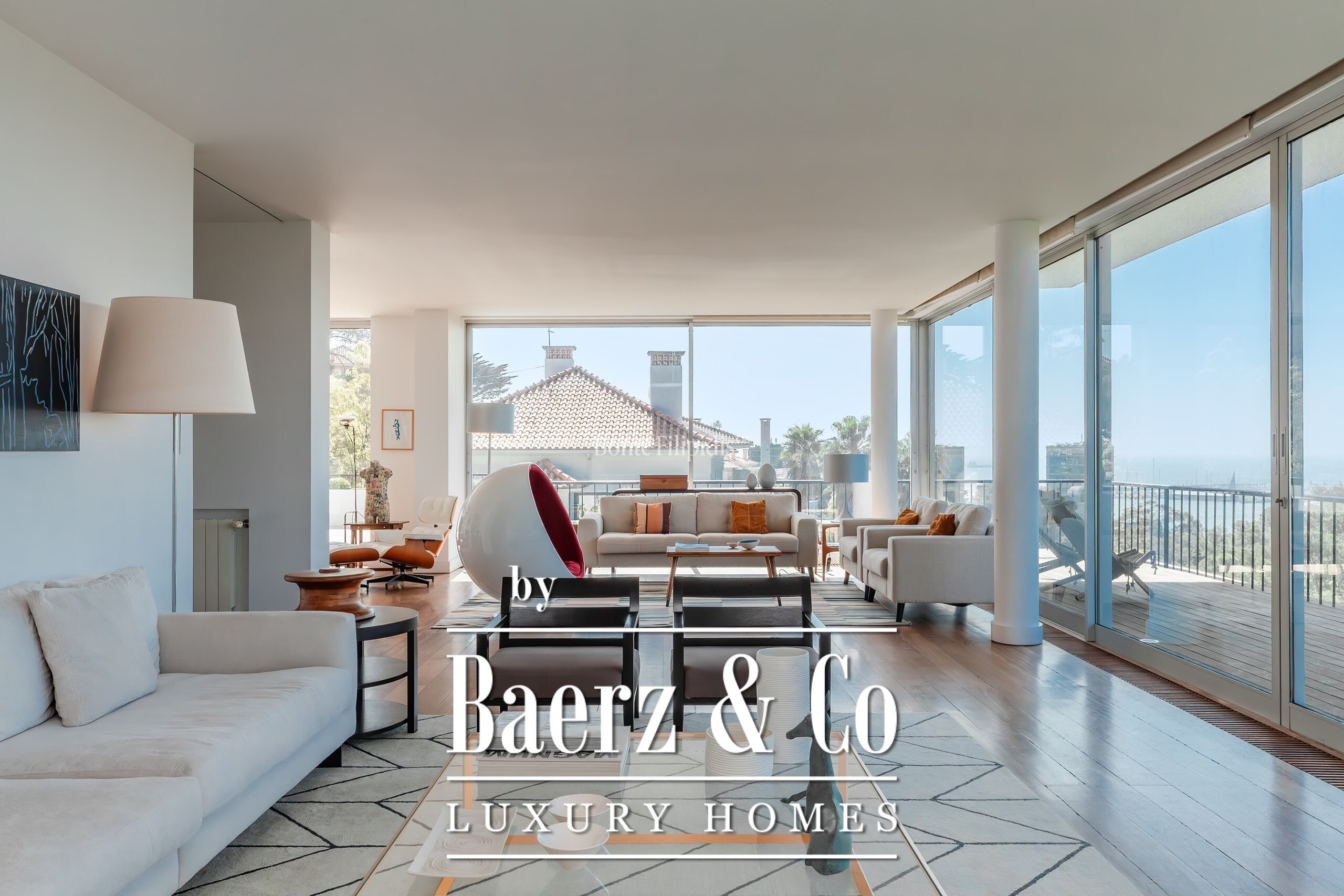 Villa Monte Estoril Cascais e Estoril is quietly positioned above Parque Palmela with expansive views over Cascais Bay, offering residents a rare perspective within this distinguished coastal enclave. The property is set across a 1,610 m² plot, presenting 801 m² of elegantly designed living space spread over four levels, all connected by elevator. Large volumes and floor-to-ceiling windows allow natural light to define the interiors while framing open sightlines across the park and Atlantic Ocean.