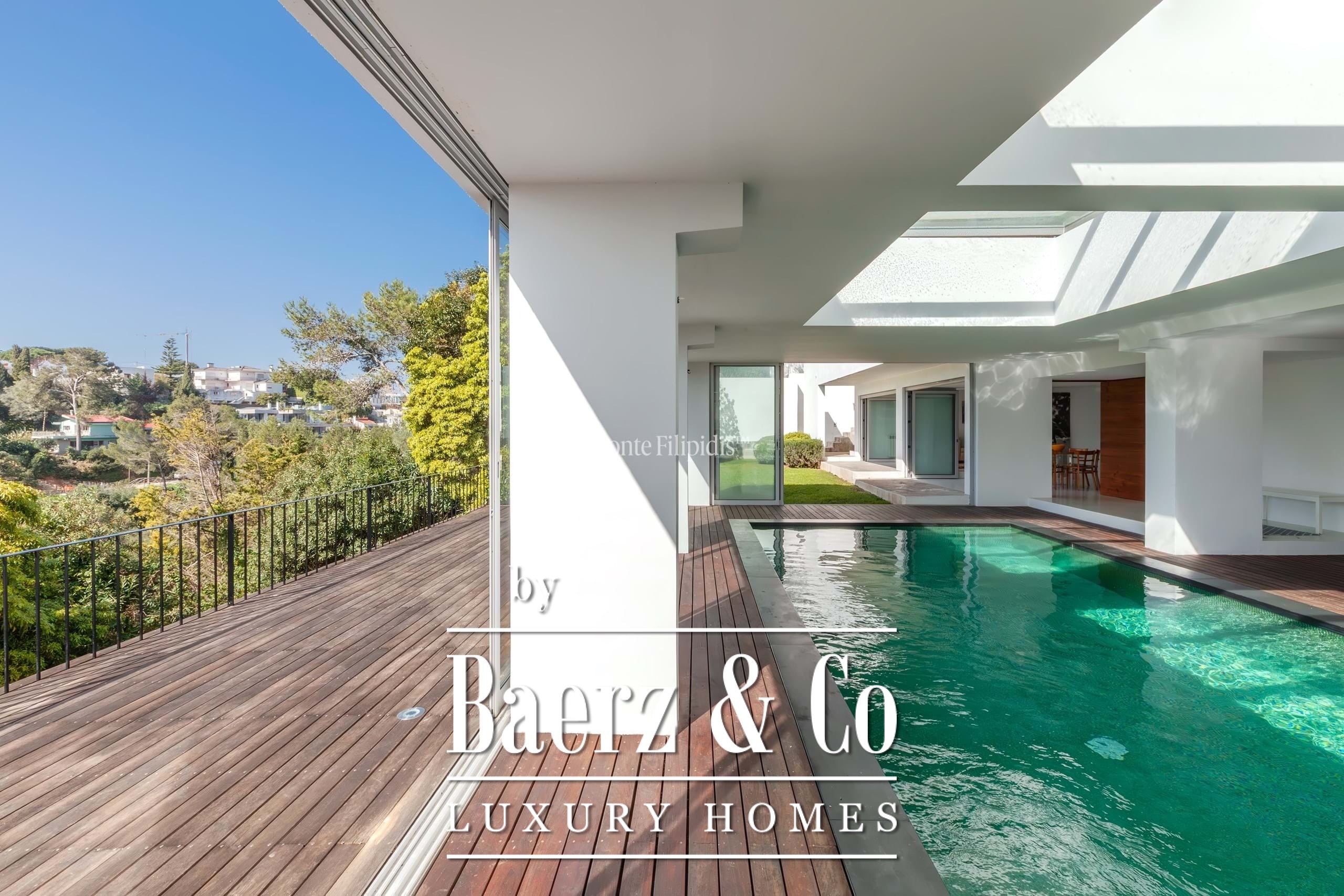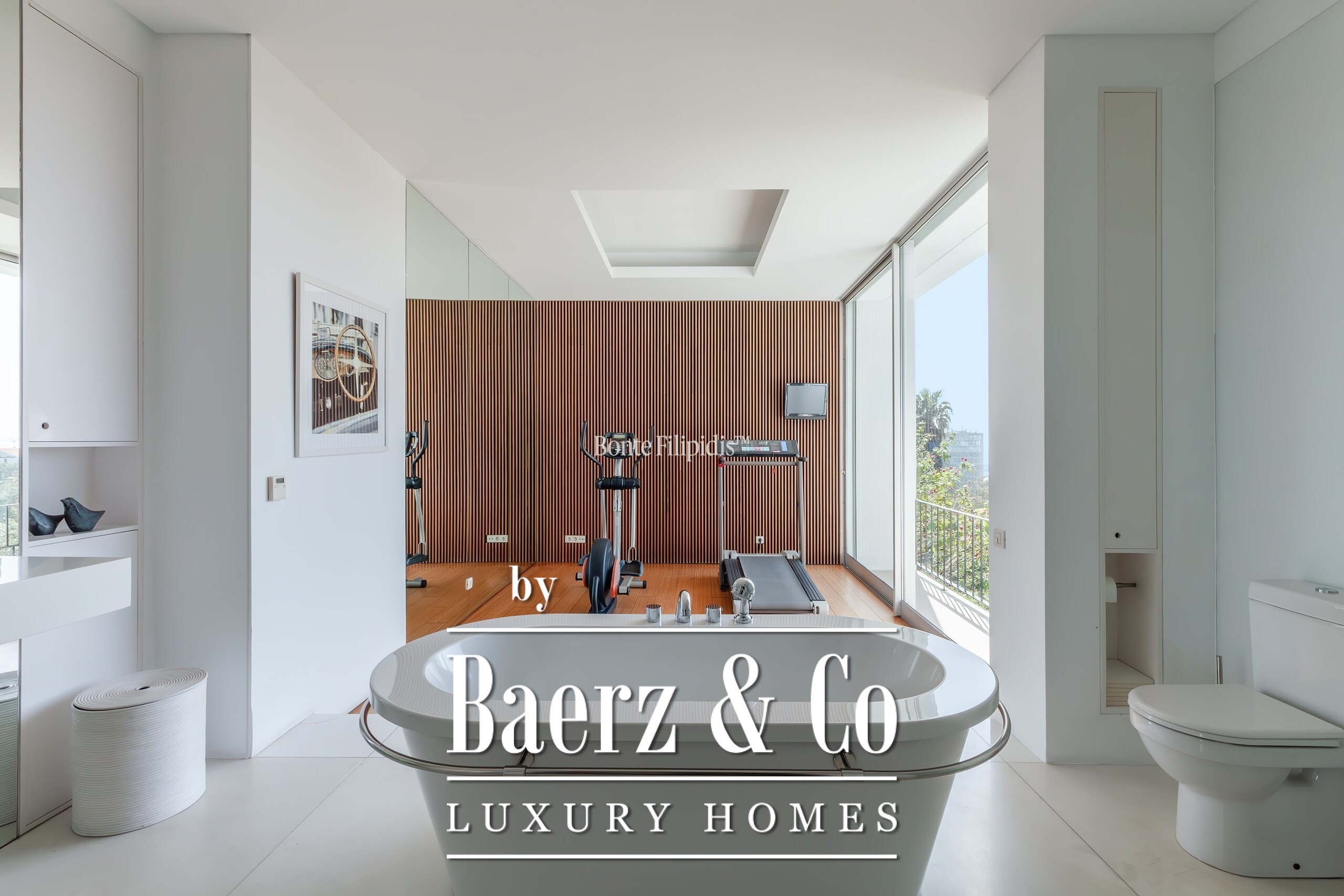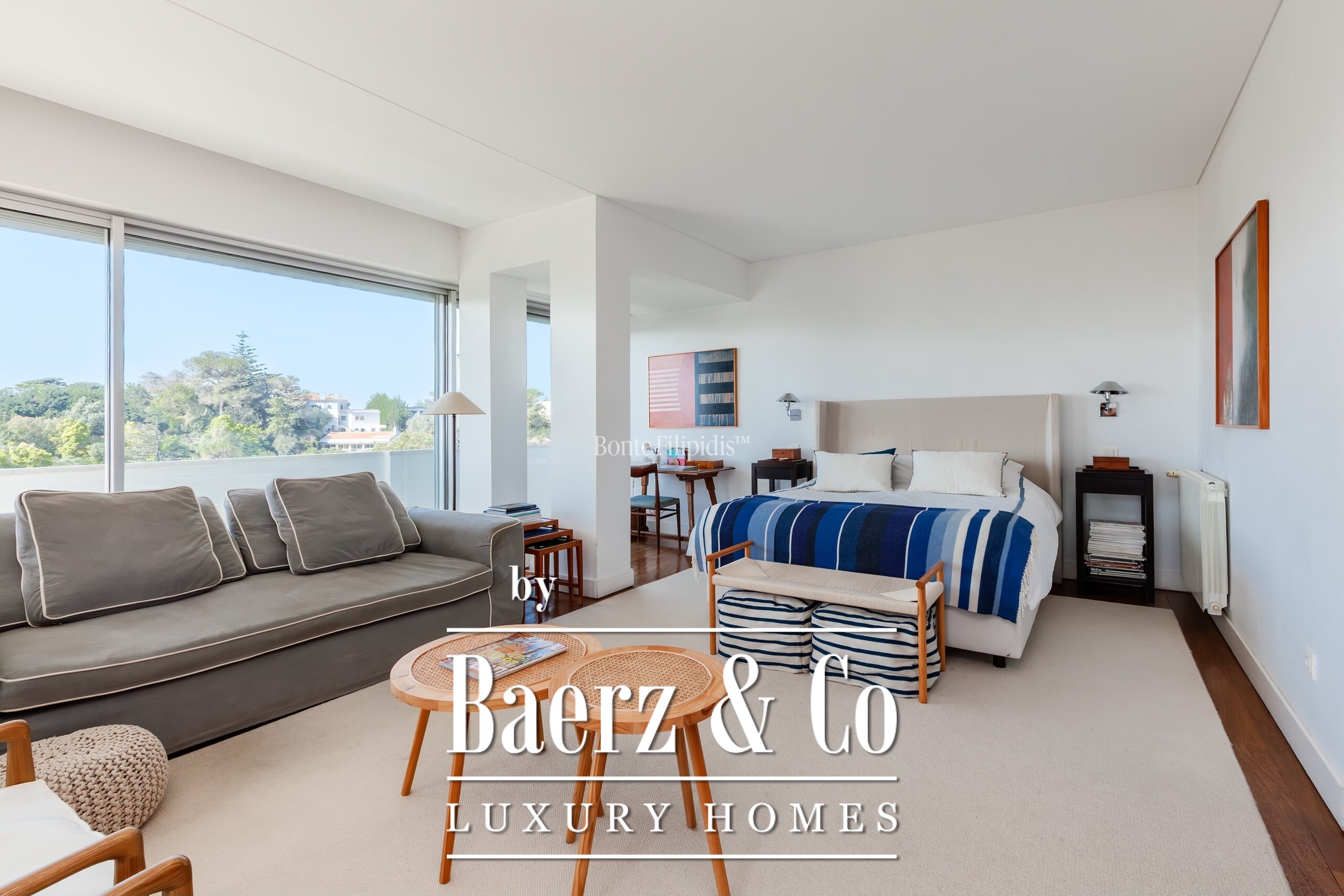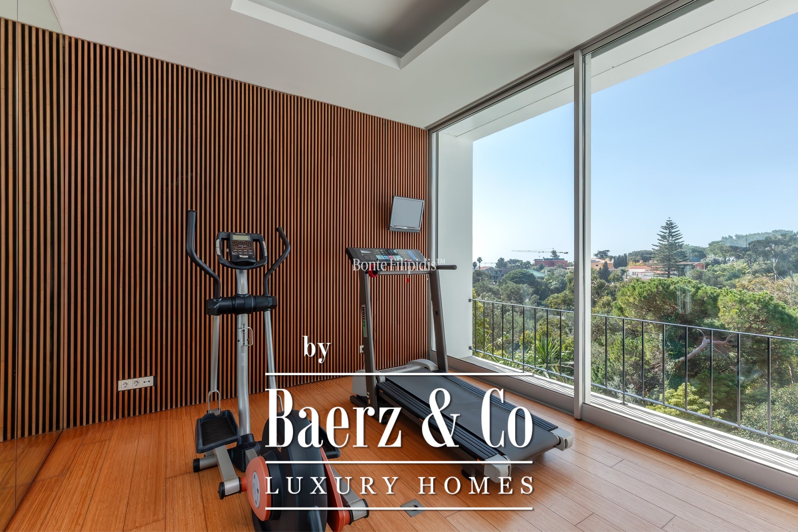 Villa Monte Estoril Cascais e Estoril is quietly positioned above Parque Palmela with expansive views over Cascais Bay, offering residents a rare perspective within this distinguished coastal enclave. The property is set across a 1,610 m² plot, presenting 801 m² of elegantly designed living space spread over four levels, all connected by elevator. Large volumes and floor-to-ceiling windows allow natural light to define the interiors while framing open sightlines across the park and Atlantic Ocean.