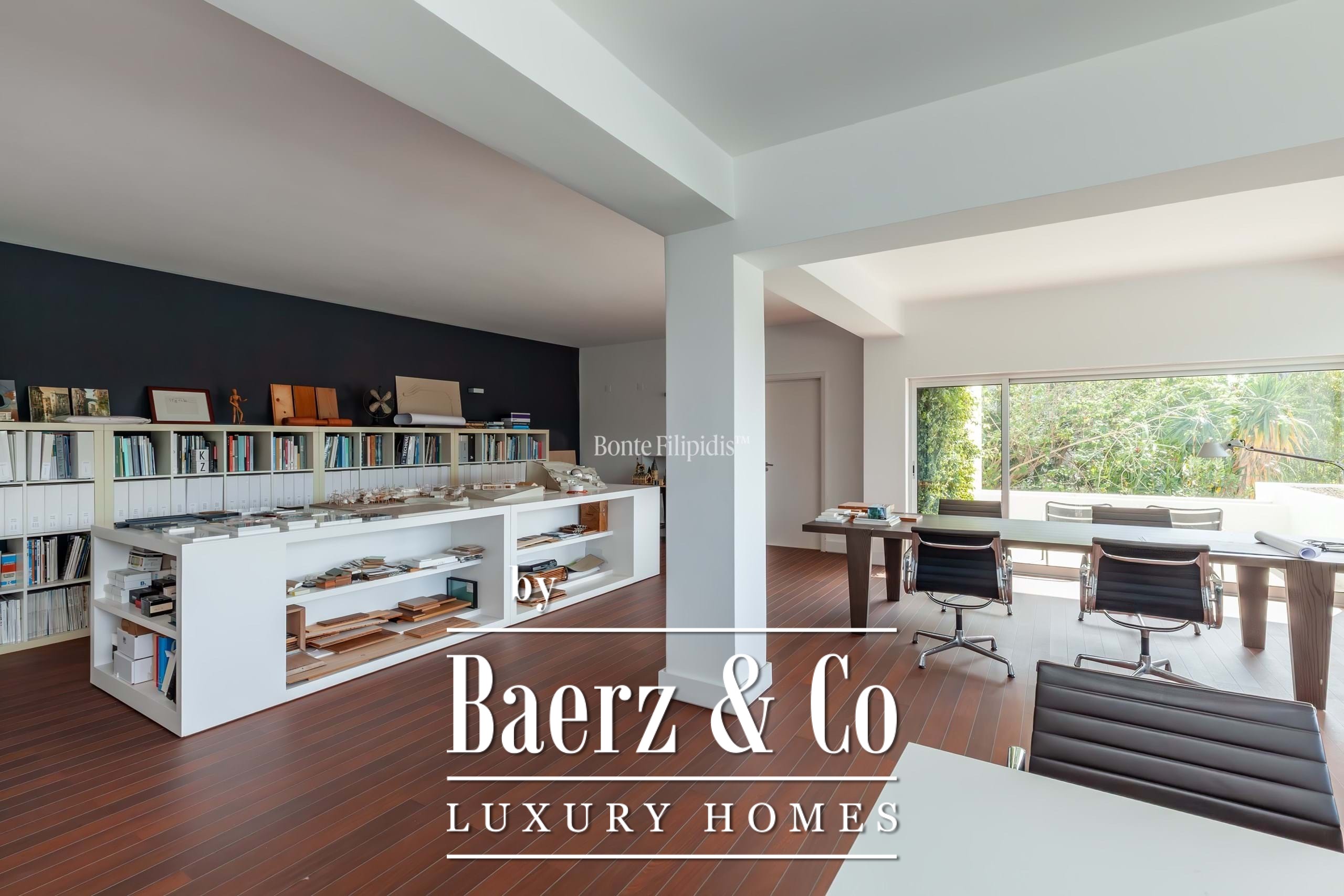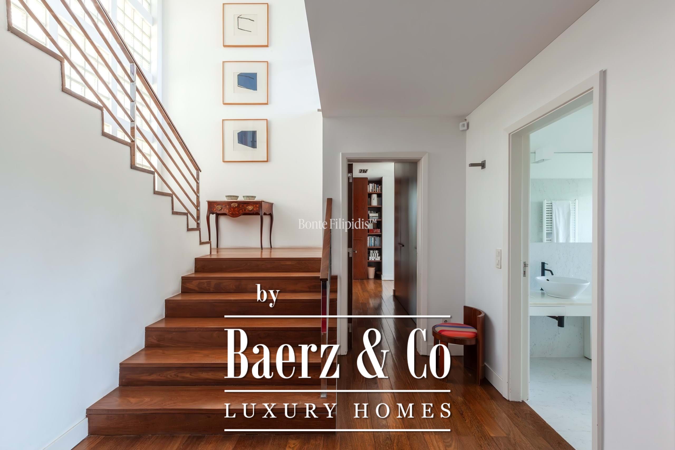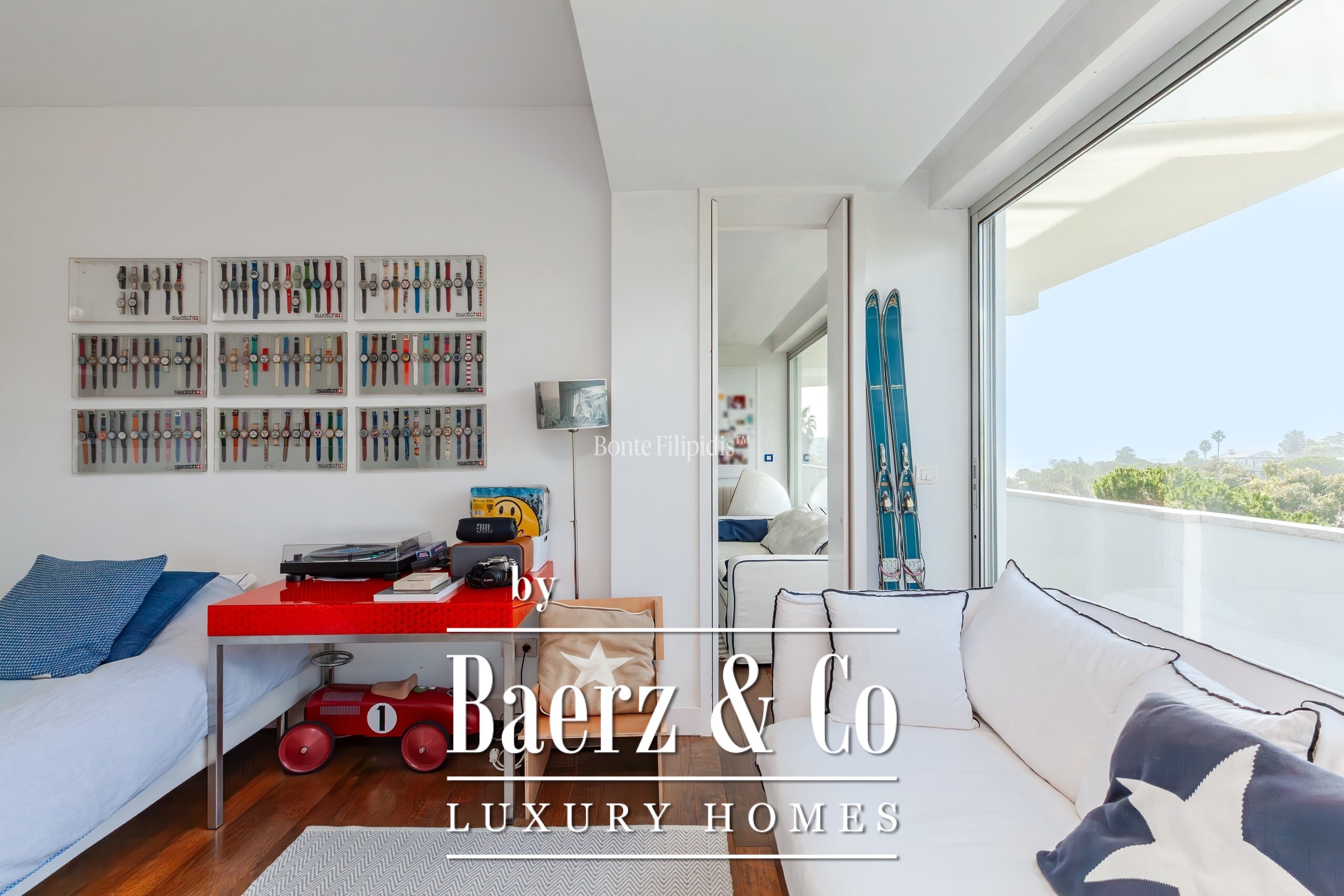 The bedroom floor is anchored by a serene primary suite with its own terrace, walk-in wardrobe, ensuite bathroom, and gym. Three further bedrooms share a sea-facing terrace and two additional bathrooms. The 216 m² atelier floor, with potential for independent access, adapts as a guest apartment, studio, or private retreat.