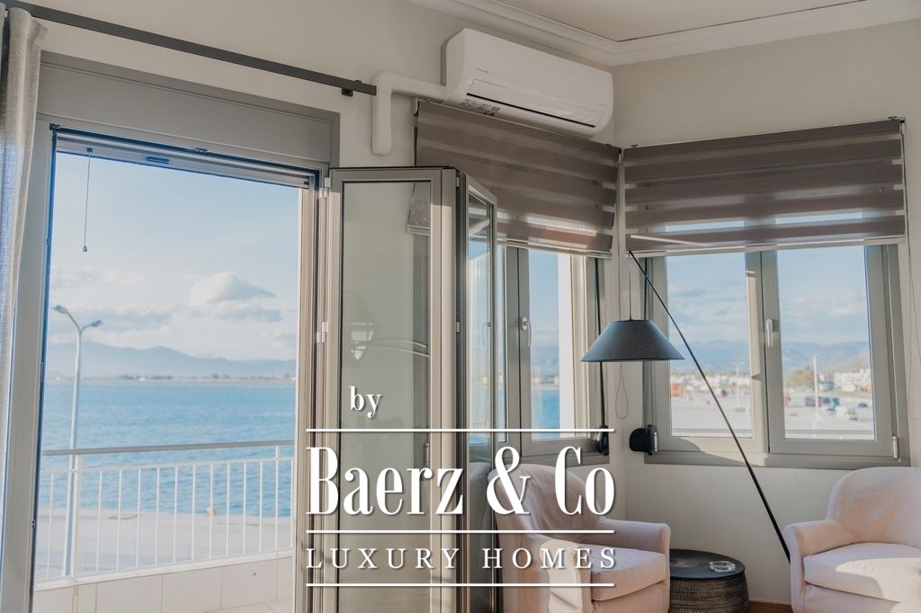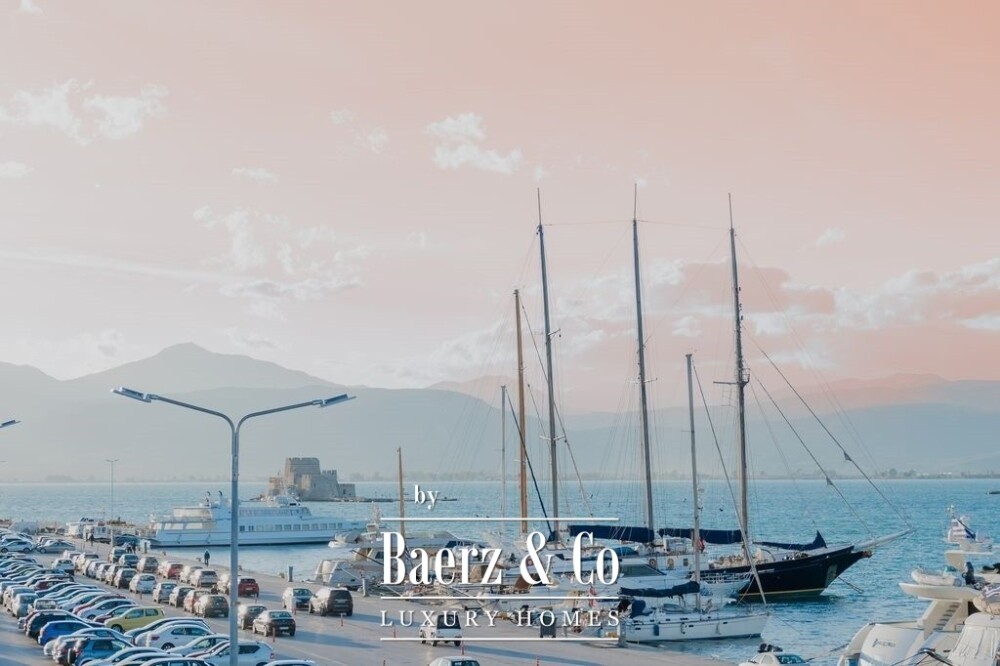 Apartment Nafplio Center presents a rare opportunity to own a 137 m² residence positioned just steps from Nafplio’s storied Old Town. This apartment stands in a league of its own, commanding direct and uninterrupted sea views over the harbor, luxury yachts, and the legendary Bourtzi Castle. From the first moment, the rhythm of harbor life and the endless blue horizon define both the interior and experience of this home.