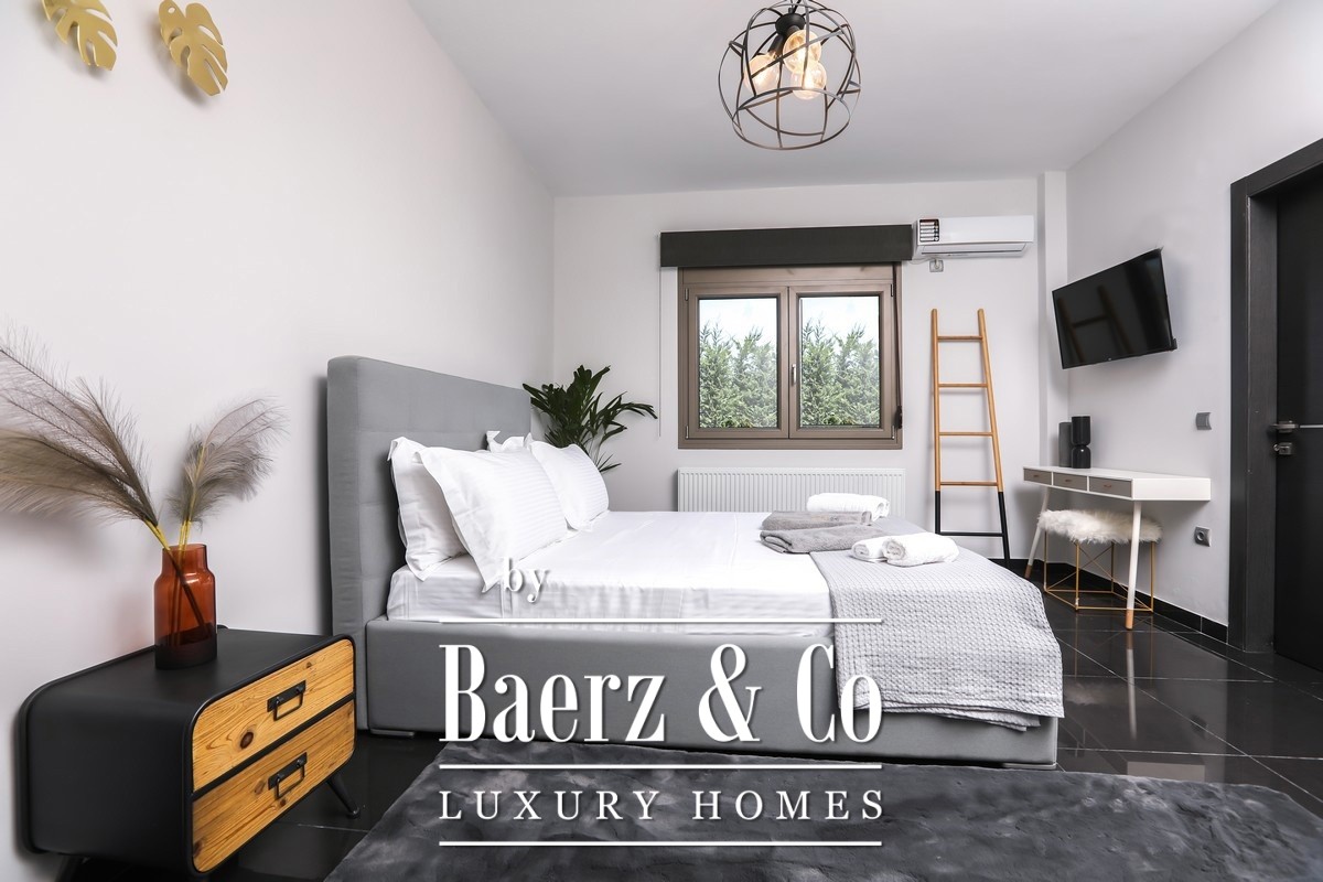 This property opens with two independent ground-floor apartments, each thoughtfully designed for autonomy and privacy. The main maisonette spans the first and second floors, featuring an expansive living zone, state-of-the-art kitchen, and a sequence of luminous bedrooms opening to semi-outdoor spaces that invite in sea breezes and landscape views. Five bathrooms are distributed across the home for comfort.
