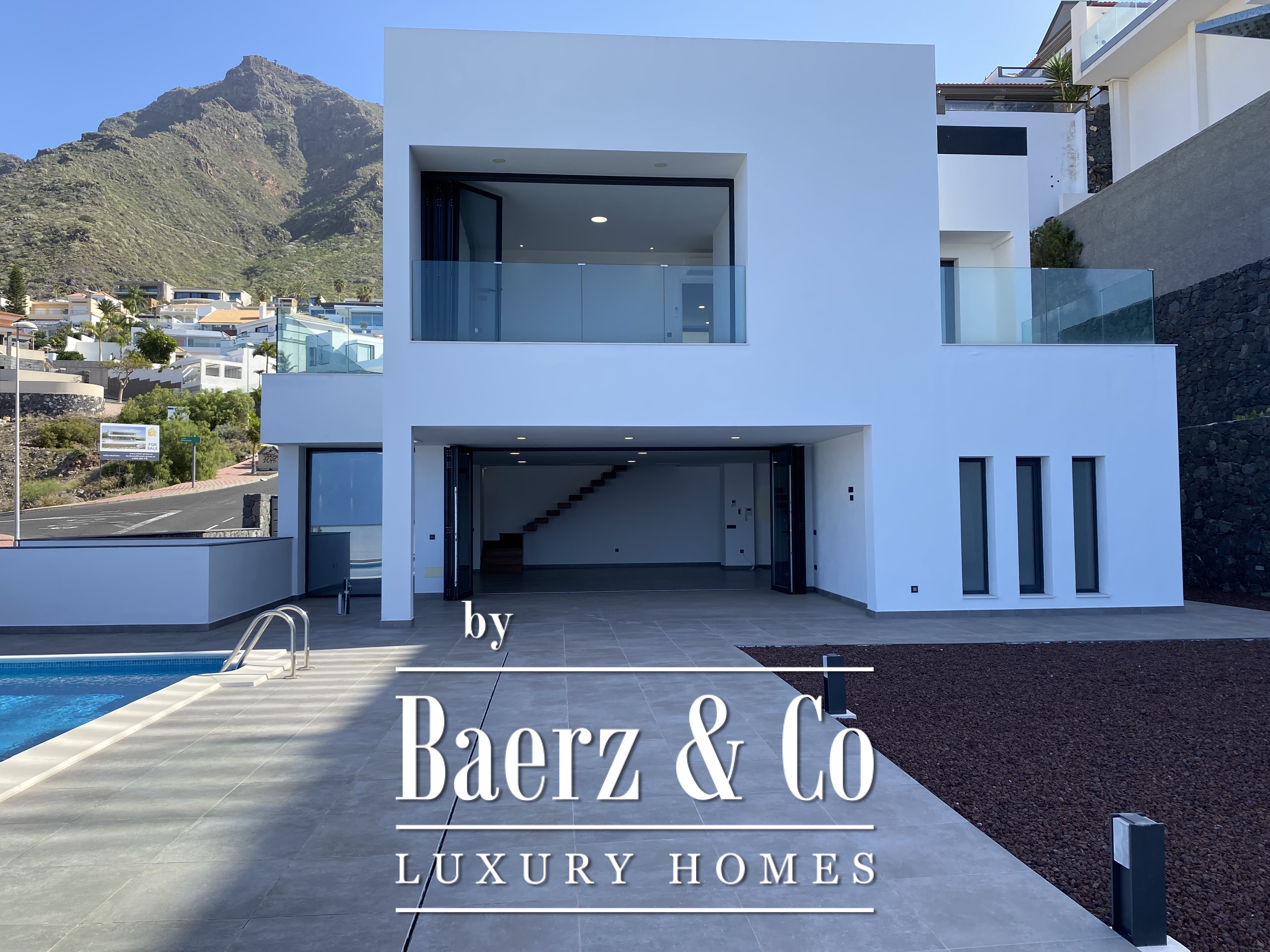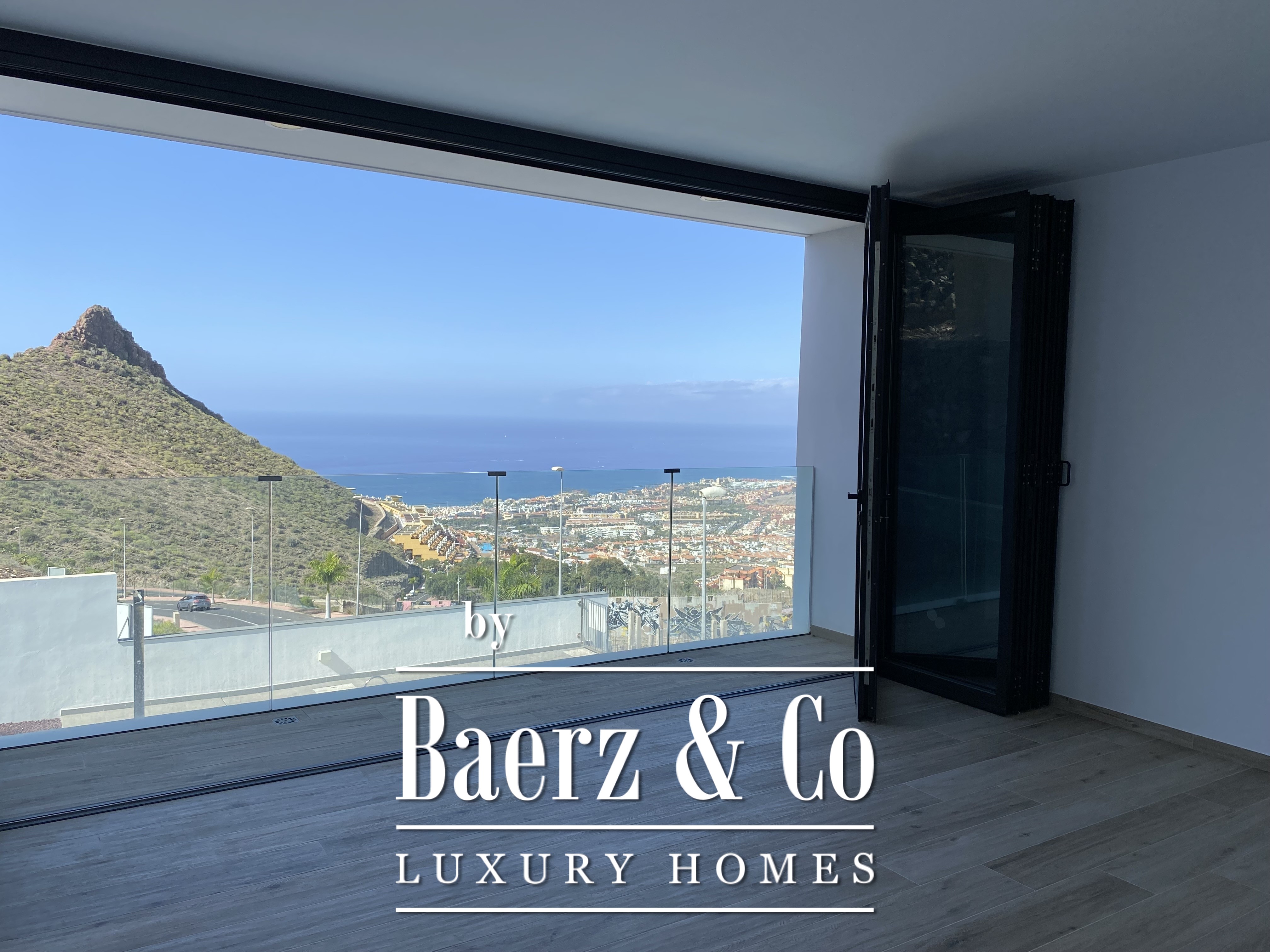 Villa Costa Adeje with panoramic ocean views presents an exceptional blend of refined architecture and contemporary comfort. This four bedroom, five bathroom villa stands within a distinguished neighborhood, shaped by careful attention to detail and high-quality materials. The living area of 230 m² unfolds across open, minimalist volumes that connect seamlessly to the outdoors through a foldable glass wall. Generous natural light fills the spaces, highlighting the designer kitchen and living-dining room that extend effortlessly towards the infinity pool of nearly 40 m² and the expansive 755 m² plot.