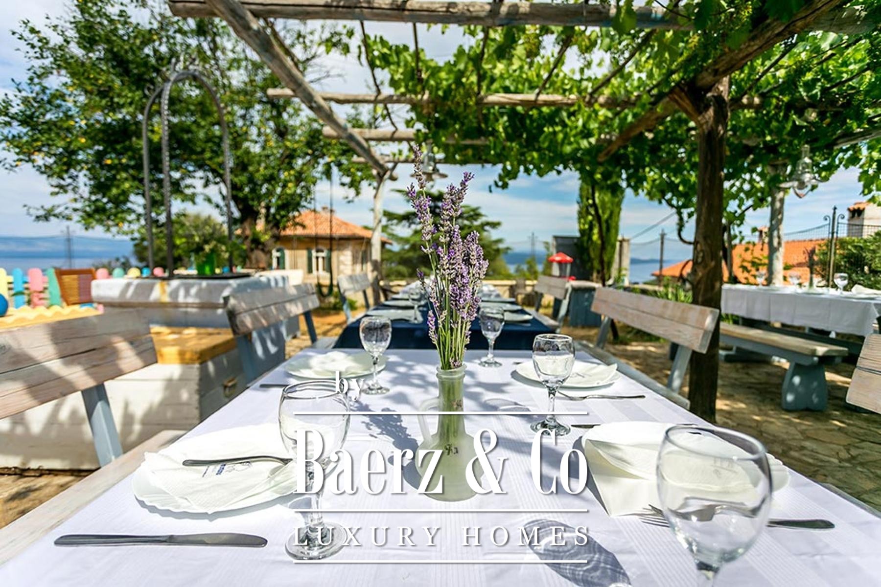 The property stands apart with its culinary atelier, renowned for authentic island cuisine. Diners enjoy fresh Adriatic fish, Cres lamb, local cheeses and Istrian prosciutto, all heightened by homemade breads and desserts rooted in tradition. Outside, a landscaped garden offers a tranquil setting for guests and owners alike.