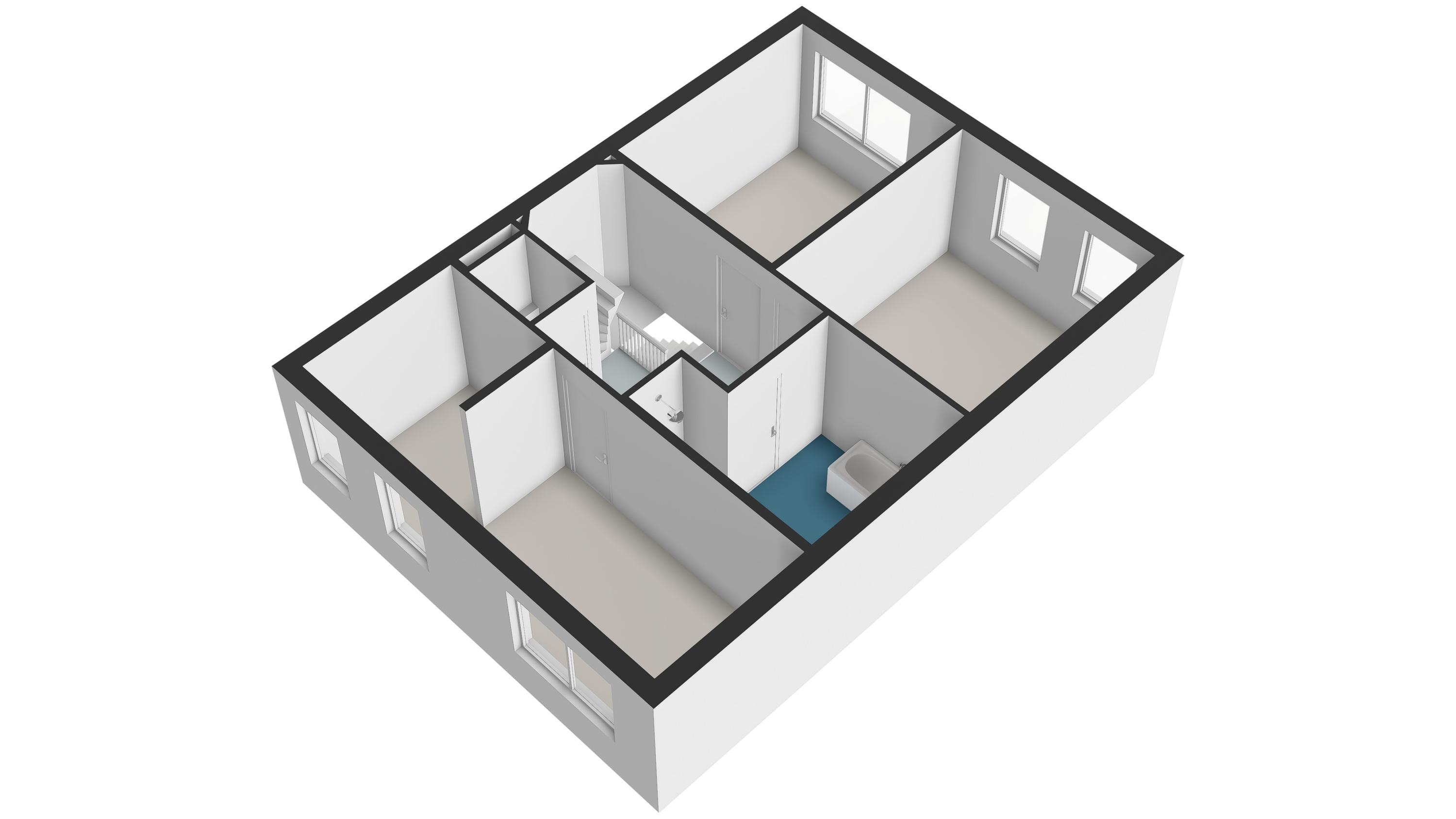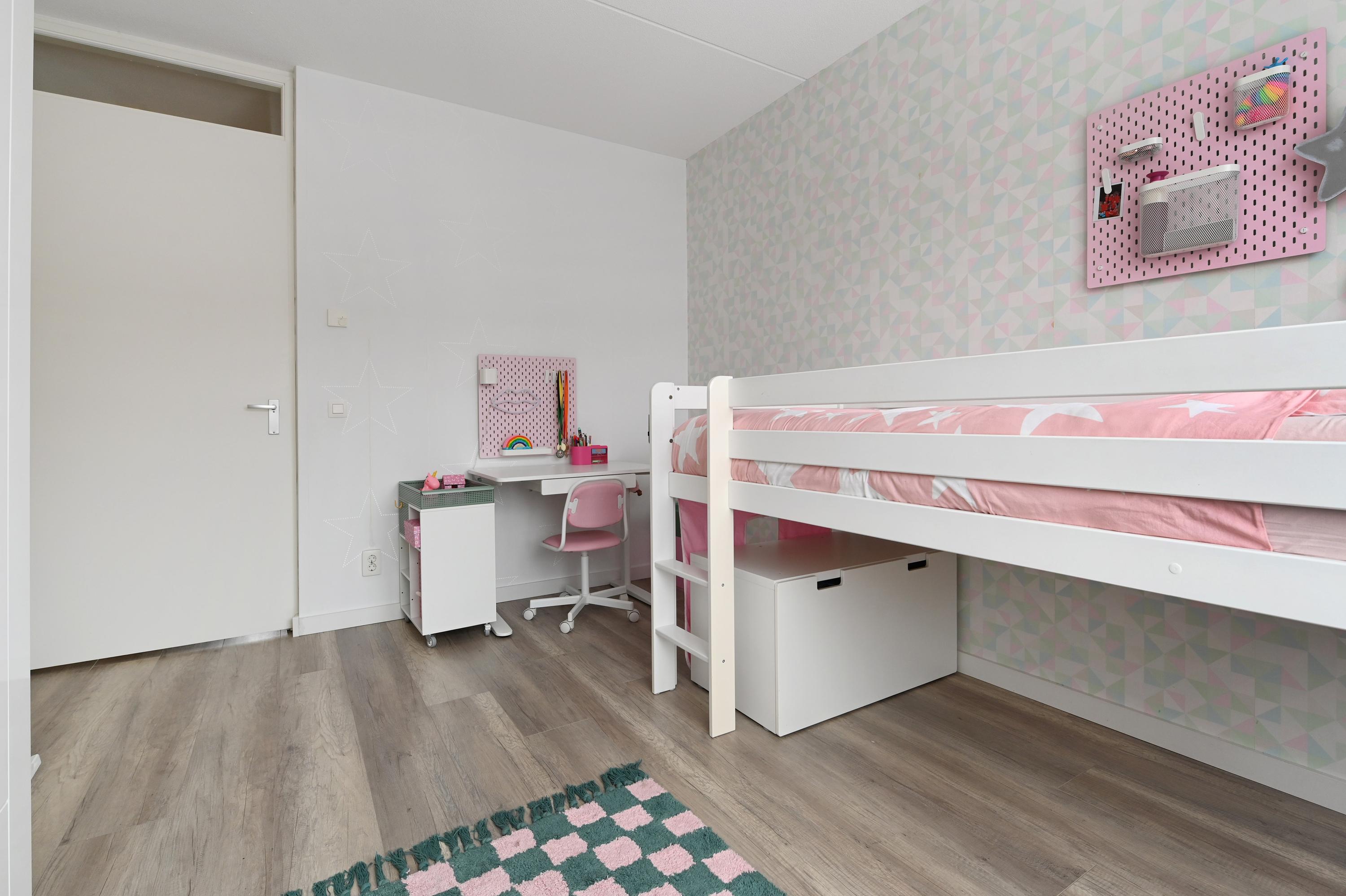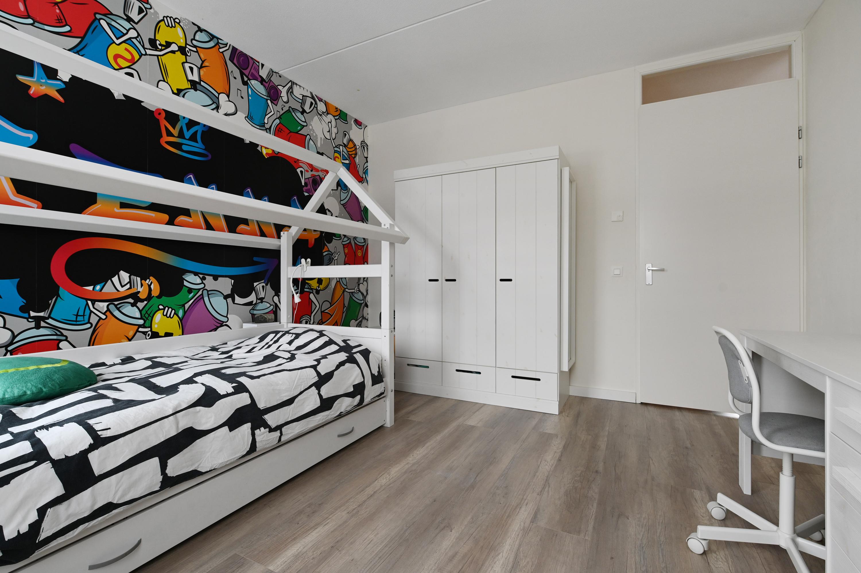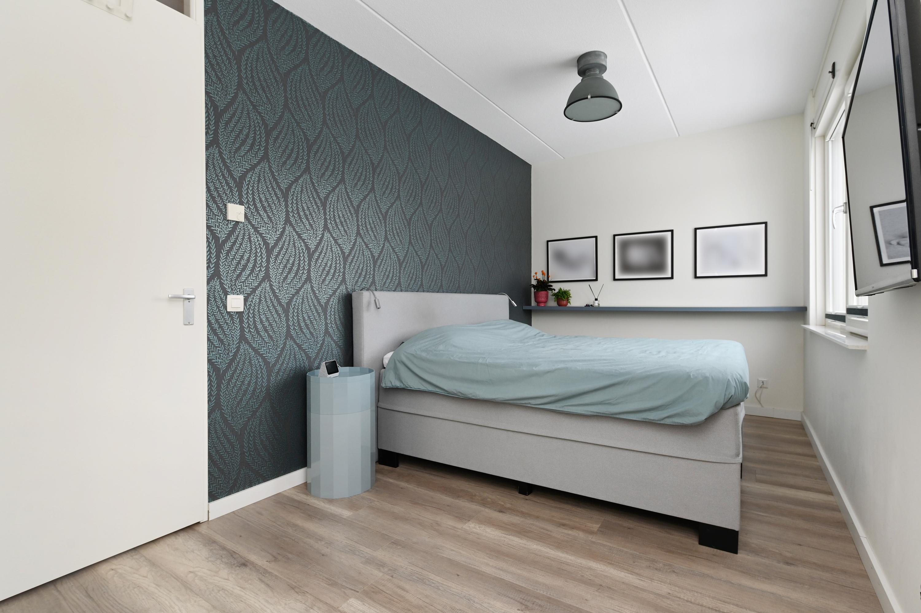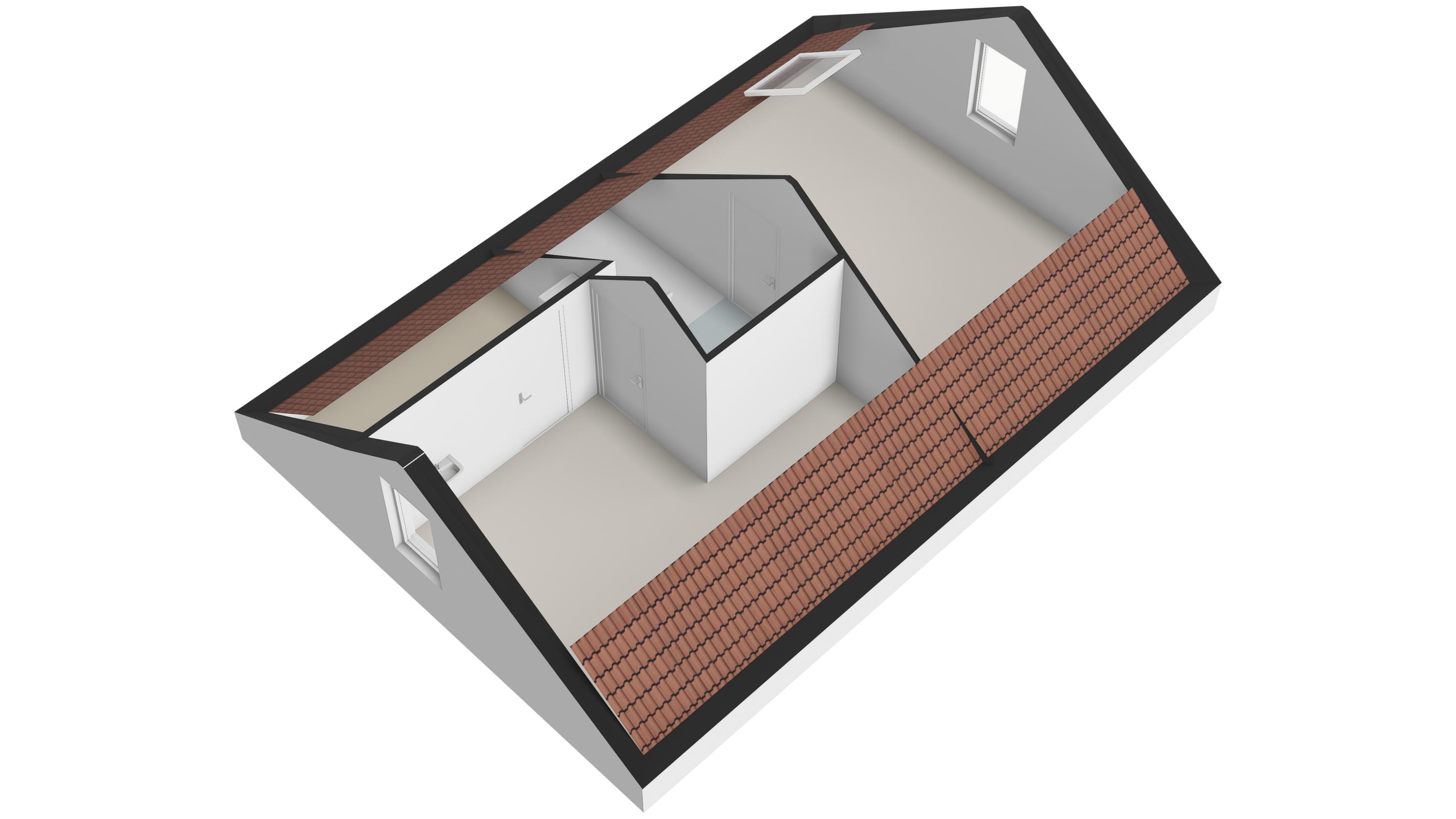Overloop, twee slaapkamers, waarvan de slaapkamer aan de voorzijde is voorzien van een wastafel en tevens een semi-open ruimte heeft die in gebruik is als praktische berging. Hier bevindt zich tevens de aansluiting voor de wasmachine en de droger. De slaapkamer aan de achterzijde is eveneens heel ruim en deze heeft een extra dakvenster.