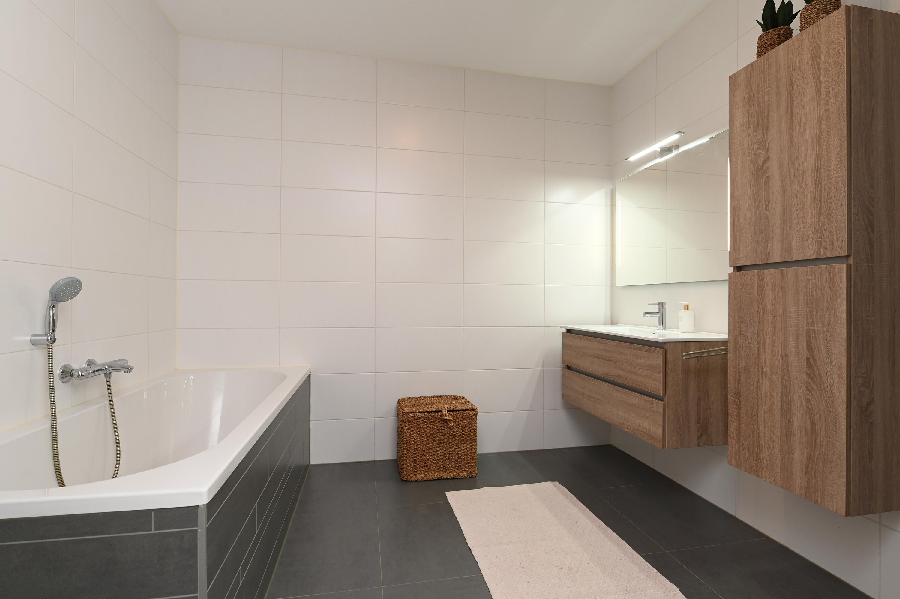 Aan de achterzijde bevinden zich twee van de slaapkamers. Aan de voorzijde is er een brede ouderslaapkamer met aansluitend een walk-in closet. Dit waren voorheen twee aparte kamers die vanuit de nieuwbouw direct met elkaar in verbinding zijn gebracht. Centraal op deze verdieping bevindt zich de ruime badkamer, voorzien van een inloopdouche, ligbad, een breed wastafelmeubel en designradiator. Er is op deze verdieping een separate tweede toiletruimte.