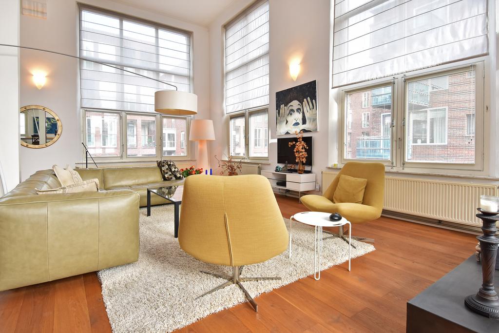Het appartement is gelegen op de eerste verdieping en heeft twee woonlagen in een monumentaal complex dat is voorzien van een lift. Het appartement combineert de sfeer van een loft met de ruimte van een herenhuis.