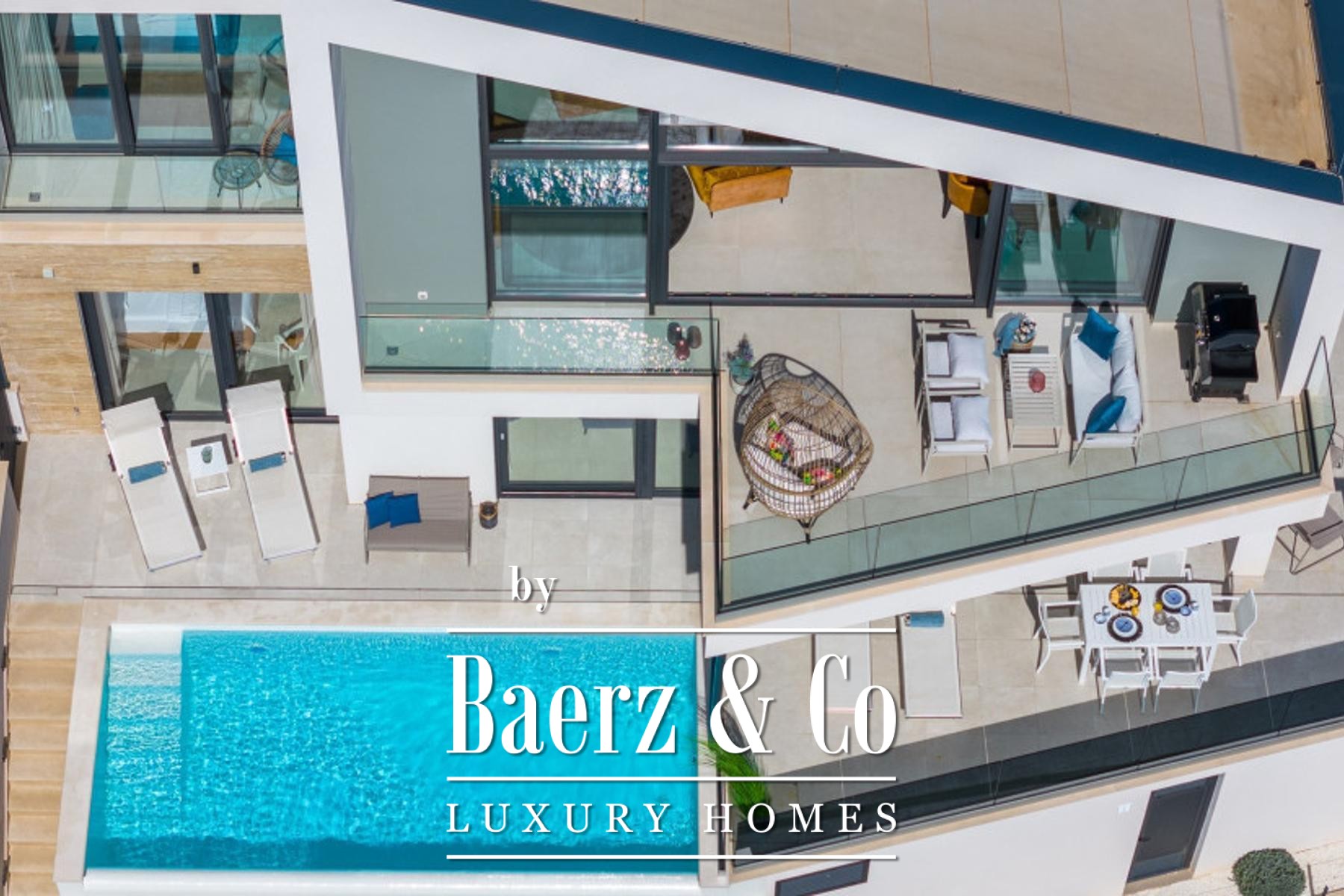 Completed in 2023, this villa comes fully furnished and equipped, ready for immediate living. The sale includes the company that holds the property, offering a discreet, strategic acquisition. The orientation and finish of this home reflect an understanding of refined contemporary living on the Dalmatian coast.