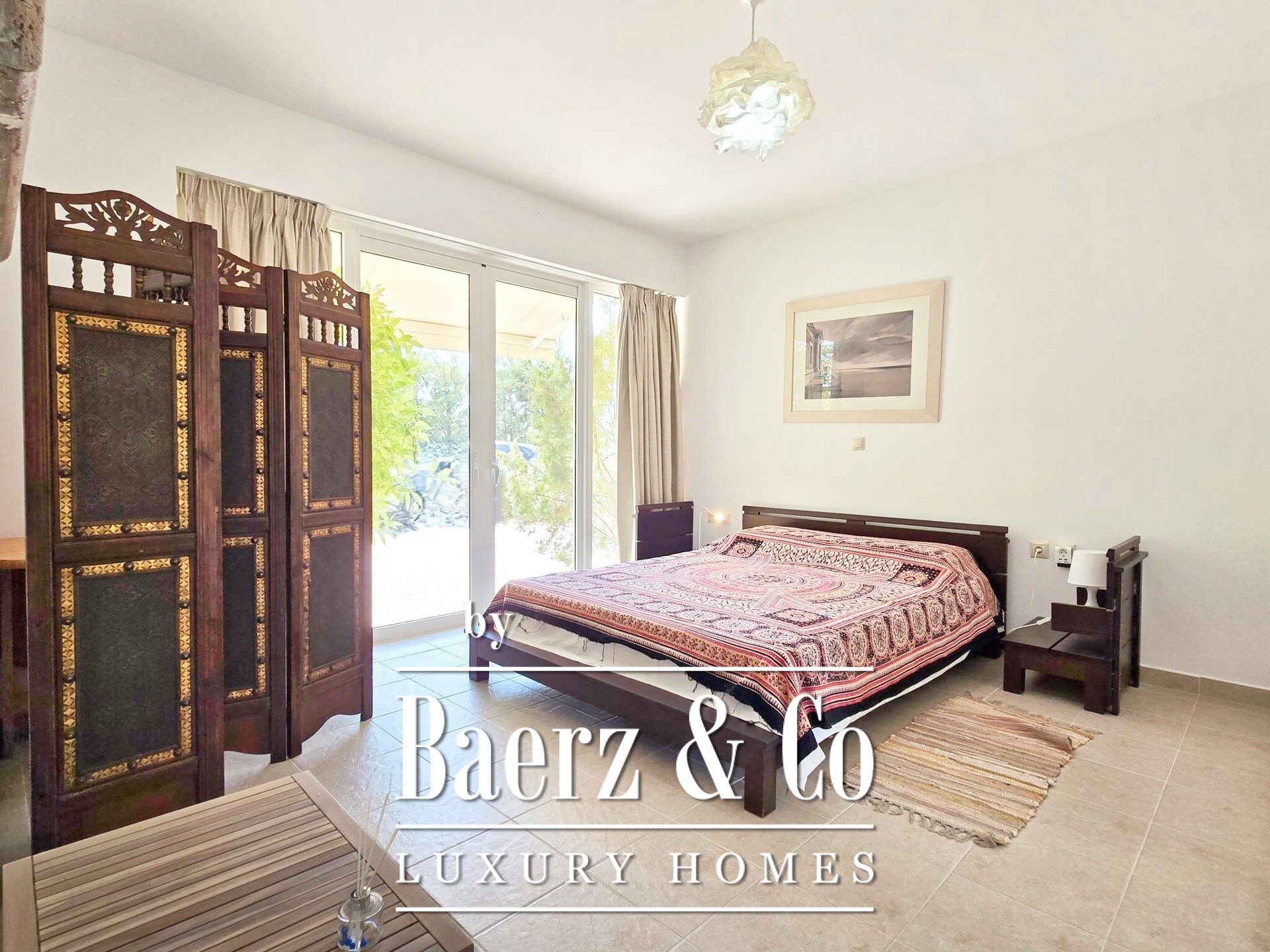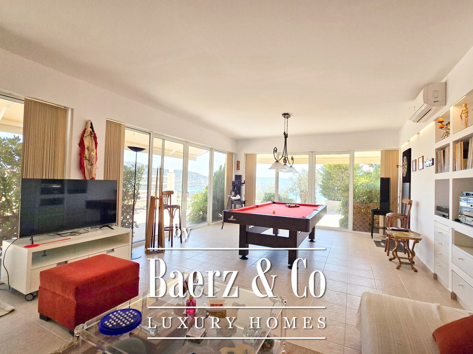 Tranquility, luxury and unobstructed sea views are the elements that characterize this unique residence, which is located just 500 meters from the nearest beach in the area, in a quiet and well-kept neighborhood characterized mainly by luxurious holiday homes.