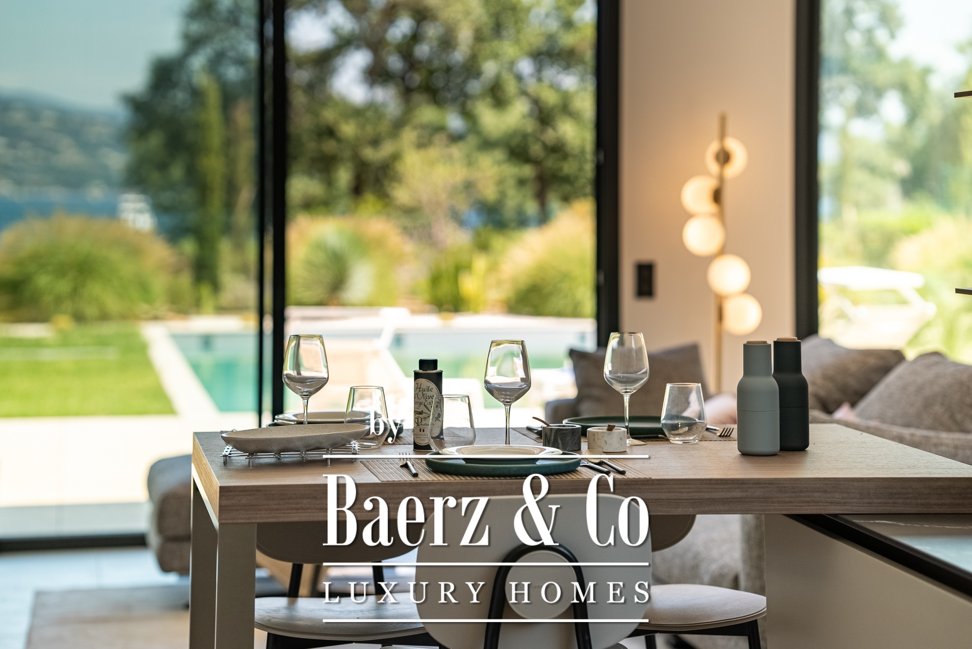 Outside, two large terraces, a private swimming pool, and a landscaped garden extend the living area, capturing views across the sea. A double garage with a car lift in the basement adds practicality and discretion. This flat in Gassin is a study in understated luxury, delivering immediate proximity to sand and sea against the timeless backdrop of the Côte d’Azur.